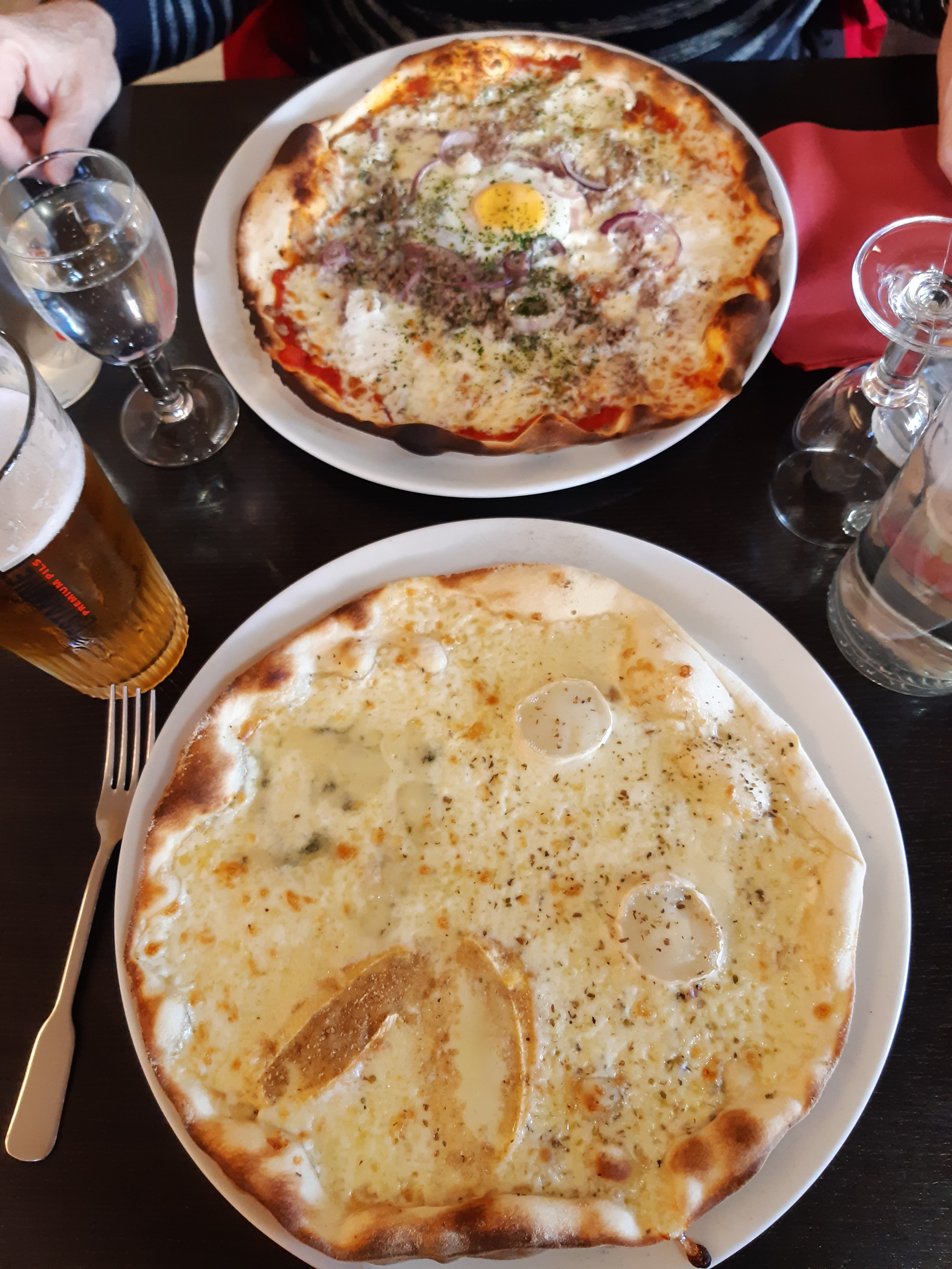 Nous y sommes allés car à peu près le seul restaurant ouvert le dimanche soir, ce fut un très bon moment. La pâte à pizza est très fine, ce qui me rappelle les saveurs de l'italie. Nous y sommes retournés une deuxième fois lors du séjour pour goûter leurs pâtes fraîches, un régal aussi. Très bon accueil.