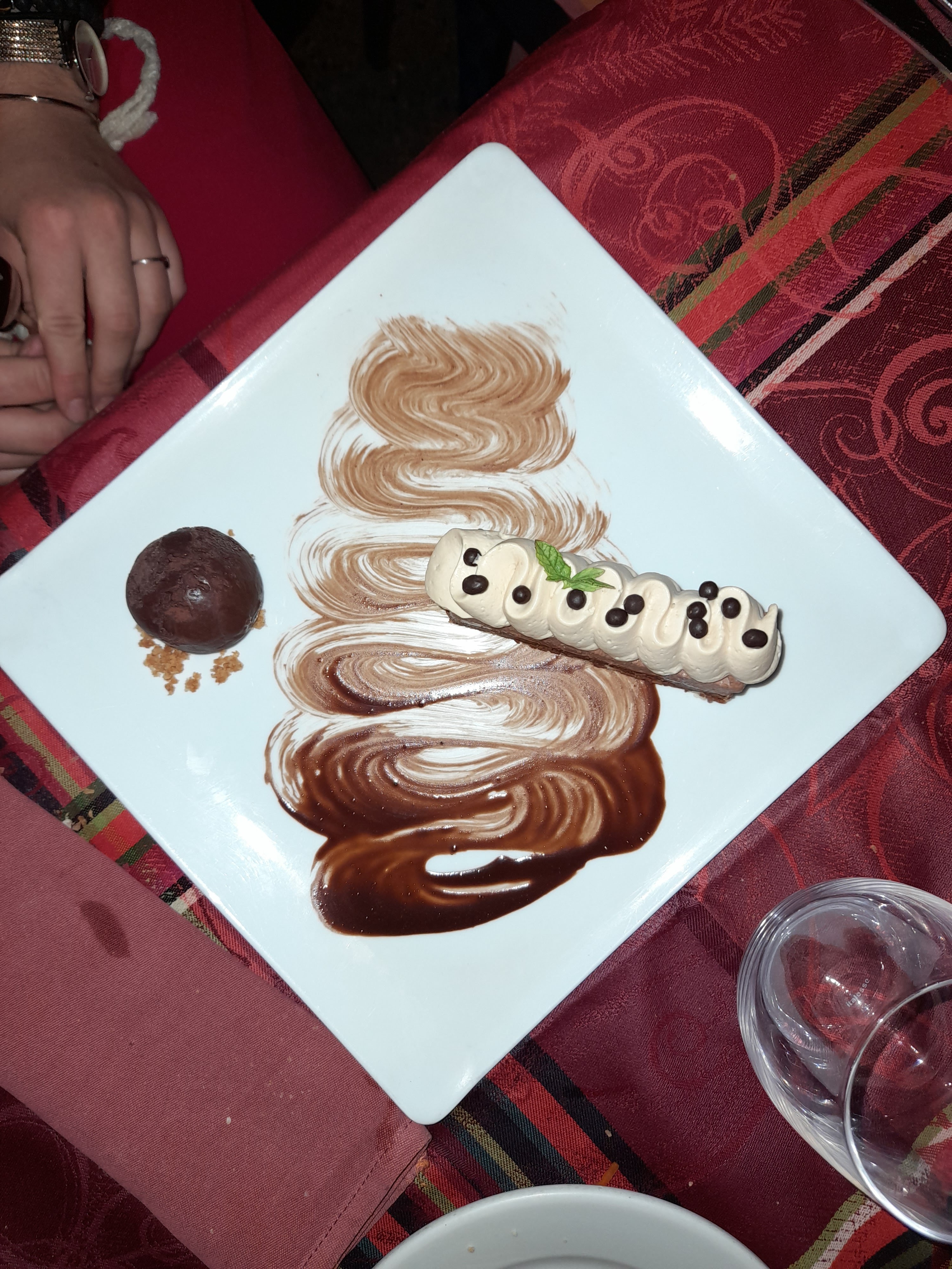 Très bonne cuisine, plats intéressants et goût parfait ! La zone extérieure était bien exposée au soleil, avec de l'ombre pour ceux qui en voulaient. Malheureusement, notre serveuse était horrible, elle ne nous regardait pas lorsqu'elle nous parlait, elle était terriblement impolie. Nous avons été soulagés que sa collègue ait repris notre table en plein déjeuner ! Elle était beaucoup plus gentille et la fin du déjeuner a été très agréable ! Globalement, une très bonne expérience, surtout avec leurs desserts !