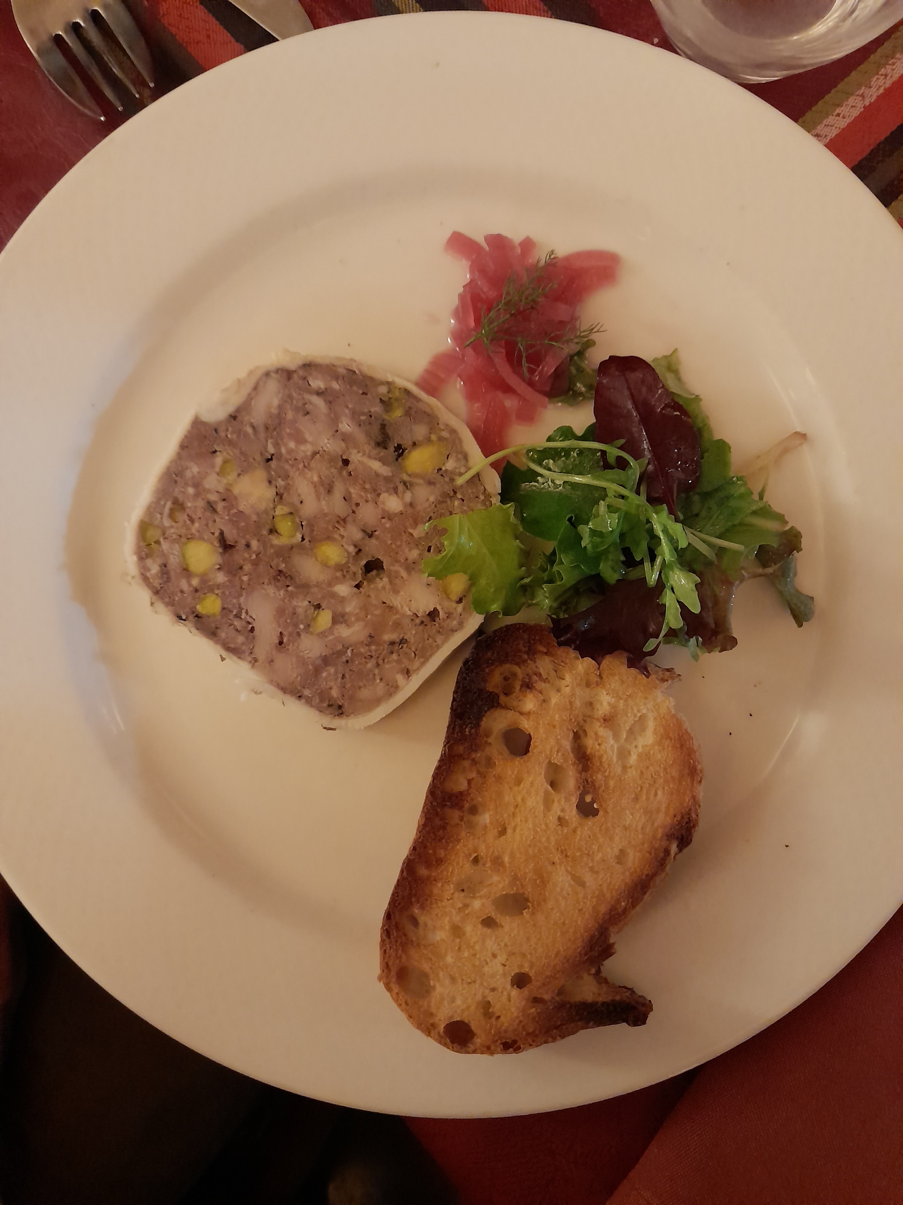 Menu découverte avec amuse-bouche, entrée, plat et fromages. De A à Z un délice ! j'ai choisi une terrine campagnarde pour l'entrée, faite maison et servie tiède, c'est bon à se relever la nuit. Suivi par des joues de cabillaud et pour finir un assortiment de fromages de la région.. tout était délicieux, j'y retournerai !