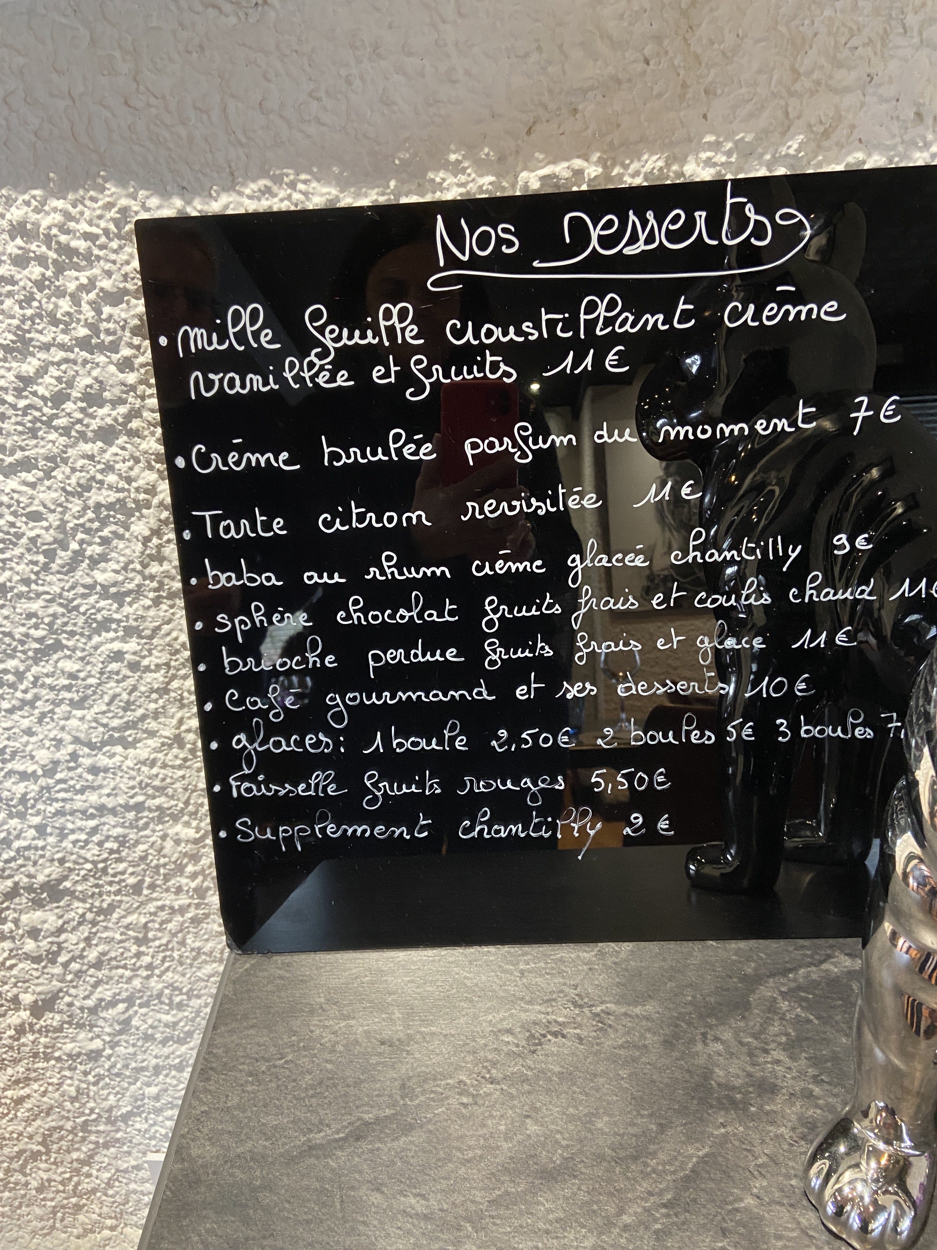 Très déçu cette fois ci , plus de menus mais tout à la carte ,1) croûte aux champignons au vin jaune , aucun goût de vin jaune , et en guise de croûte , un petit feuilleté , 2)travers de porc avec énormément de gras , qui ne ressemblait absolument pas à du travers 3) erreur sur le parfum des glaces