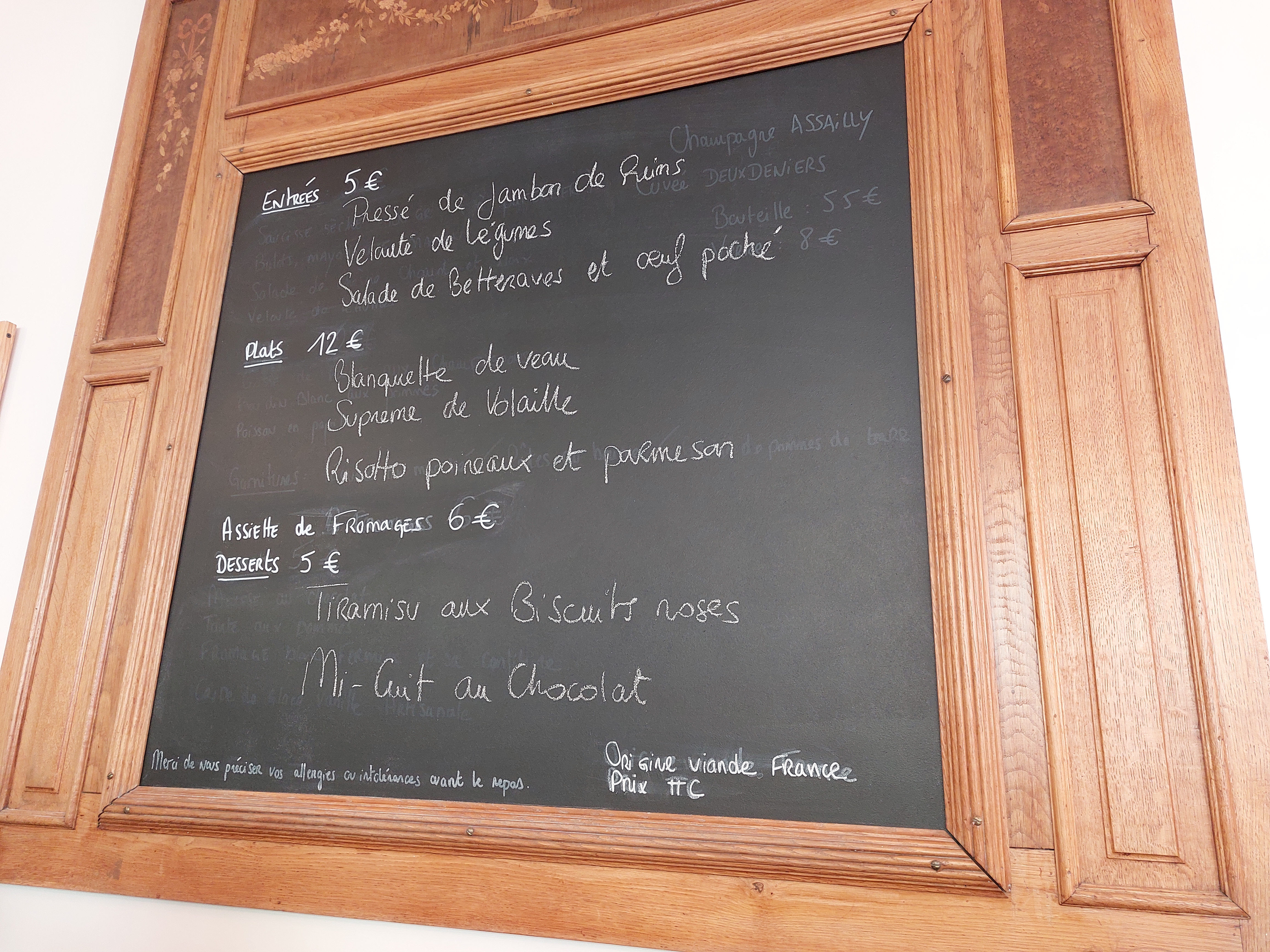 Ambiance décontractée et conviviale au possible, dès l'ouverture de la porte, vous vous sentez à l'aise. Claire, en salle, vous accueille avec un grand sourire, Jérôme au comptoir, et Clément aux fourneaux, vous ravissent le palais en liquides et en solides. Pressé de jambon, soupe de légumes, blanquette de veau, suprême de veau, et tiramisu au biscuit de Reims, tout est bon, car certainement cuisiné avec gourmandise. 120€ avec champagne à 4 et un seul dessert. En plus d'être bon, c'est vraiment abordable. A retenir pour y revenir, souvent.