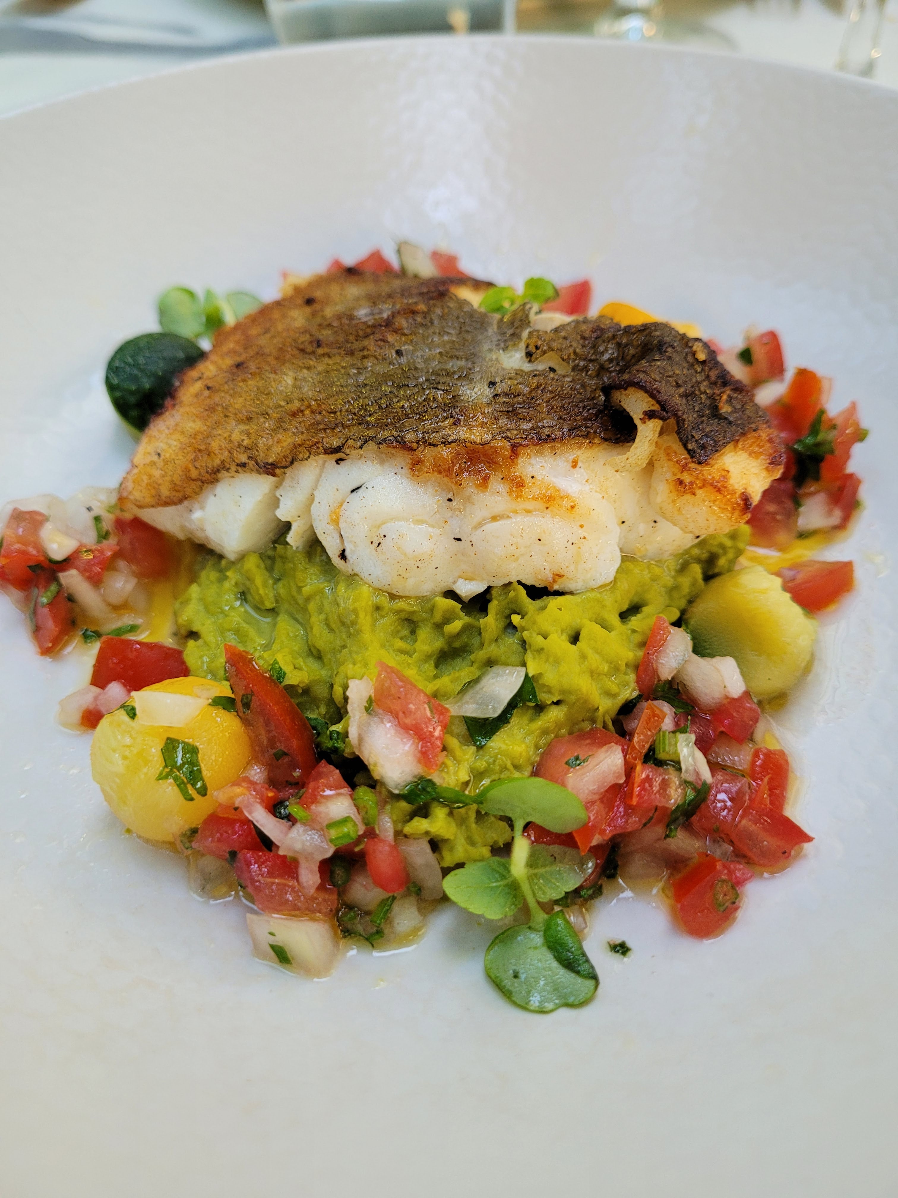 Les plats étaient juste excellents. Pour le cadre, en extérieur nous étions à l'ombre d'une magnifique ( et très imposantes) Glycine. Enfin, notre serveur, d'origine britannique était particulièrement agréable et chaleureux. Nickel !