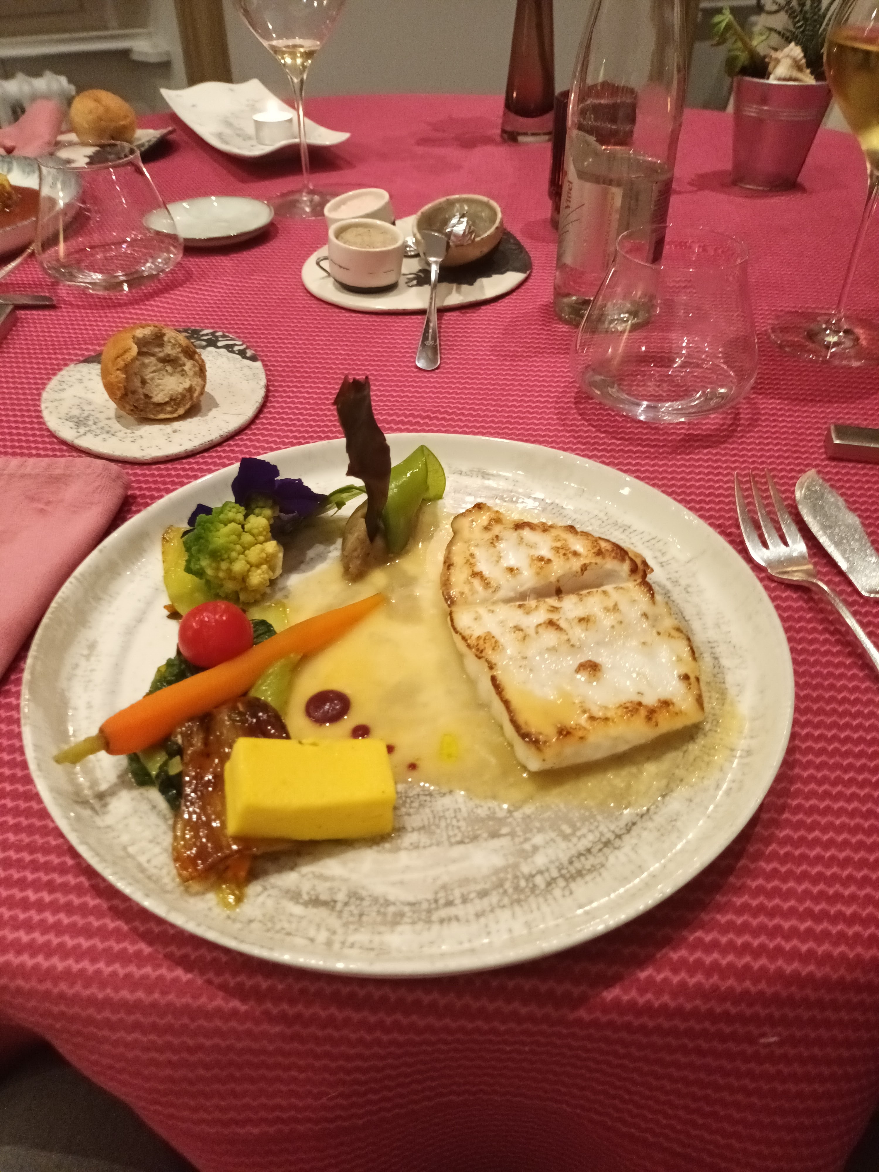 Joli cadre, Excellent accueil et service, plein de petites attentions pour le client. Une carte de vins extraordinaire. Un petit bémol sur la cuisson du poisson.