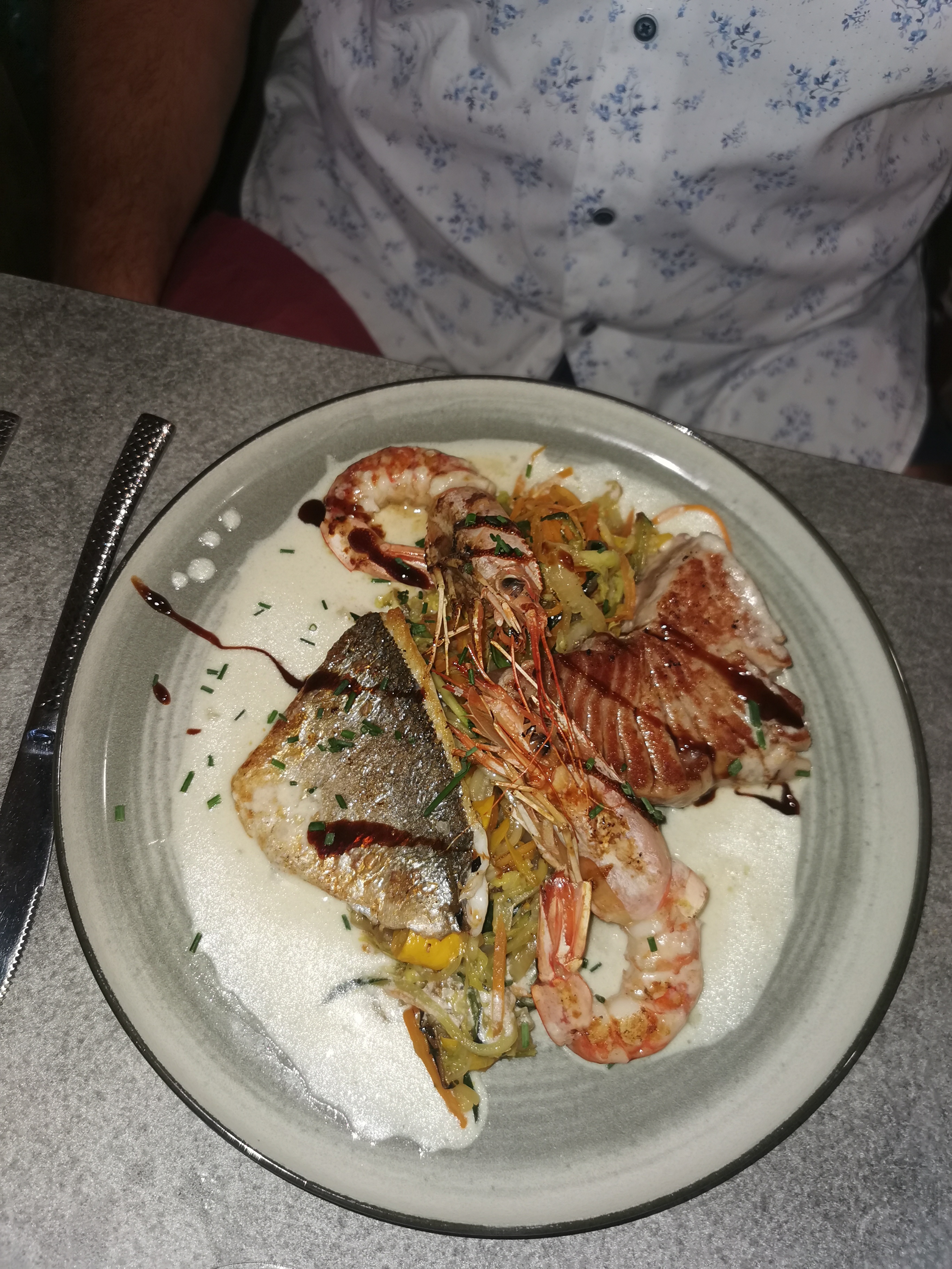 Ben, j'ai pas du avoir de la chance, pour éviter le menu du jour (lieu noir) j'ai pris un plat à la carte (parillada). J'aurai pas dû... Le poisson est sorti du congélateur pour être cuit malheureusement quand il y a un peu de monde le poisson est servi et encore froid ou pas cuit :les deux malheureuses gambas étaient crues. Dommage car le service était correct.