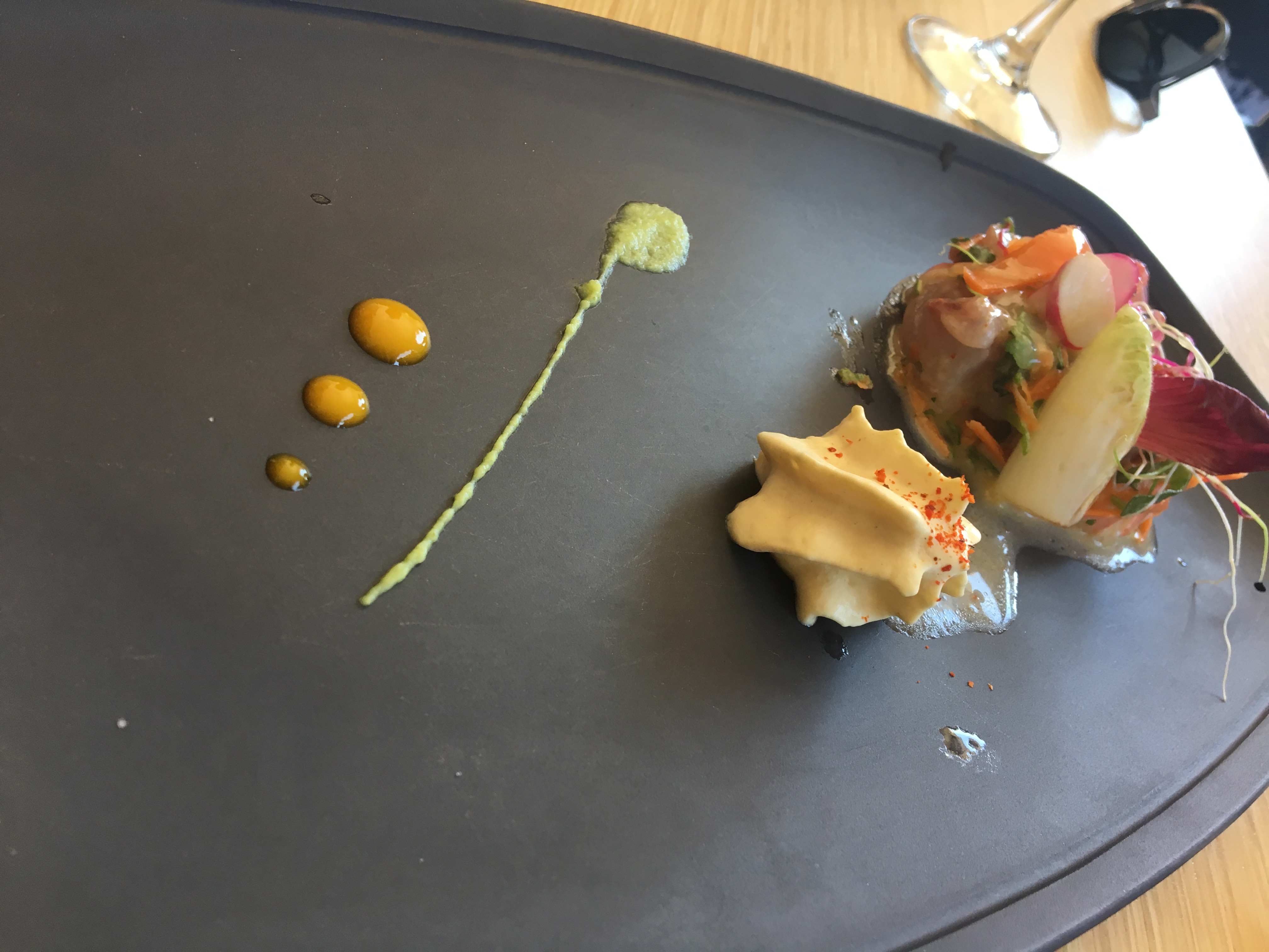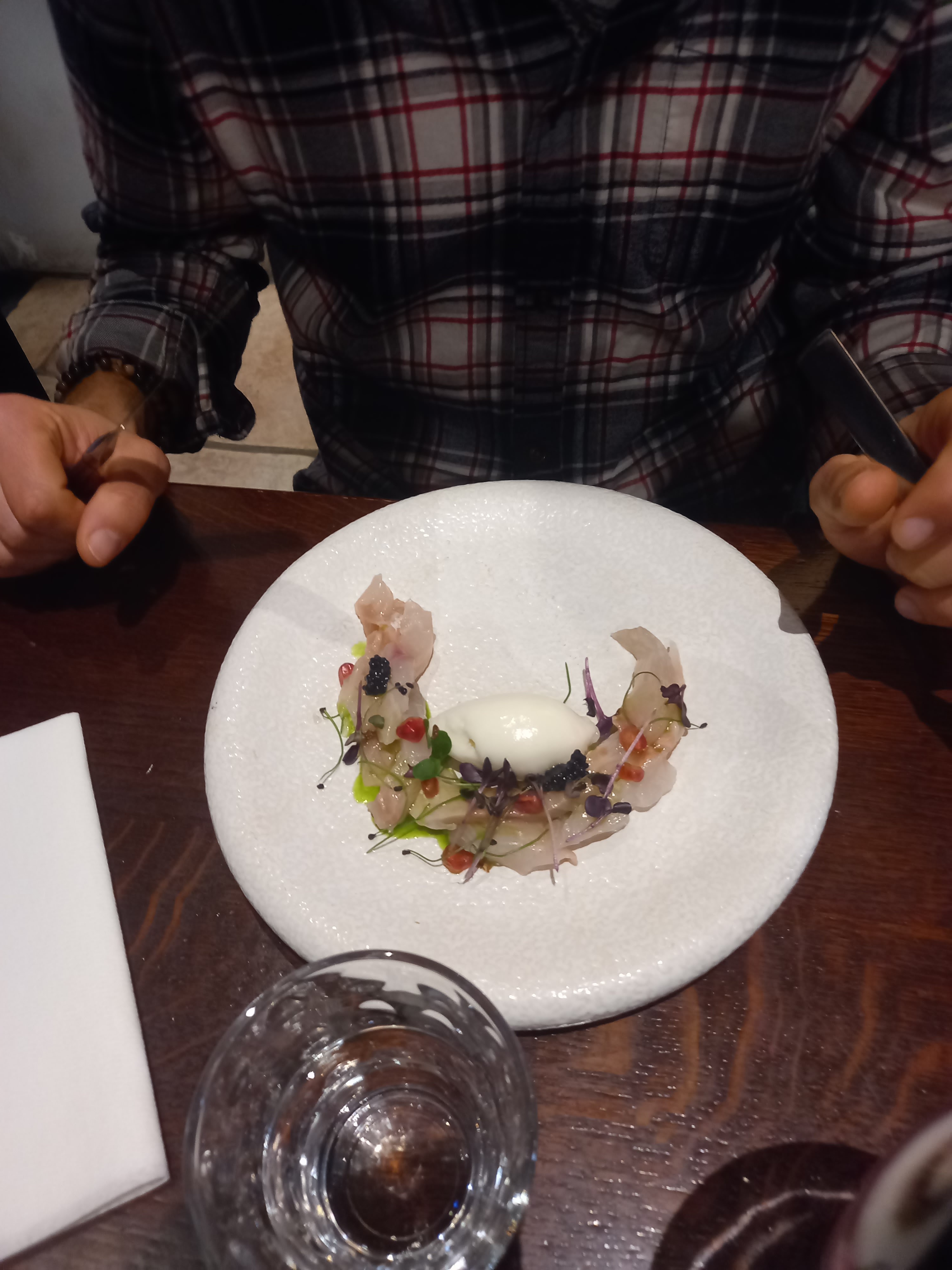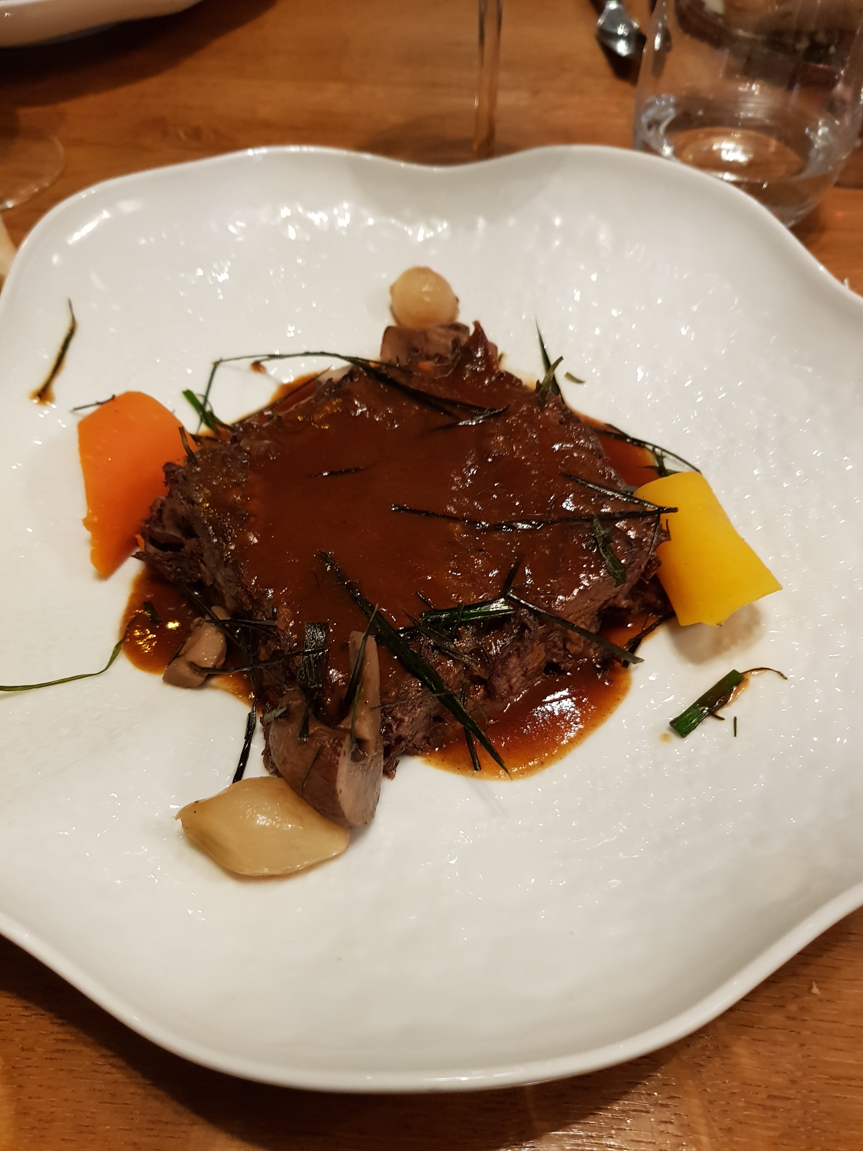 Tout était parfait de l'apéritif au digestif: Les plats sont habilement composés en terme de saveurs et de textures. La présentation vient parfaire le tout. Enfin, les vins au verre proposés avec les plats sont très bons (2 rouges et 2 blancs au choix). Concernant le service, le personnel est souriant, attentionné et rapide.