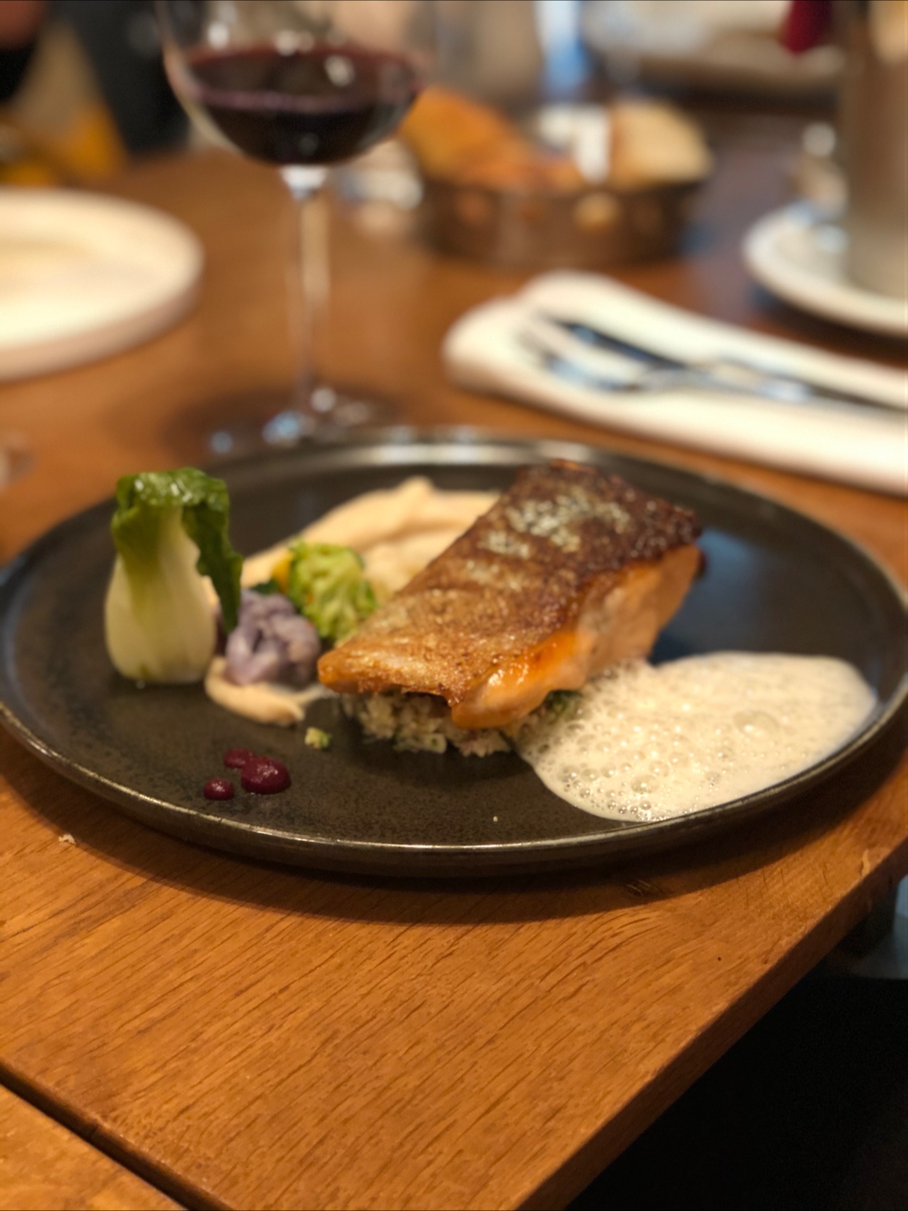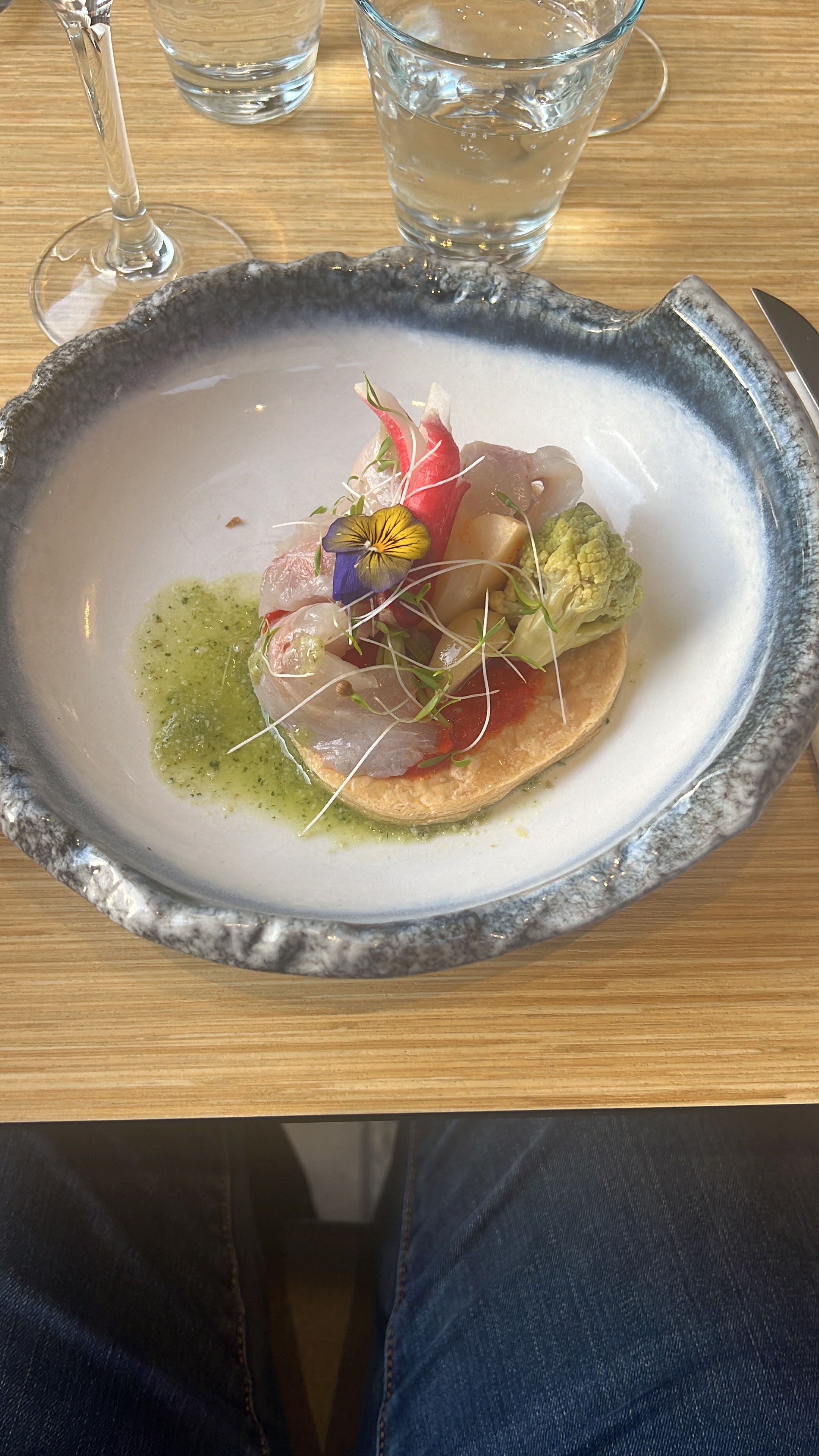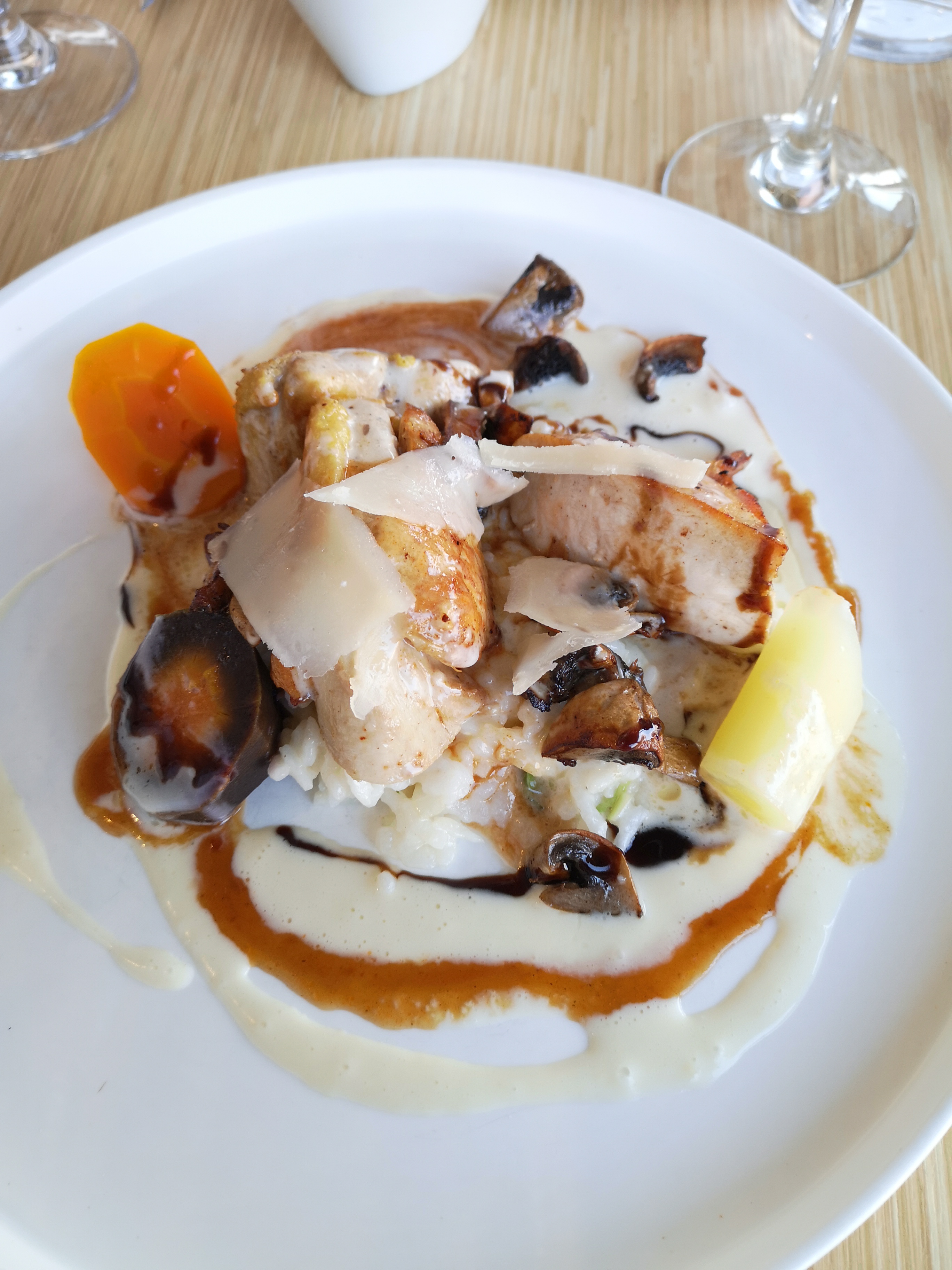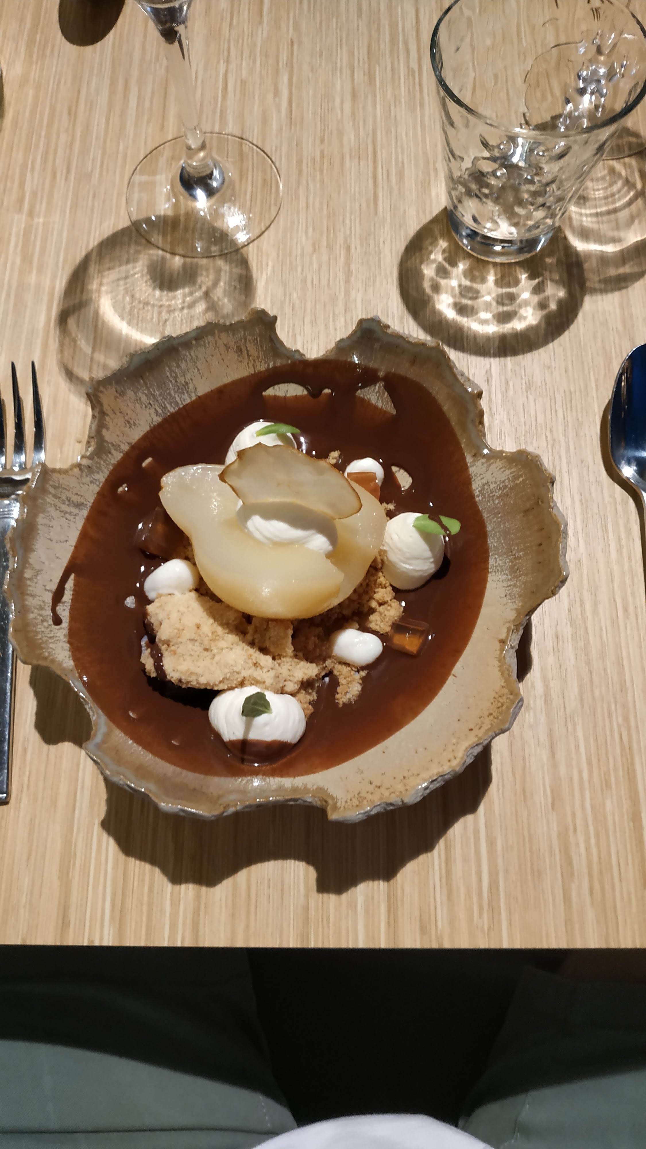 Tout était parfait de l'apéritif au digestif: Les plats sont habilement composés en terme de saveurs et de textures. La présentation vient parfaire le tout. Enfin, les vins au verre proposés avec les plats sont très bons (2 rouges et 2 blancs au choix). Concernant le service, le personnel est souriant, attentionné et rapide.