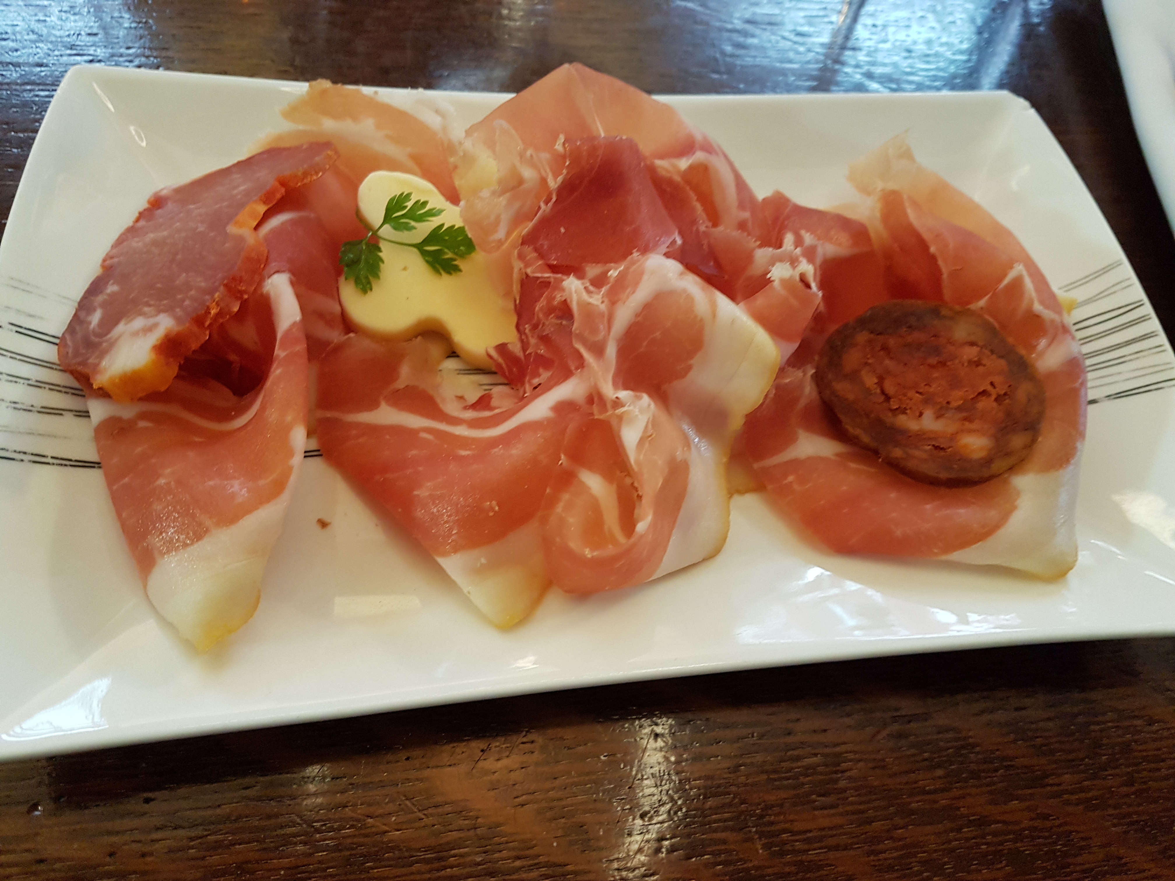 Dîner très agréable. Accueil chaleureux, service sympathique et dîner délicieux. J'ai apprécié la généreuse portion de jambon, mon ami a eu le foie. Nos deux steaks étaient parfaitement cuits à notre goût. Je ne l'ai pas essayé mais le canard d'une table voisine sentait bon, elle a (à contrecœur) donné une bouchée à son mari et il a souri.