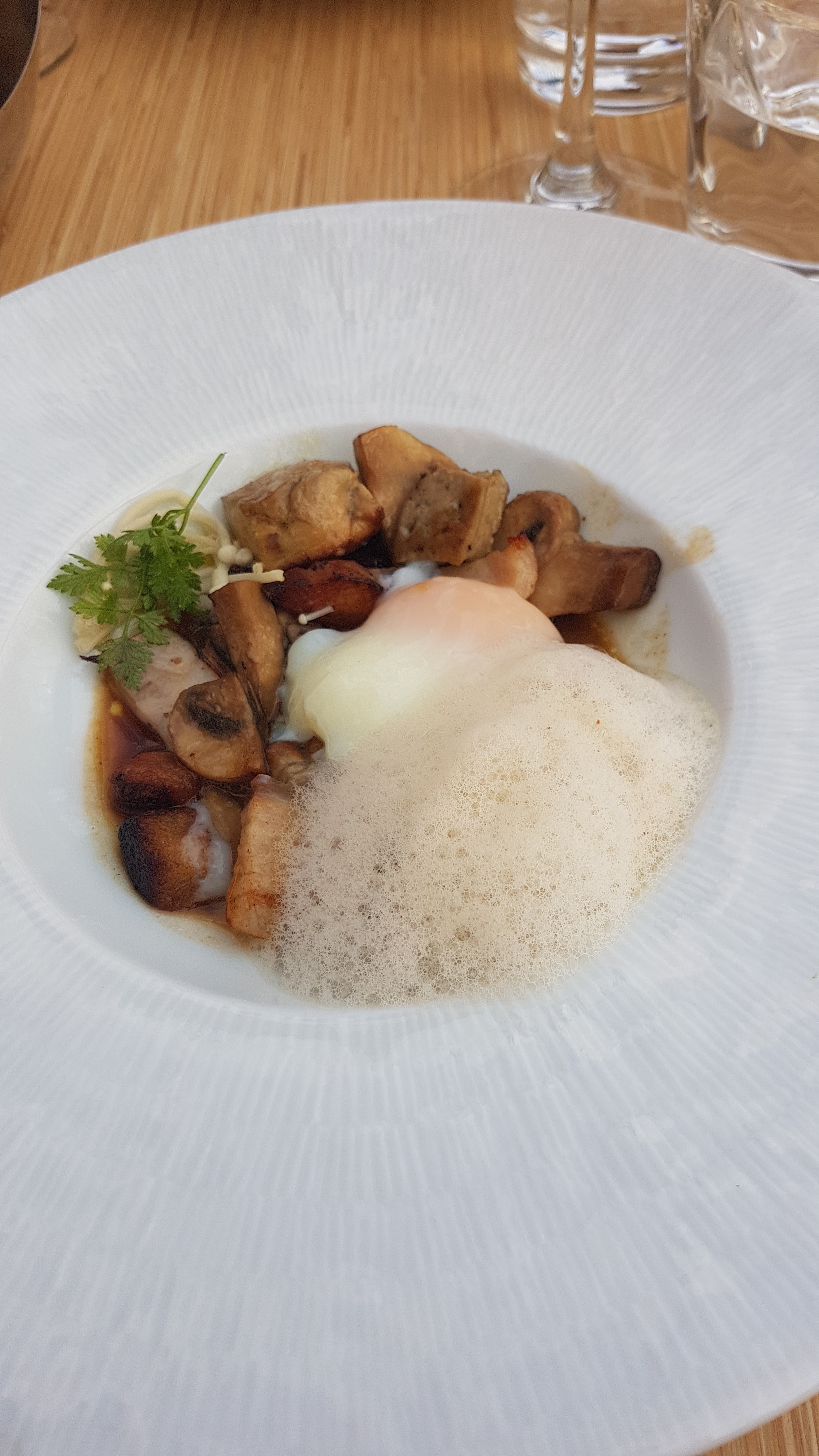 Excellent repas le 15 aout midi en terrasse. Serveurs très agréable. Des saveurs qui sortent de l'ordinaire. Dans le menu à 32e, j'ai pris un oeuf parfait au foie gras poële, lardons, champignons puis du lieu noir à lencre de seiche puis un dessert tout chocolat. Du très haut niveau. Excellent rapport qualité prix. Merci