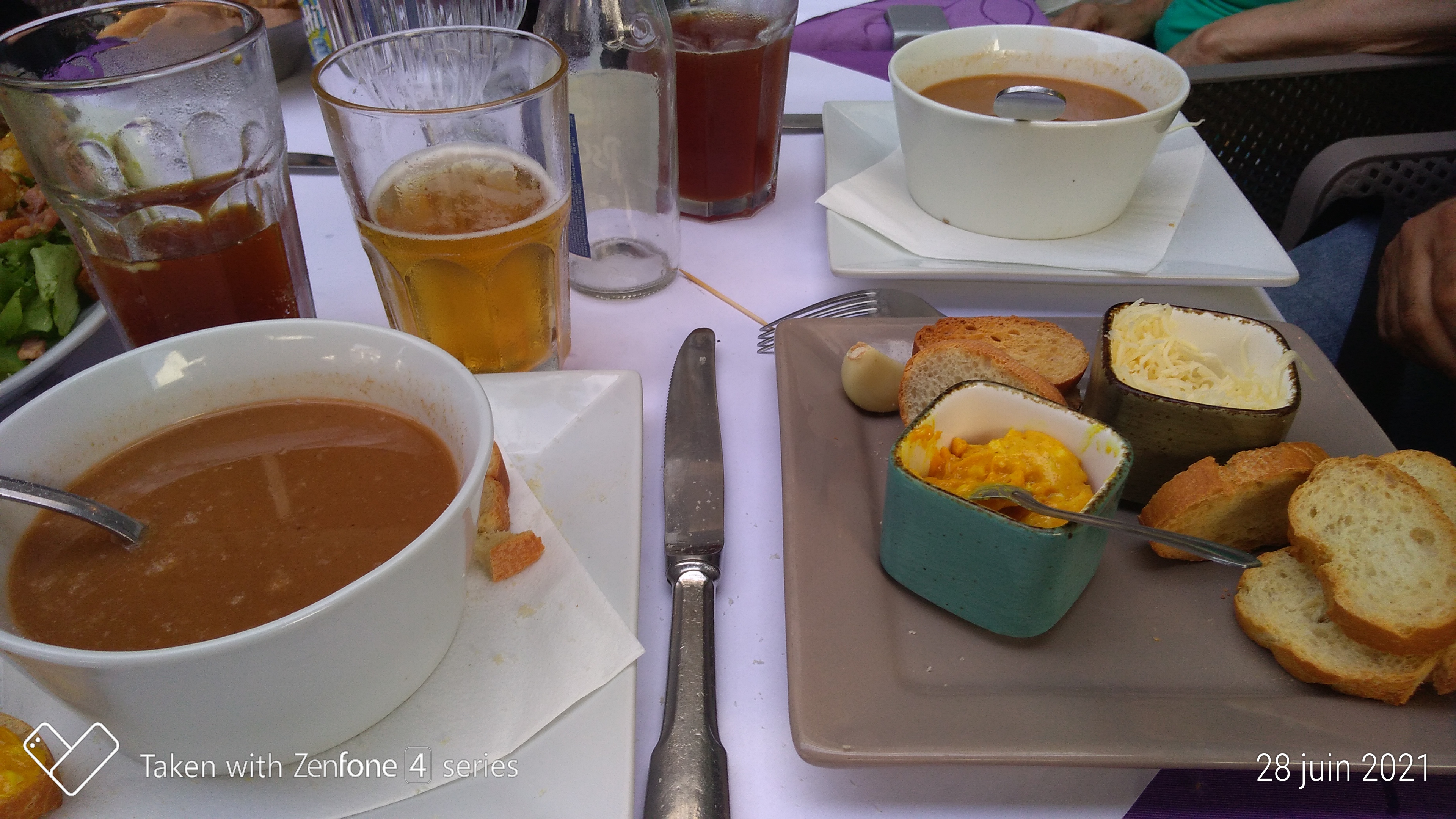 Une dame souriante nous accueille et nous place en véranda. On nous présente des tablettes en guise de carte et nettoyées à chaque client. Un peu pertubant à la base mais contient des images parlantes et des indications des plats fait maison J ai pris une rouille de sèches. Excellente ! Personnel avenant et souriant Je vous le conseille...