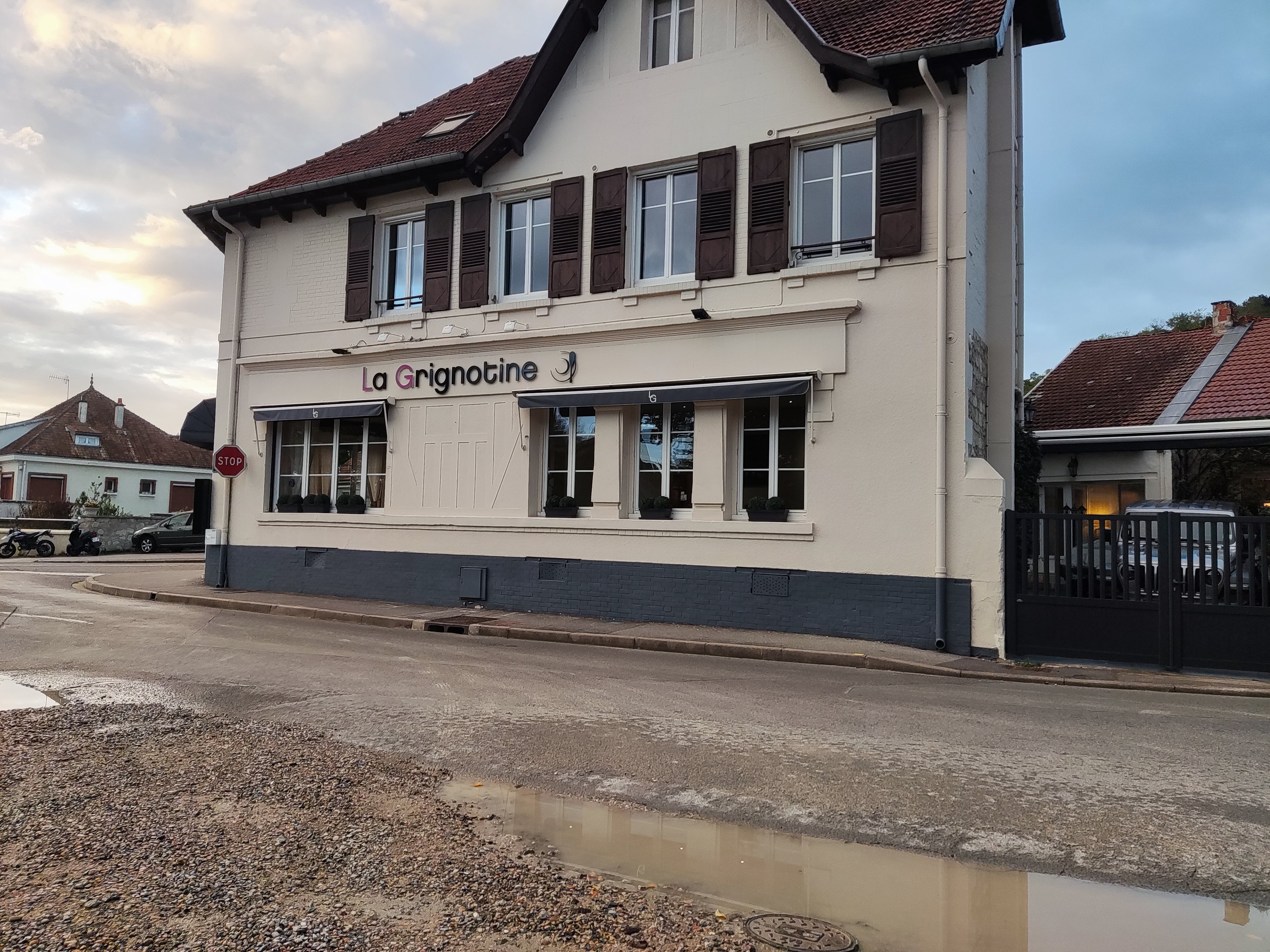 La Grignotine… ou la Guillotine si tu as le malheur de ne pas bien stationner ton auto sur le parking… Le gérant à lunettes tel un bourreau t’alpague par sa fenêtre comme le dernier des condamnés… mais comment peut-on parler de la sorte à ses clients ?! Dans sa réponse, d'un ton particulièrement odieux, comme une tentative désespérée d'un petit garçon pris la main dans le pot de confiture, il tentera de détourner l'attention du lecteur de sa hache vocale en oubliant que le problème ne vient pas d'un automobiliste étourdi, qui forcément serait un méchant individualiste qui se croit seul et à qui il manque quelque chose, mais bien de sa façon de parler aux gens. Je plains le personnel (et ses enfants...) ! L’accueil dans cet échafaud est tellement oppressant, qu’au moment de nous asseoir au péril de nos estomacs, on a tourné les talons et fuit cette ambiance malaisante pour aller donner nos 150€ de budget du soir à un autre. Qu'il ne s'inquiète pas, nous n'y retournerons pas !