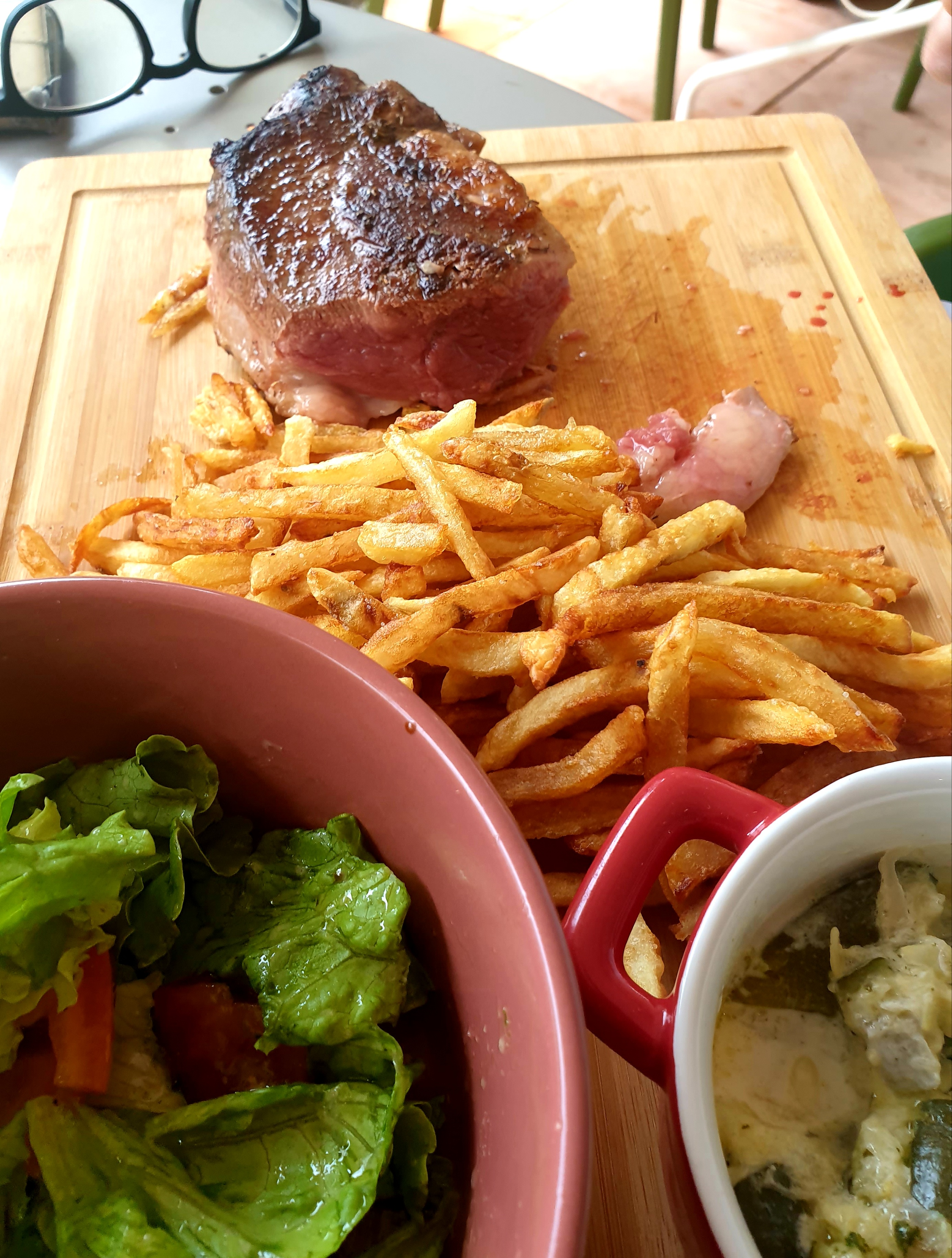 Tout est super les viandes de qualitées les frites extra avec des pommes de terre local fromage de brebis et des coupes de glace à tomber tous ça dans une ambiance amicale et des serveuses avec un sourire grand comme ça. Je recommande.