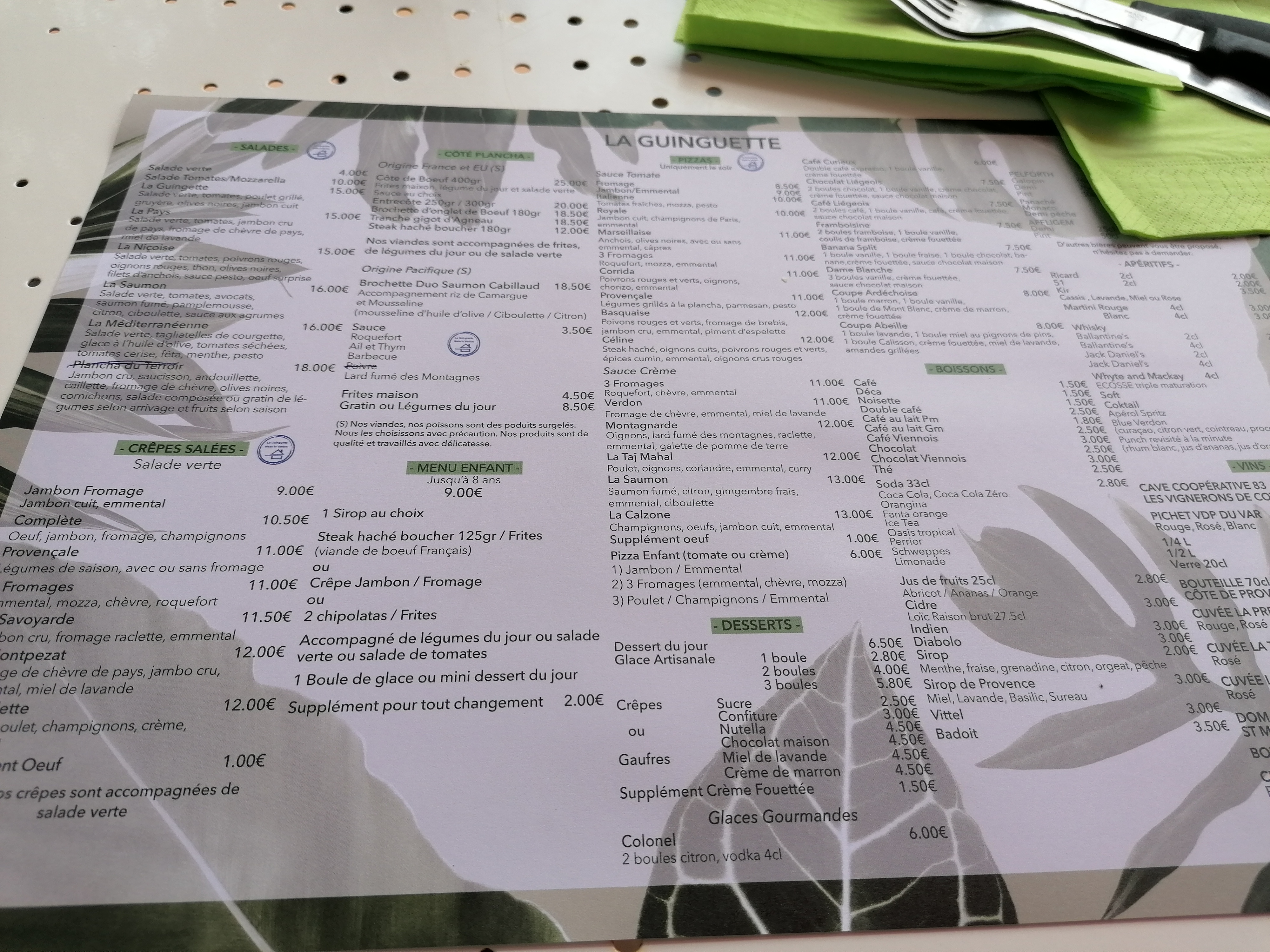 Nous avons dîné à la Guinguette il y a 2 jours. Bonne adresse. Côte de boeuf très bonne avec ses frites et sa salade. Pour ma part, une crêpe Montpezat très bonne aussi. Ne manquez pas de goûter leur glace artisanale : Marron et miel pignon de pins. Miam . Je recommande