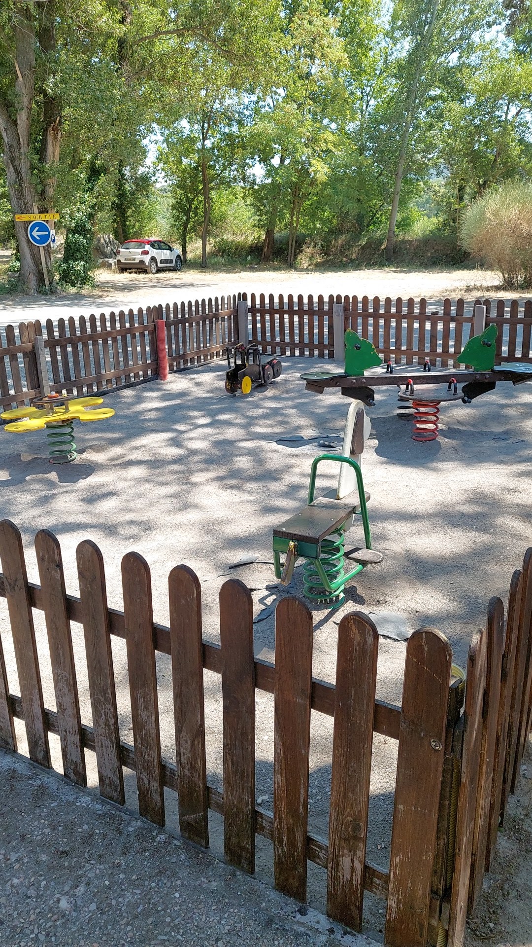 Lieux relativement calme ombragé. Personel très aimable !! Gardienne de taureau excellente !!!