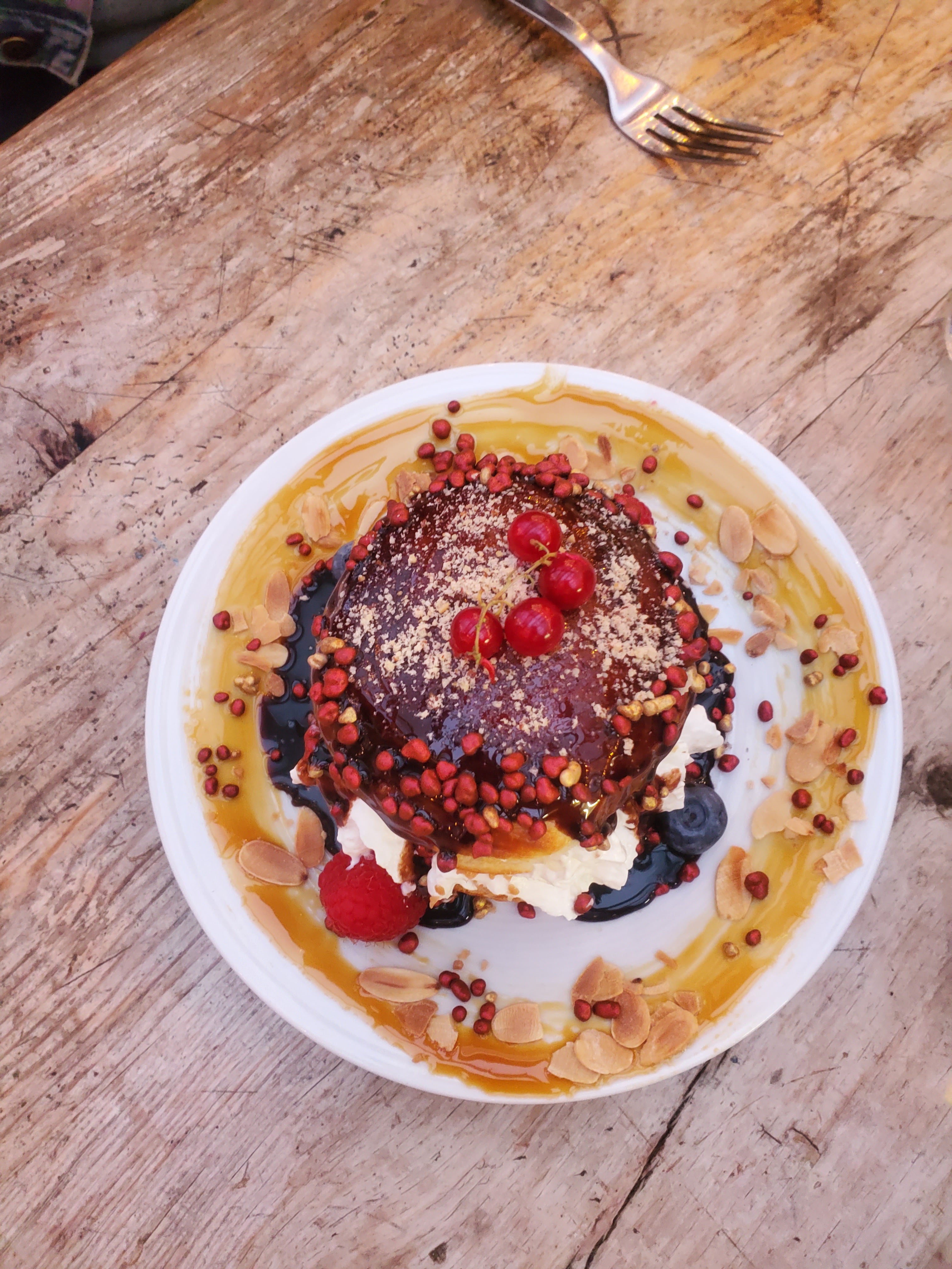 Je passe un coup de fil plutôt matinal le lundi matin après un premier WE festif, une voix de lendemain de fête me répond après une sonnerie. Midi et demi, 4 personnes. D'accord. Un accueil chaleureux lors de notre arrivée. Une table nous attendait dans ce lieu insolite et un peu frais vu la saison. Manu chao s'egosillait, la chaleur montait, la guinguette rien que pour nous. Tapas charcutterie locale et tartines tomates en entrée accompagnés aux verres par un jus de fruits à la mure et des bières du coin, puis boudin catalan avec des petits légumes dans une superbe assiette très bien présentée et des frites maisons, un verre de rouge terroir, et pour finir des gauffres confiture d'abricot ou coulis fruits de la passion. Un excellent moment. Je recommande fortement. La jeune patronne est adorable, pleine de ressources et d'une énergie incroyable.