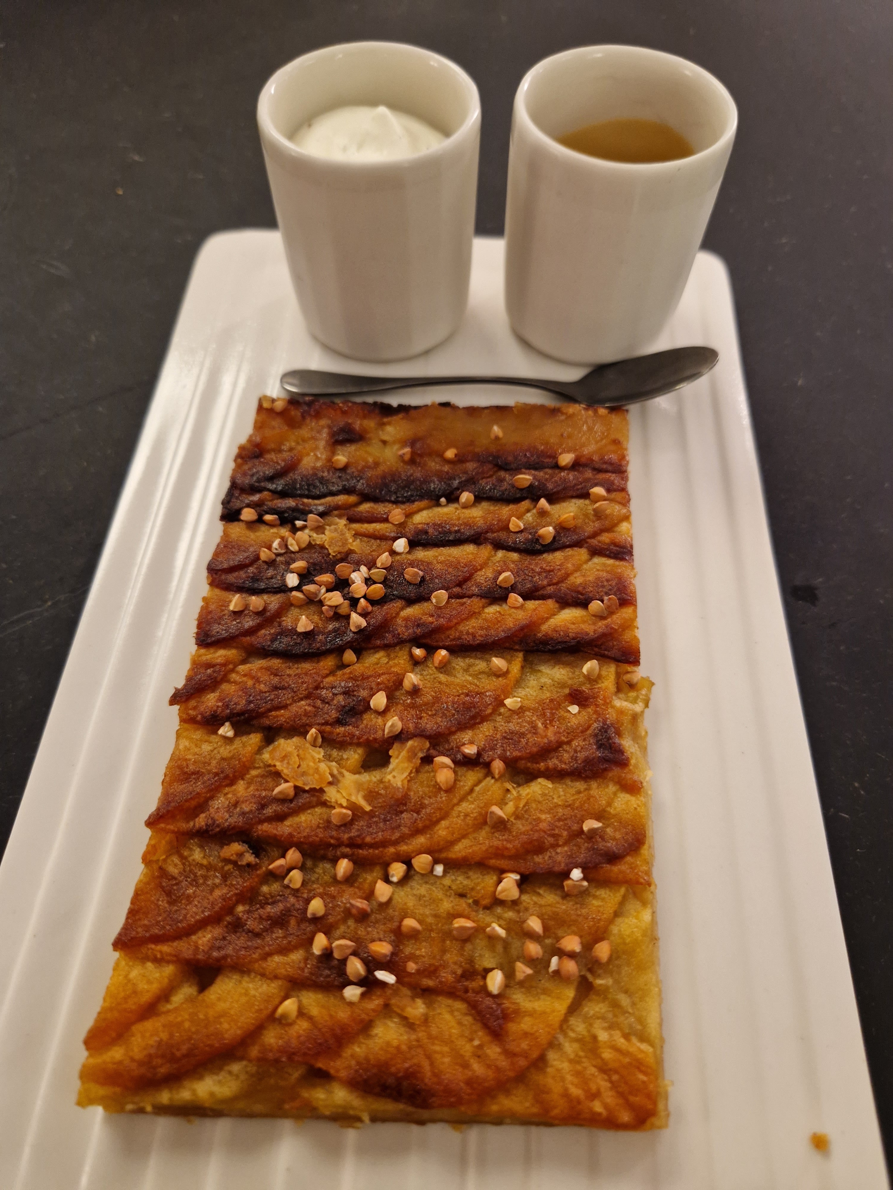 Superbe galette des rois (sur commande le we uniquement). Pour 6 personnes mais on a pu faire 8 belles parts. Pâte bien cuite. Garniture noisettes généreuse. Très jolie fève. Et service irréprochable !