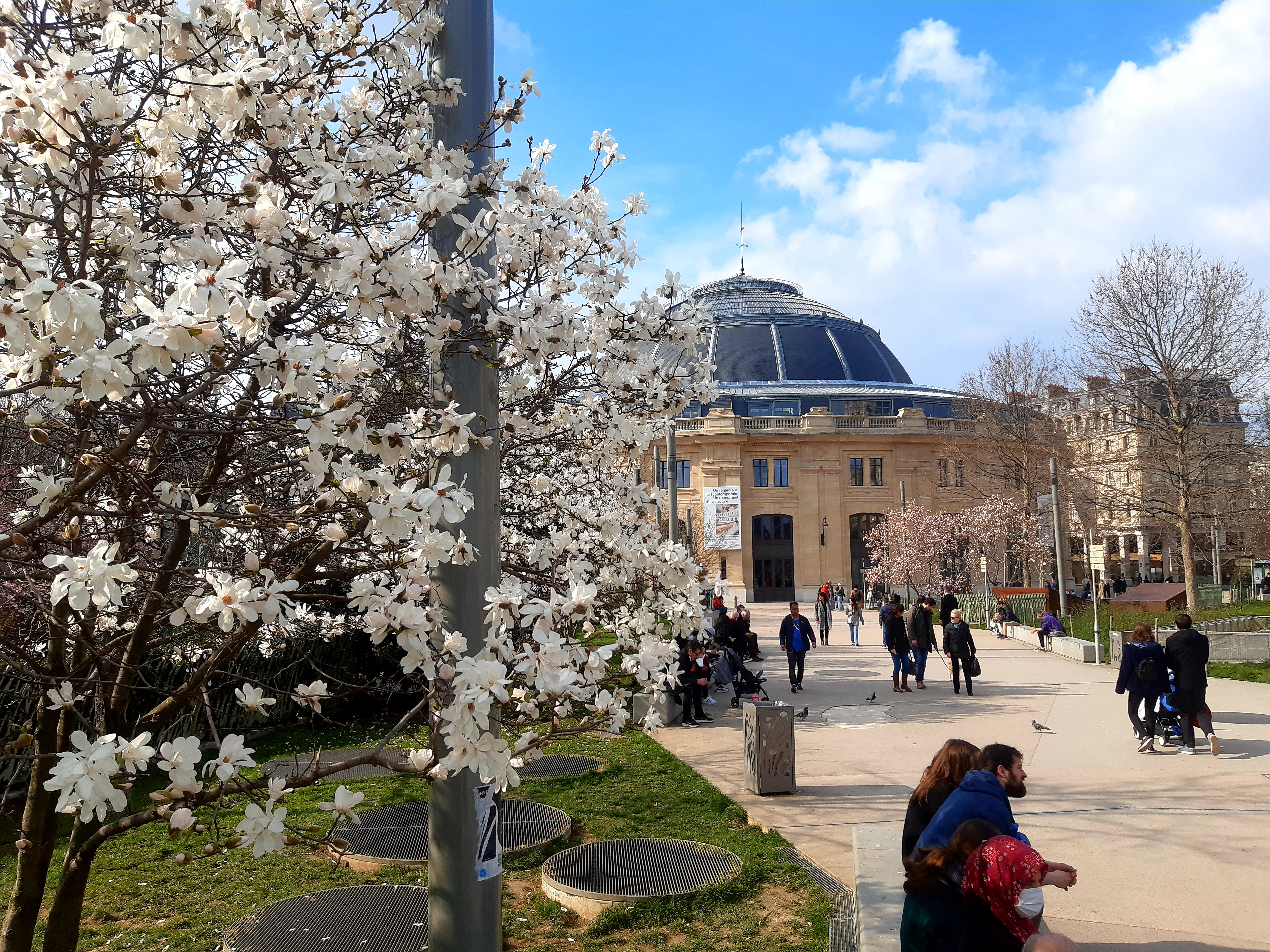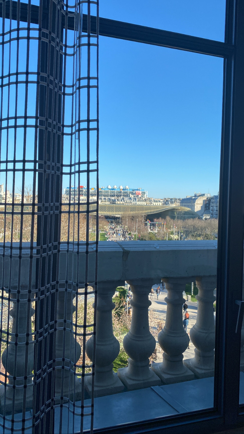 Restaurant et café au dernier etage de la boursede Commerce avec vue imprenable sur parc et plus loin du centre Pompidou Prix assez elevé, passe sanitaire de rigeur