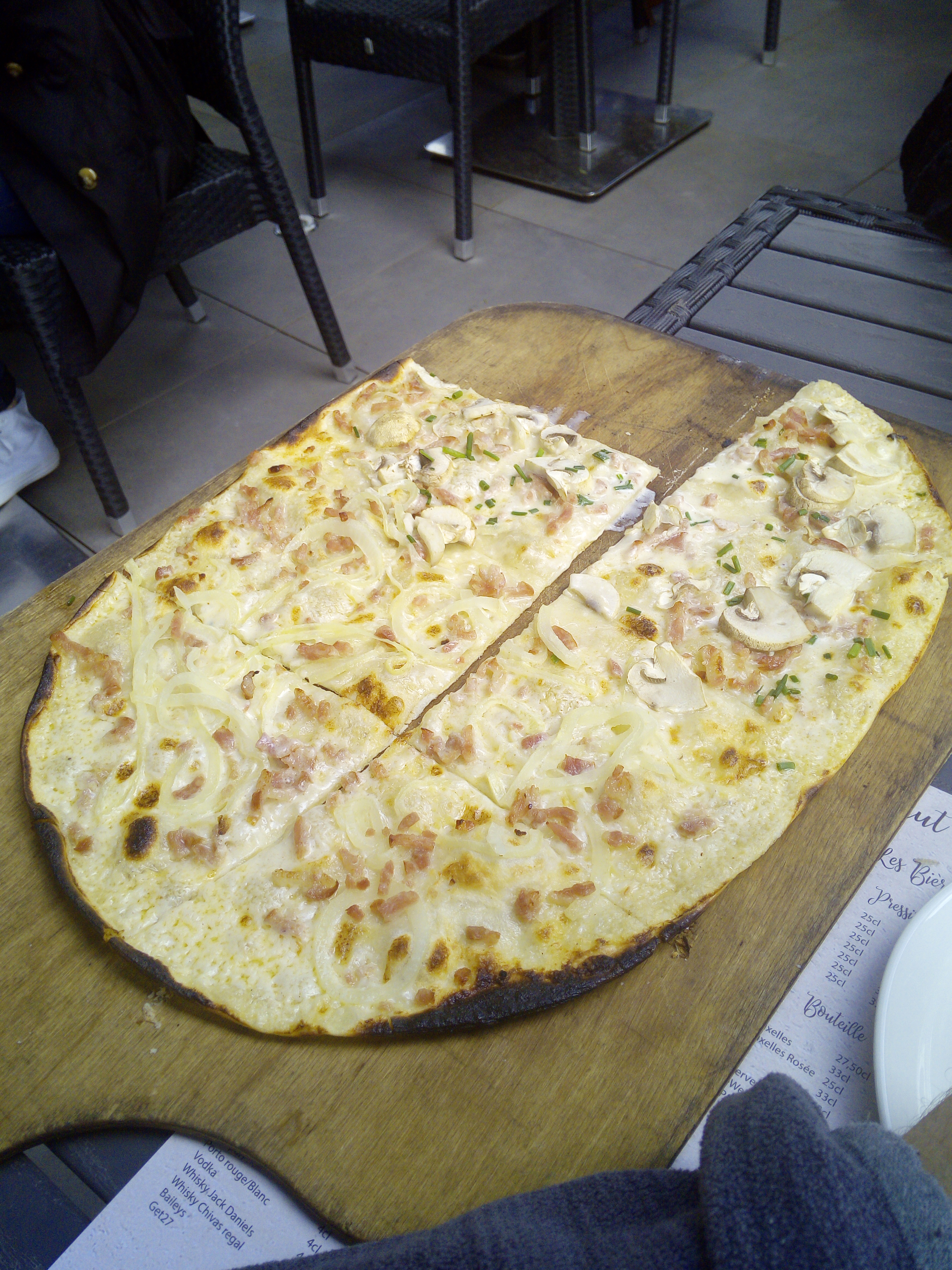Choisi pour ma soirée d’anniversaire. 🎂 Parking éclairé 🅿️ à quelques mètres. Très bonne tarte flambée Nordique 🐟 (saumon-ciboulette) pour commencer. Et pour terminer, d’un onglet à l’échalote en plat 🐂, le tout accompagné d’un bonne 50 🍺