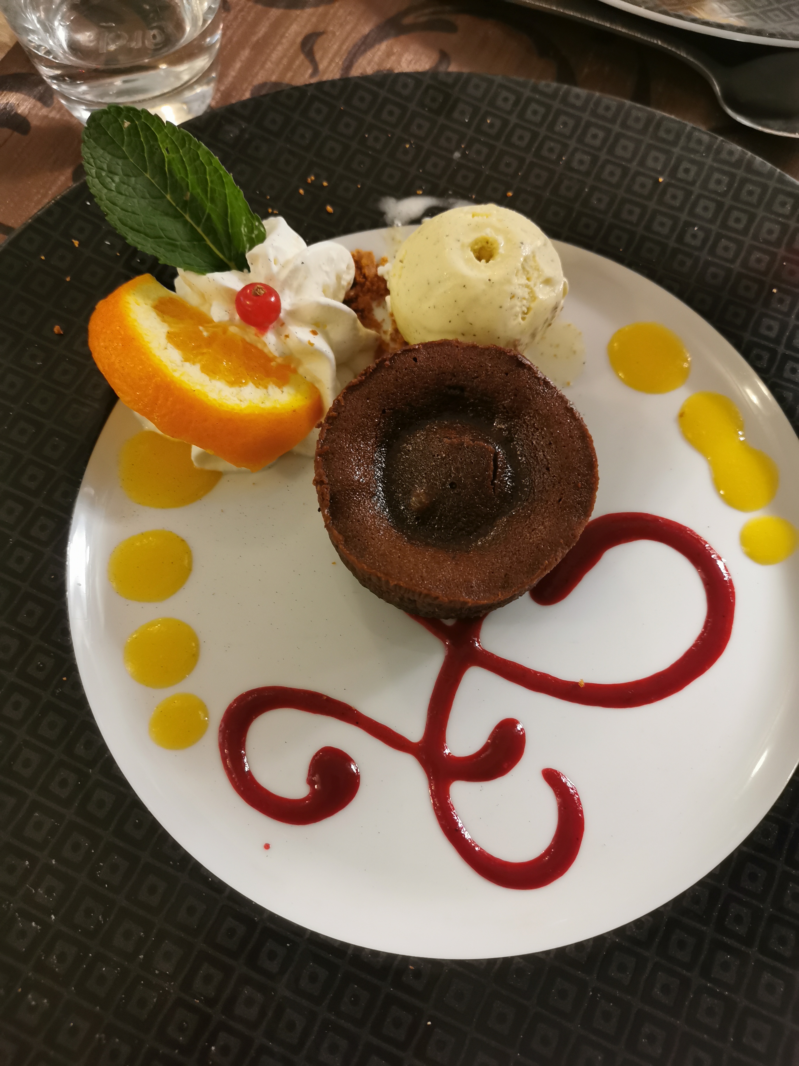 Magnifique cadre dans un chateau... Cependant les mets proposés ne reflètent pas ce beau lieu... L'entrée reste simple, le veau était bien cuit, les légumes basiques mais sans assaisonnement et la sauce était froide (dommage elle avait du goût). L'accompagnement est venu vers la fin du repas. Dommage pour le manque de coordinations.