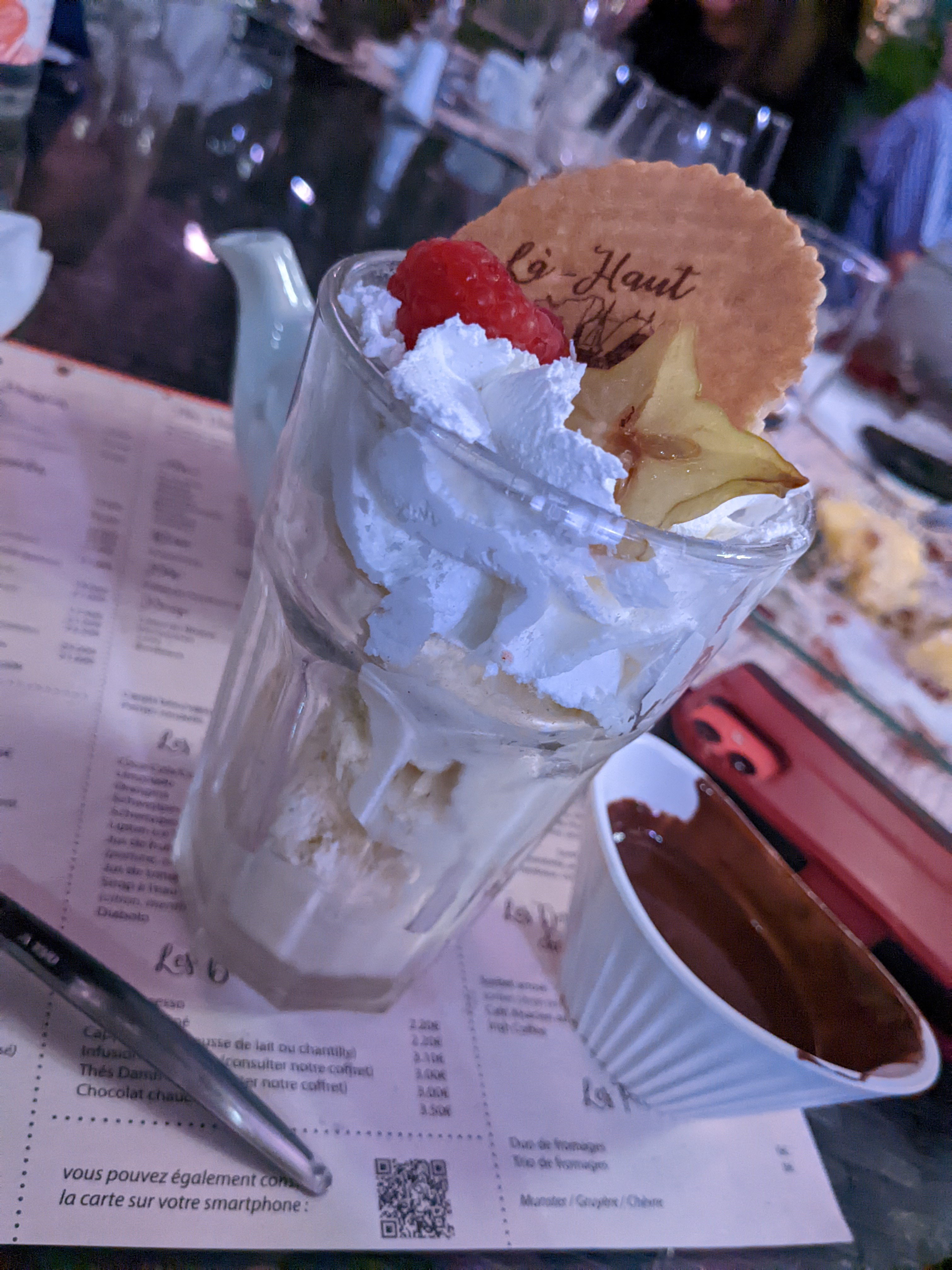 Nous avons réservé au restaurant Là-haut pour fêter l'anniversaire de mon mari. Ce fut très agréable. Les plats sont très bons et copieux et par dessus tout un personnel bienveillant et professionnel. Merci pour votre accueil