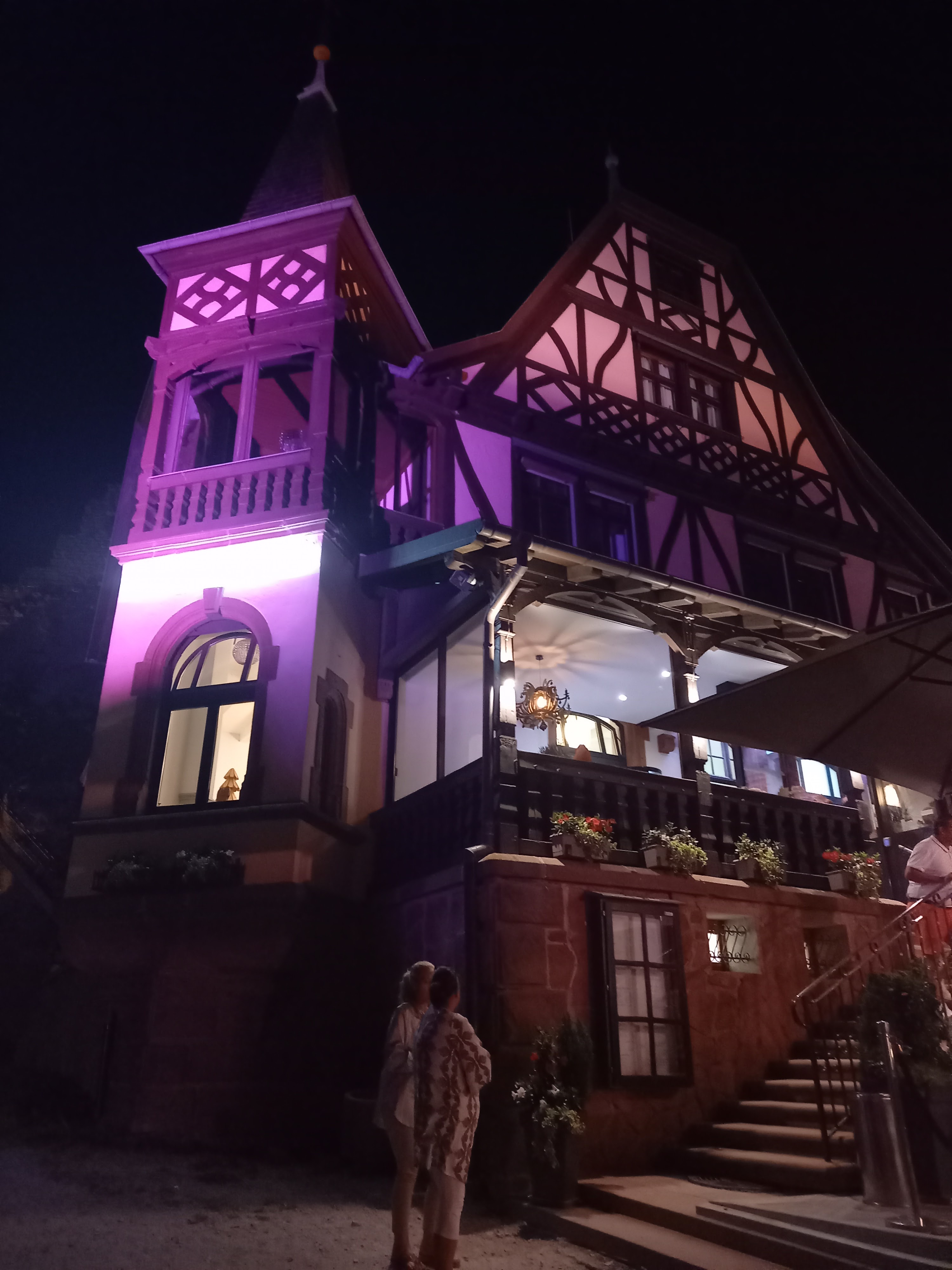 Accueil chaleureux, personnel très sympathique, chambre spacieuse et décorée avec goût. Vue exceptionnelle sur le château et la chapelle, ambiance magique à la tombée de la nuit. Carte variée, assiette très copieuse, présentation soignée. Nous recommandons fortement.