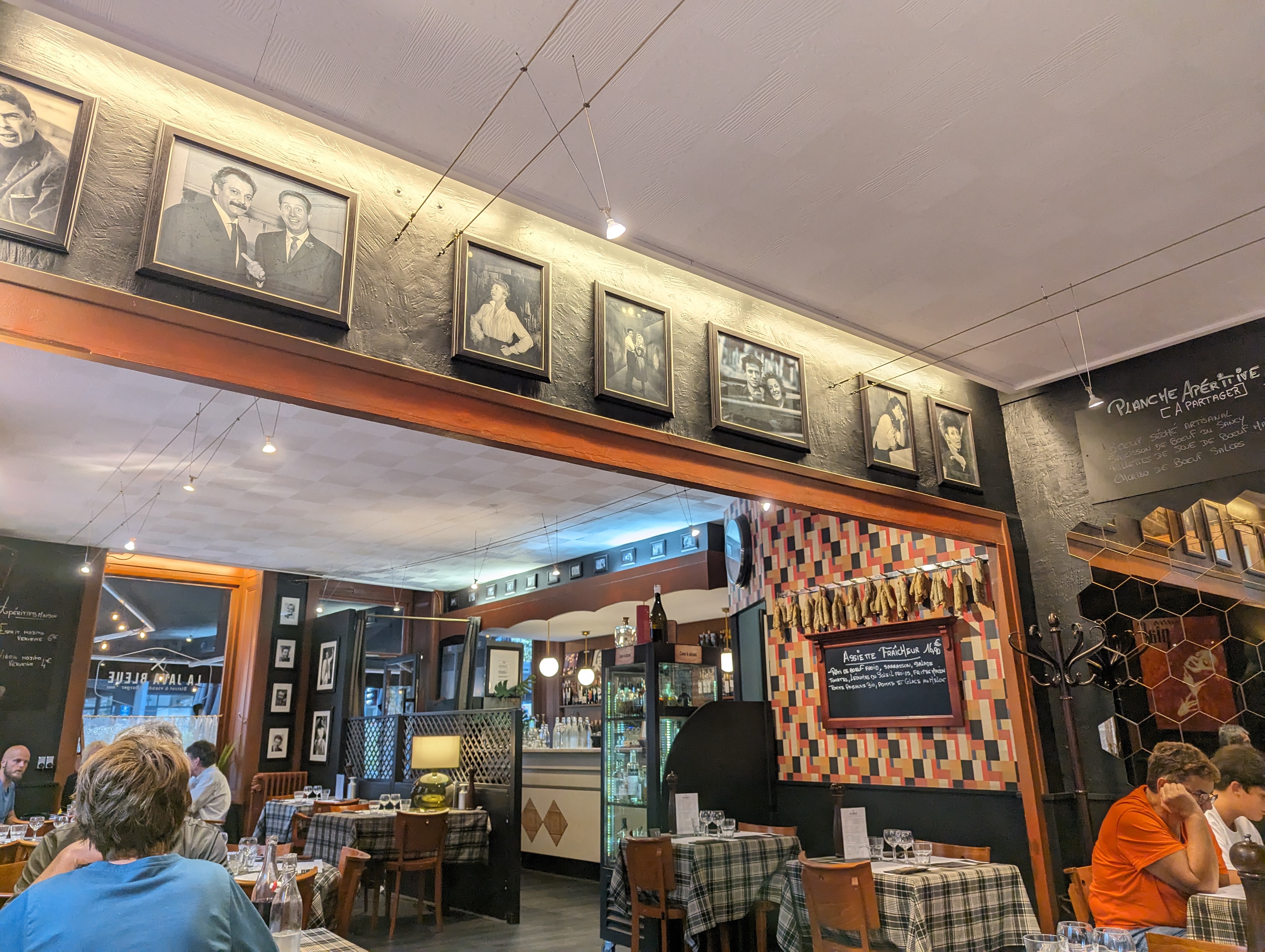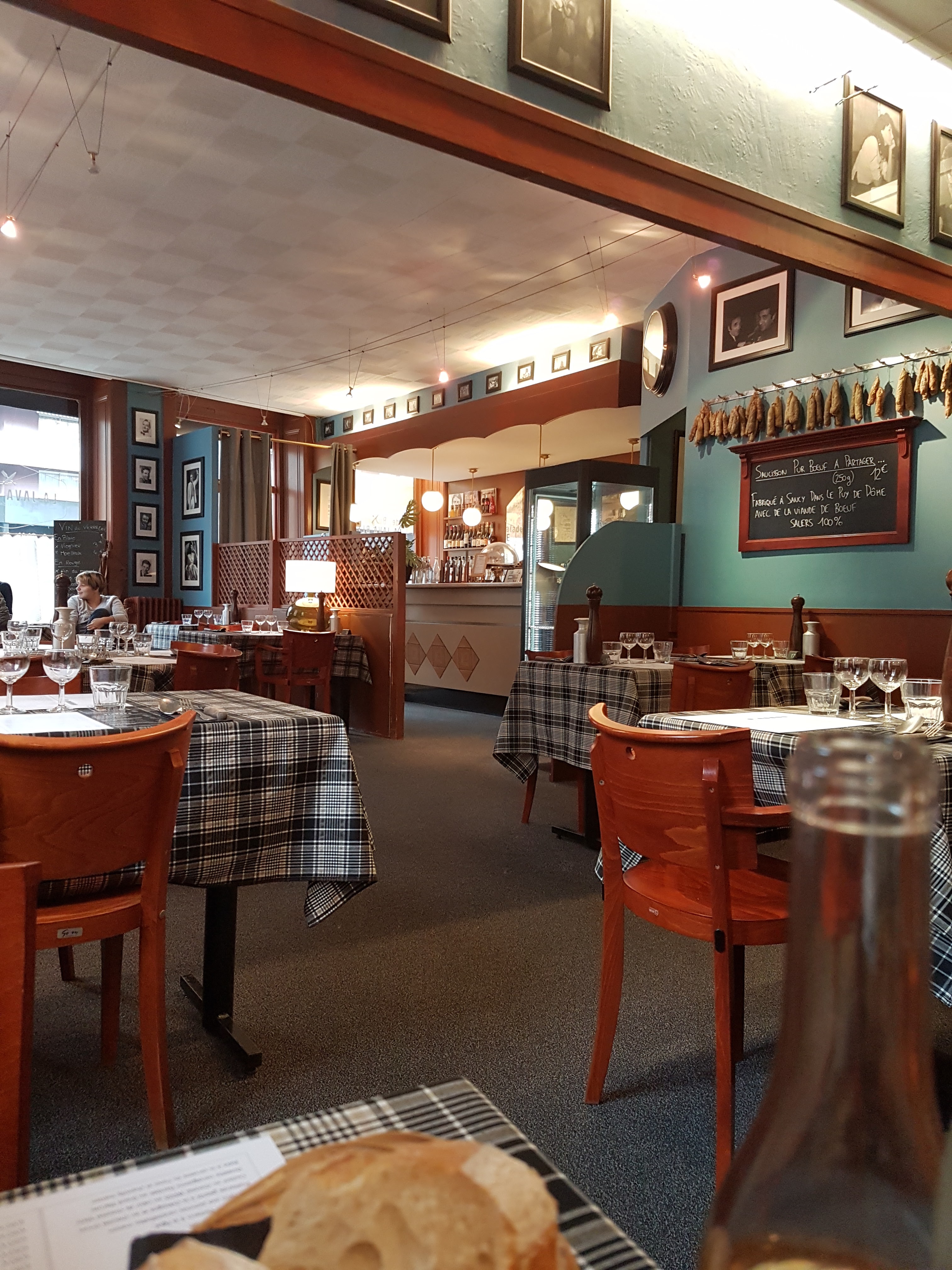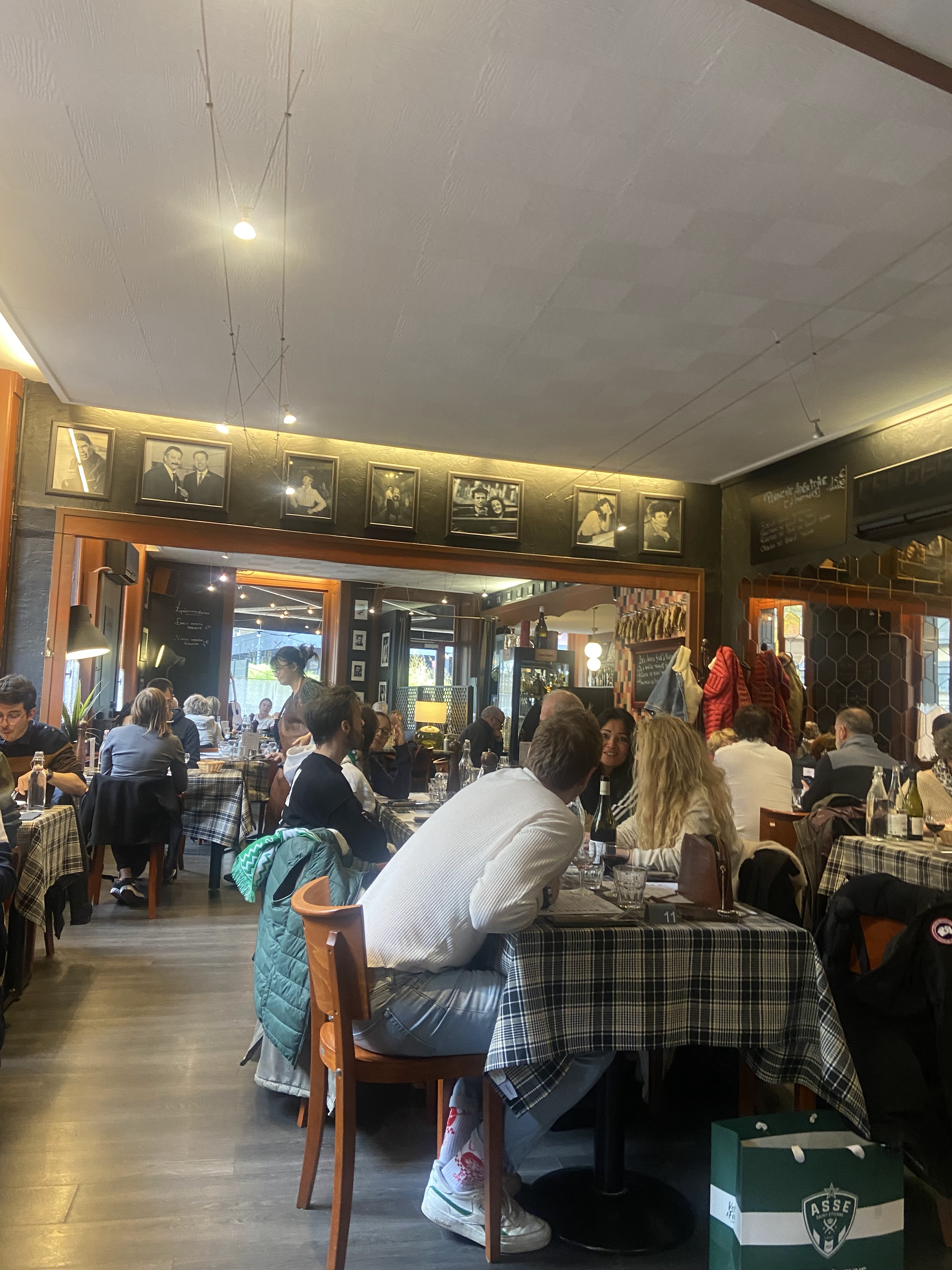 J'ai adoré! L'ambiance du temps de nos grands parents avec Trenet, Piaf, Montant, Brassens etc affichés sur les murs, les tables aux nappes à carreaux. L'accueil super. Les serveurs adorables, et pour les carnivores: de la très bonne viande 100% française race à viande, charcuteries et frites maison. Un régal!