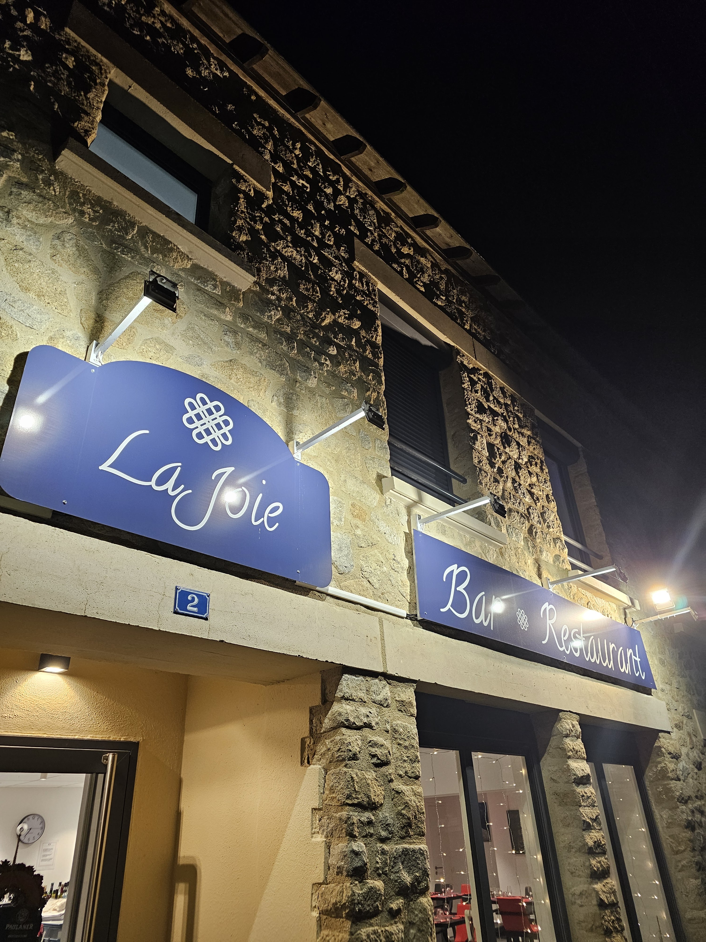 Récemment le restaurant La Joie a ouvert ses portes sur notre commune pour le plus grand plaisir de ses habitants. Cela fait plusieurs fois que j'y mange sur place ou à emporter, et croyez moi sur parole c'est un régal à chaque fois. Très accueillants et très professionnels Je recommande ++++