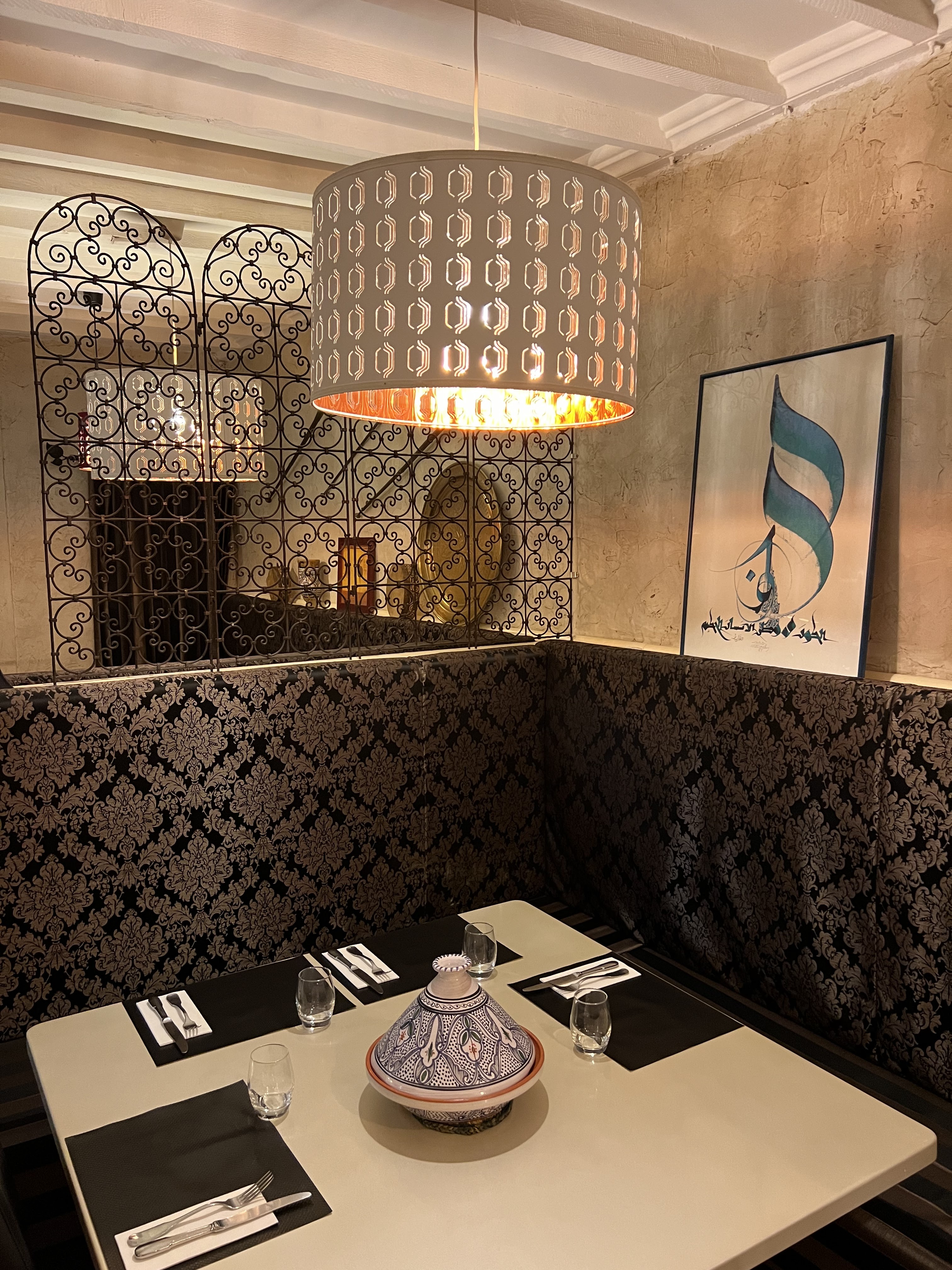 Lieu magnifique chaleureux magnifique décoration ambiance cosy une évasion orientale avec la bonne chaleur des plats et des merveilleux chauffages. La cuisine est délicieuse c'est du 5 étoiles 🌟 gastronomie spécialités marocaines des entrées des plats et assortiment de pâtisseries orientales un délice !!! Merci pour la gentillesse la joie de votre accueil et a très bientôt pour la pastilla qui m'a l'air fantastique !!!! Et bravo chef tu es un grand chef !!! 5 étoiles 🌟🥂🍾 !!
