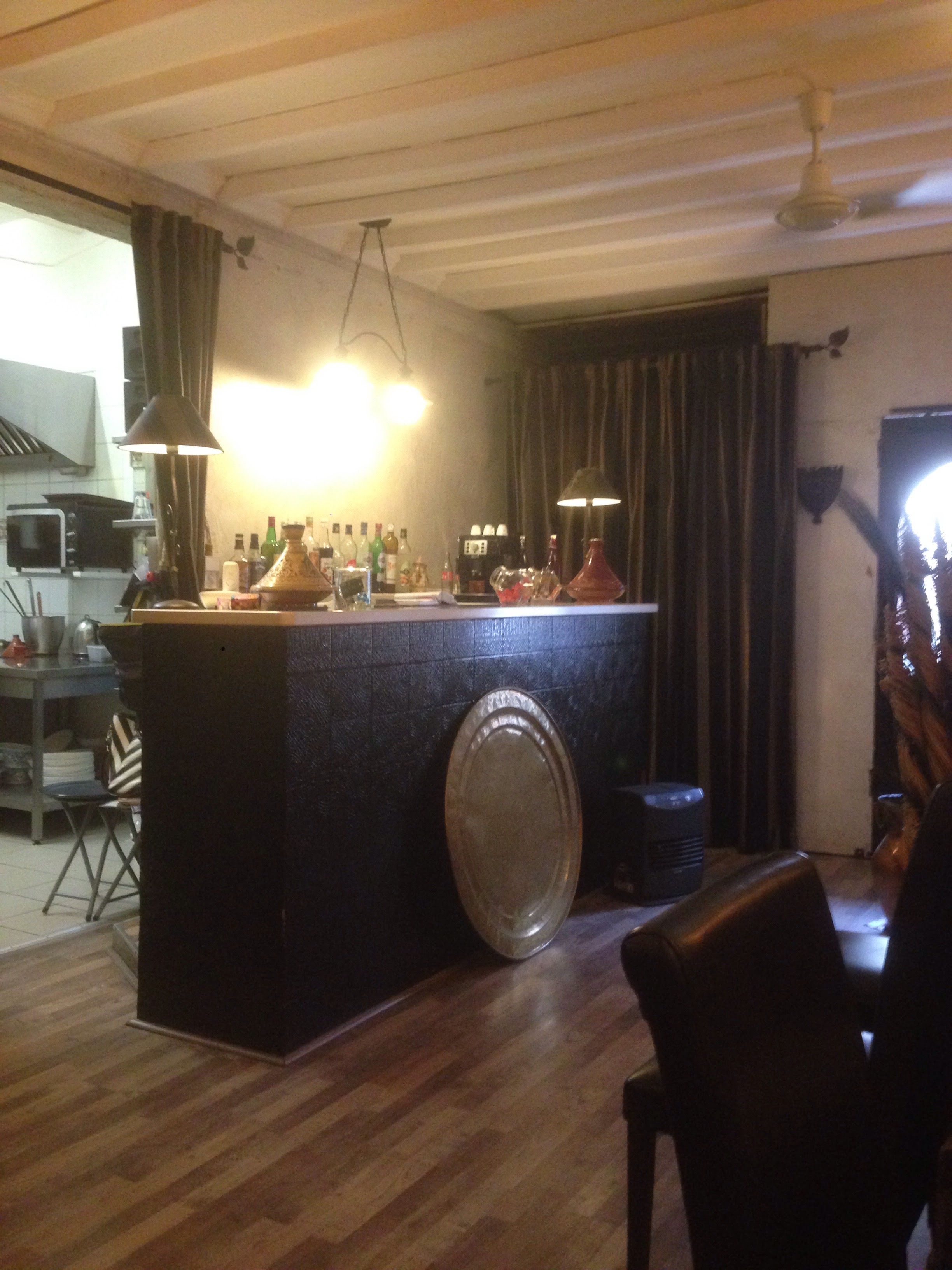 Nous sommes allé y manger samedi soir (c'était la 2ème fois pour ma part), dès l'entrée dans l'établissement on se sent bien et détendu (pas de chichiponpon), l'accueil y est simple mais agréable. À l'apéritif, un petit accompagnement histoire de se mettre en bouche. Les plats y sont copieux sans être hors de prix (j'aurais aimé un peu plus de viande dans ma tajine à l'agneau car il y avait beaucoup d'os). En tout cas on ressort le ventre plein et de bonne humeur grâce à la sympathie de la patronne.