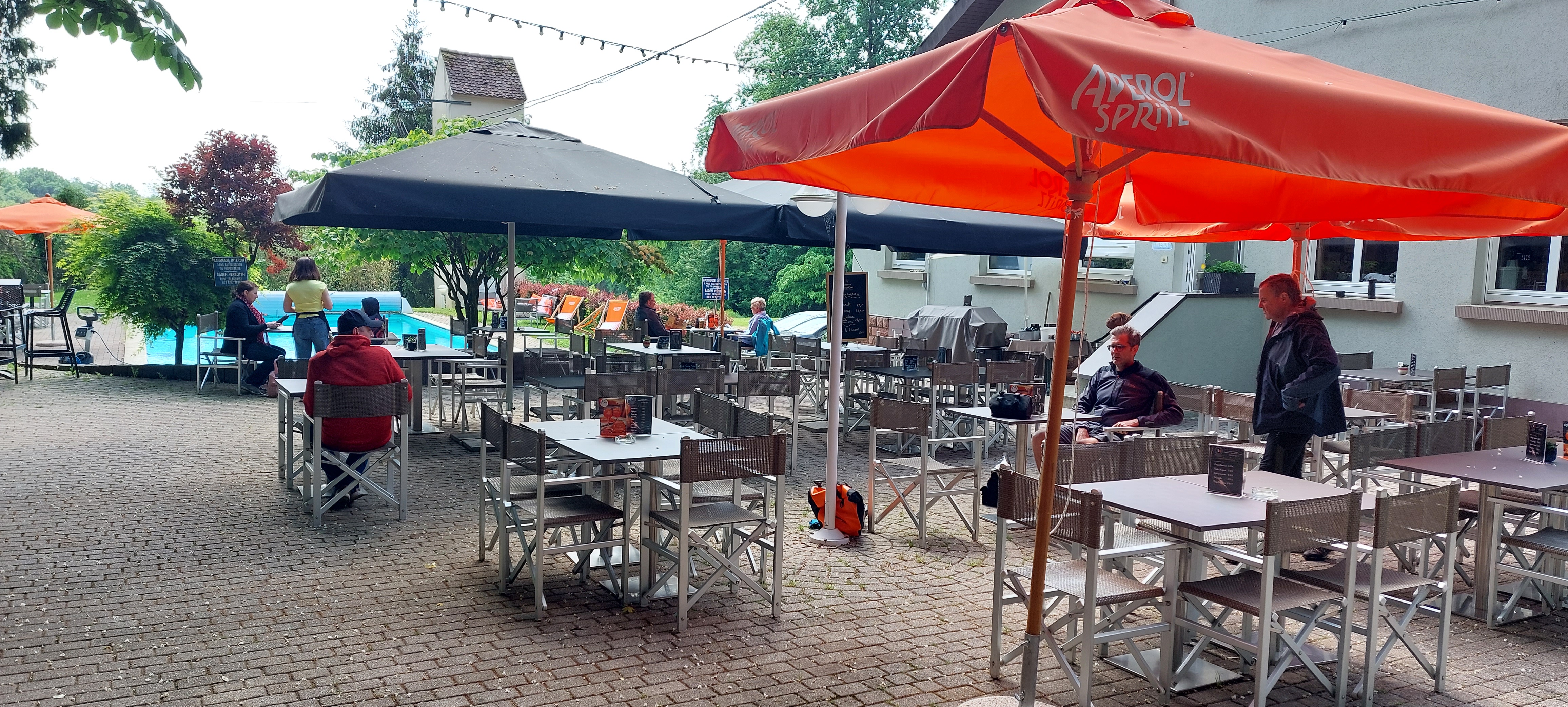 Bon restaurant, il y a un complexe de bunkers en plein cœur de la forêt à proximité. Entre 14h et 18h, il y a un petit menu sur lequel vous pouvez commander. Malheureusement, nos enfants n'avaient qu'un seul plat à choisir : la tarte flambée baguette. Malheureusement, ce n’était disponible qu’une seule fois et les enfants devaient le partager. Le restaurant dispose d'un bar et d'une piscine et mériterait certainement une visite le soir. Malheureusement, le service n'a pas été supérieur à ce que nous voulions payer - c'est pourquoi nous avons déduit une étoile.