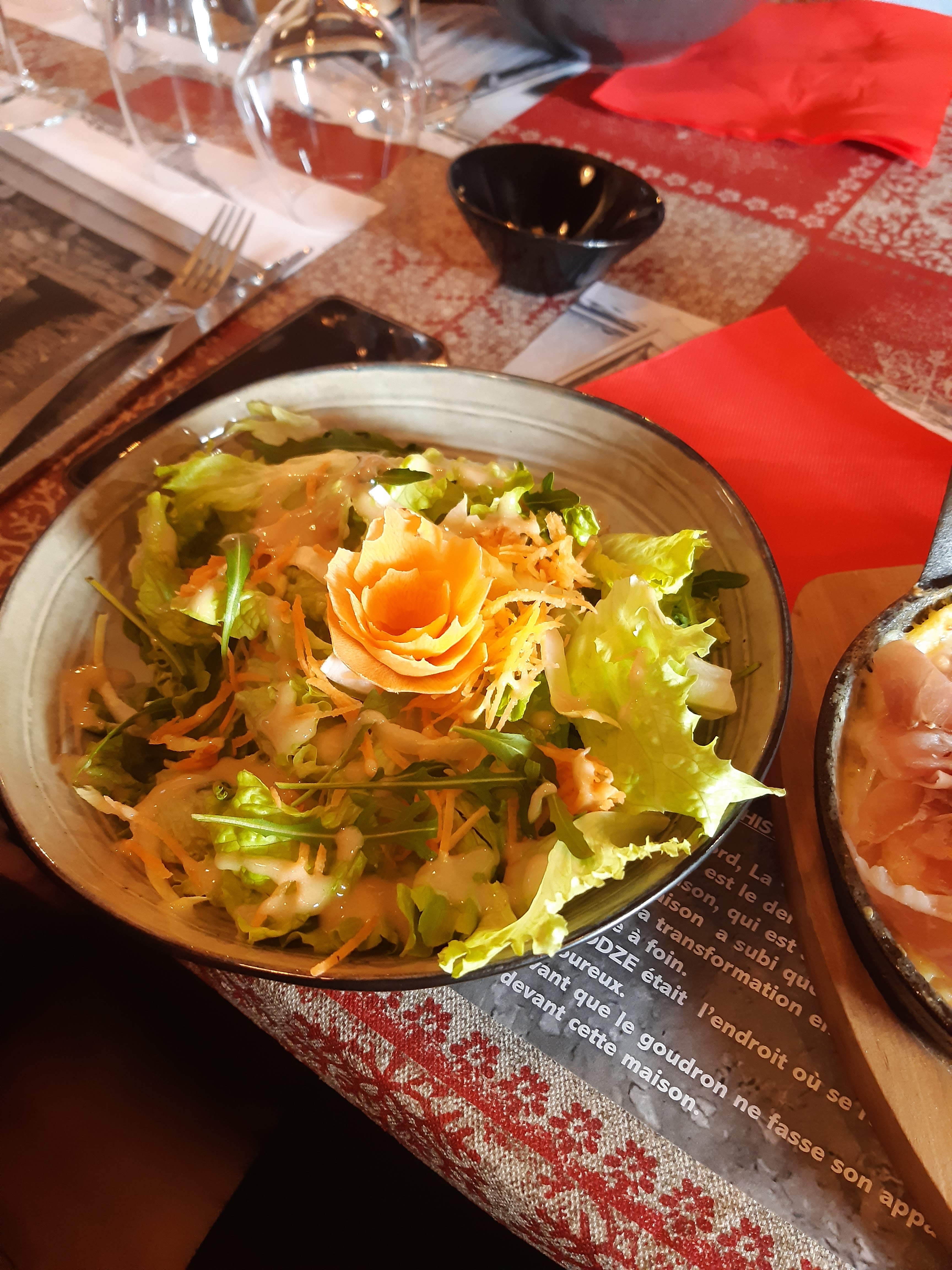 Situe à l’écart dans une rue très peu passante il propose des plats de montagnes tartiflettes raclettes, crossiflettes, crêpes, salades a des prix corrects la cuisine est bonne