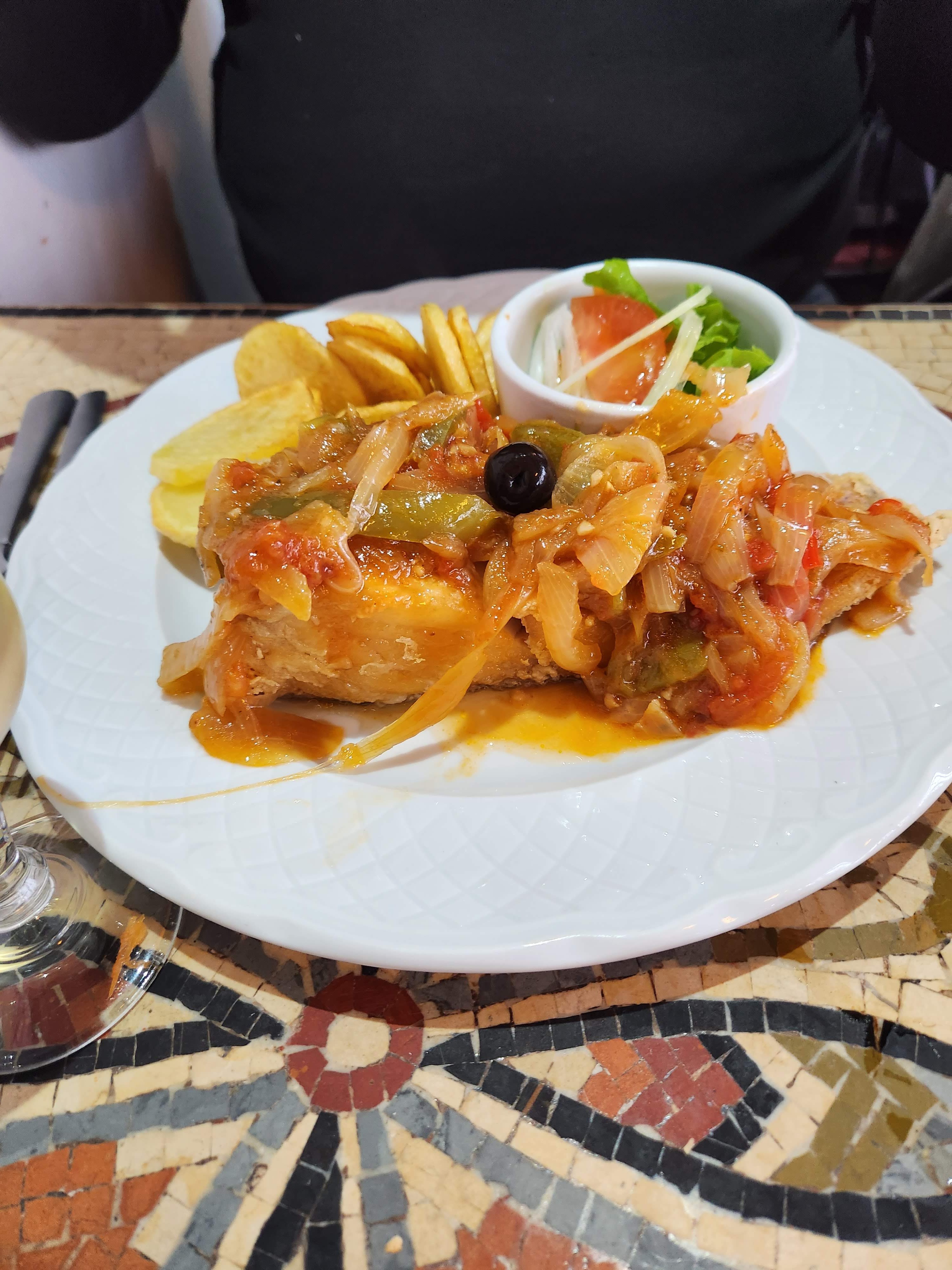 Très bonne decouverte d'un petit coin du Portugal. Décidées à manger de la morue on n'a pas du tout été déçues!!! Très bien cuisinée en termes d'assaisonnement et cuisson. Je recommande sans hésiter. O bacalhau estava delicioso. Suculento e bem temperado. Recomendo sem hesitação.