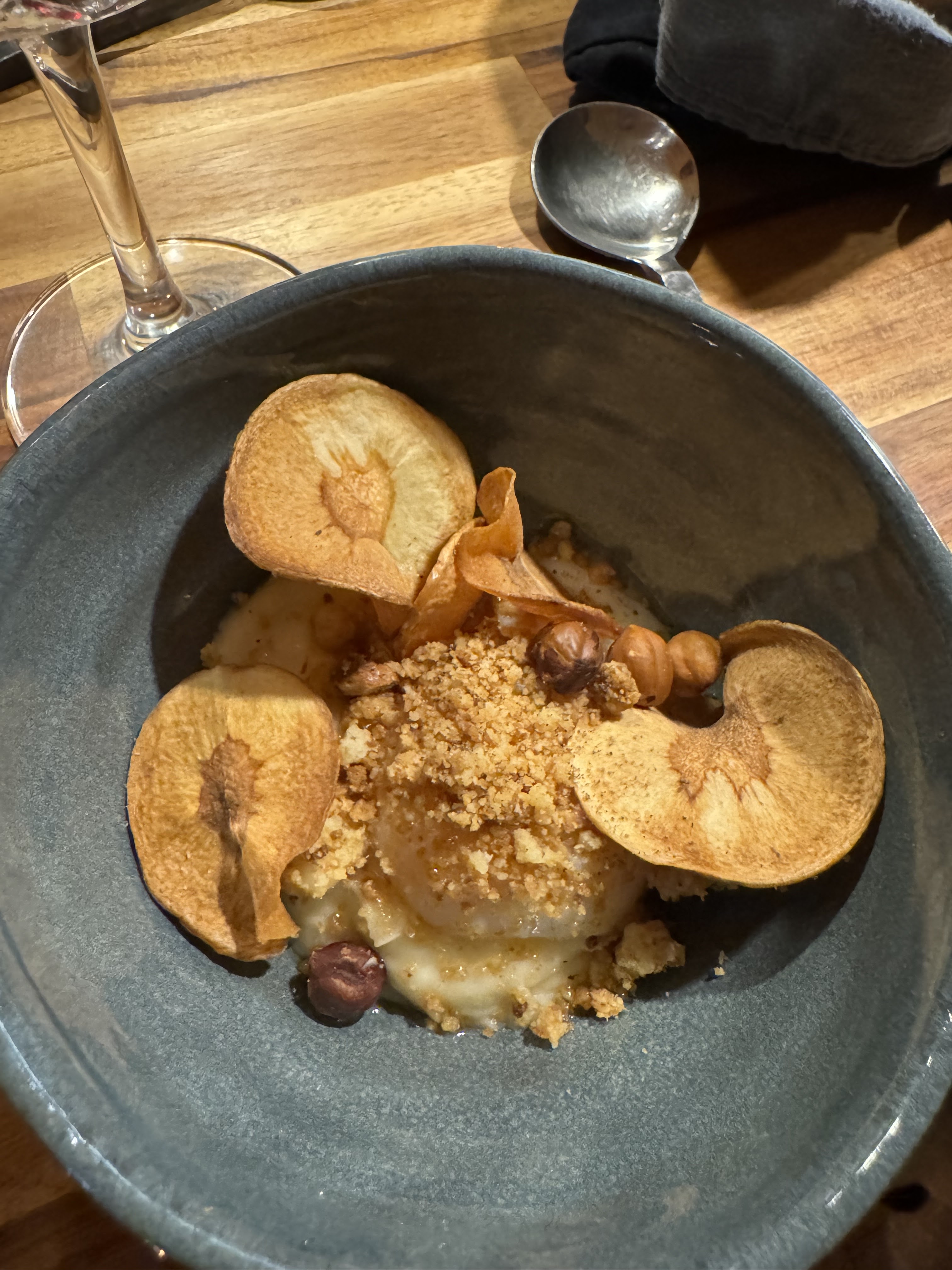 Le lieu est plein de charme avec une déco chaleureuse. Le chef est au top, super accueillant, généreux, tous les plats sont élégants, et excellents, cuisinés avec des produits locaux autant que possible en plus! A découvrir absolument!