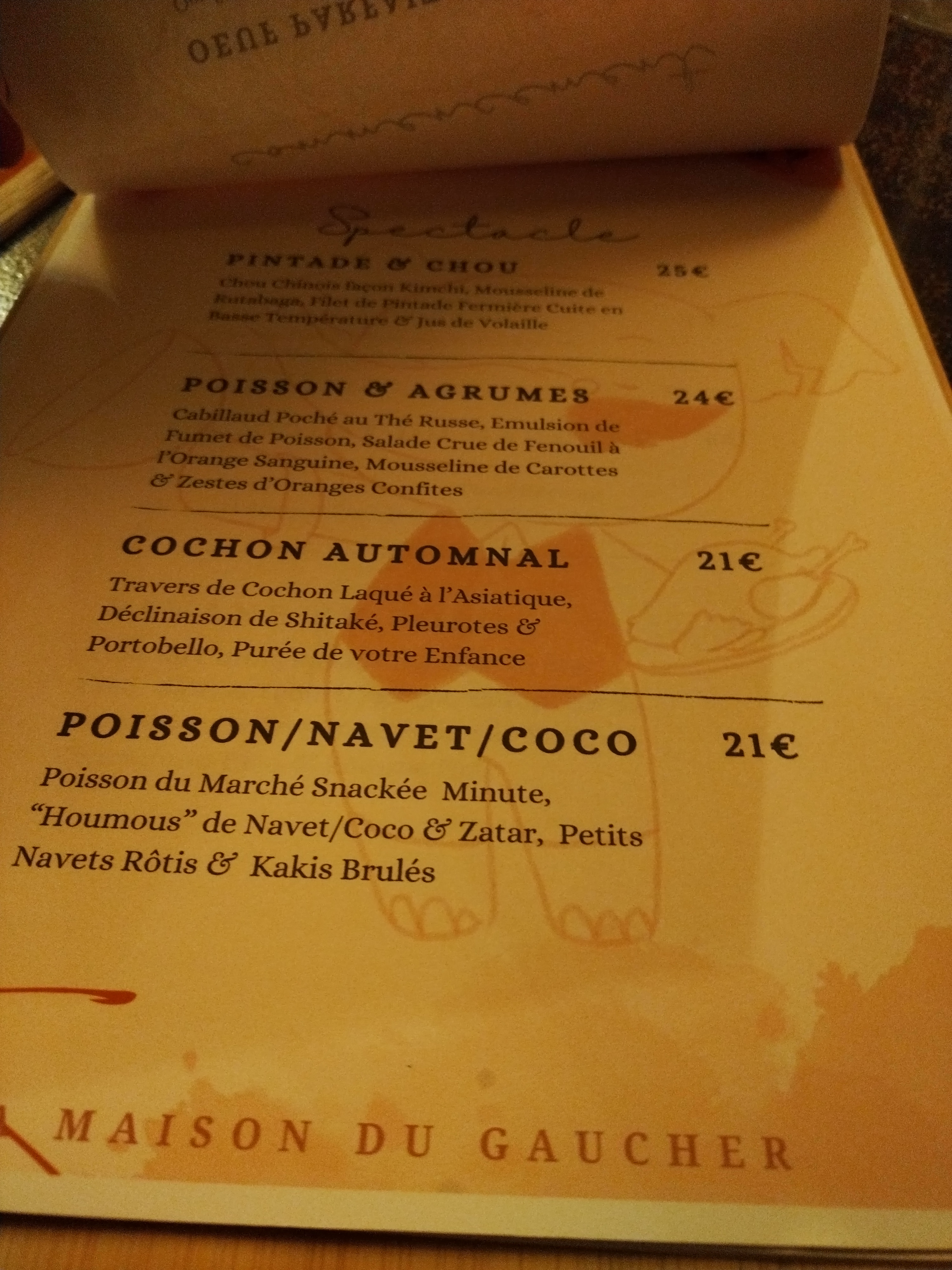 J'y descend une fois par mois, la carte évolue à chaque fois, des produits de grandes qualités, une très bonne cuisine et un accueil adorable ! Un très bon choix des vins :D rapport qualité prix imbattable !