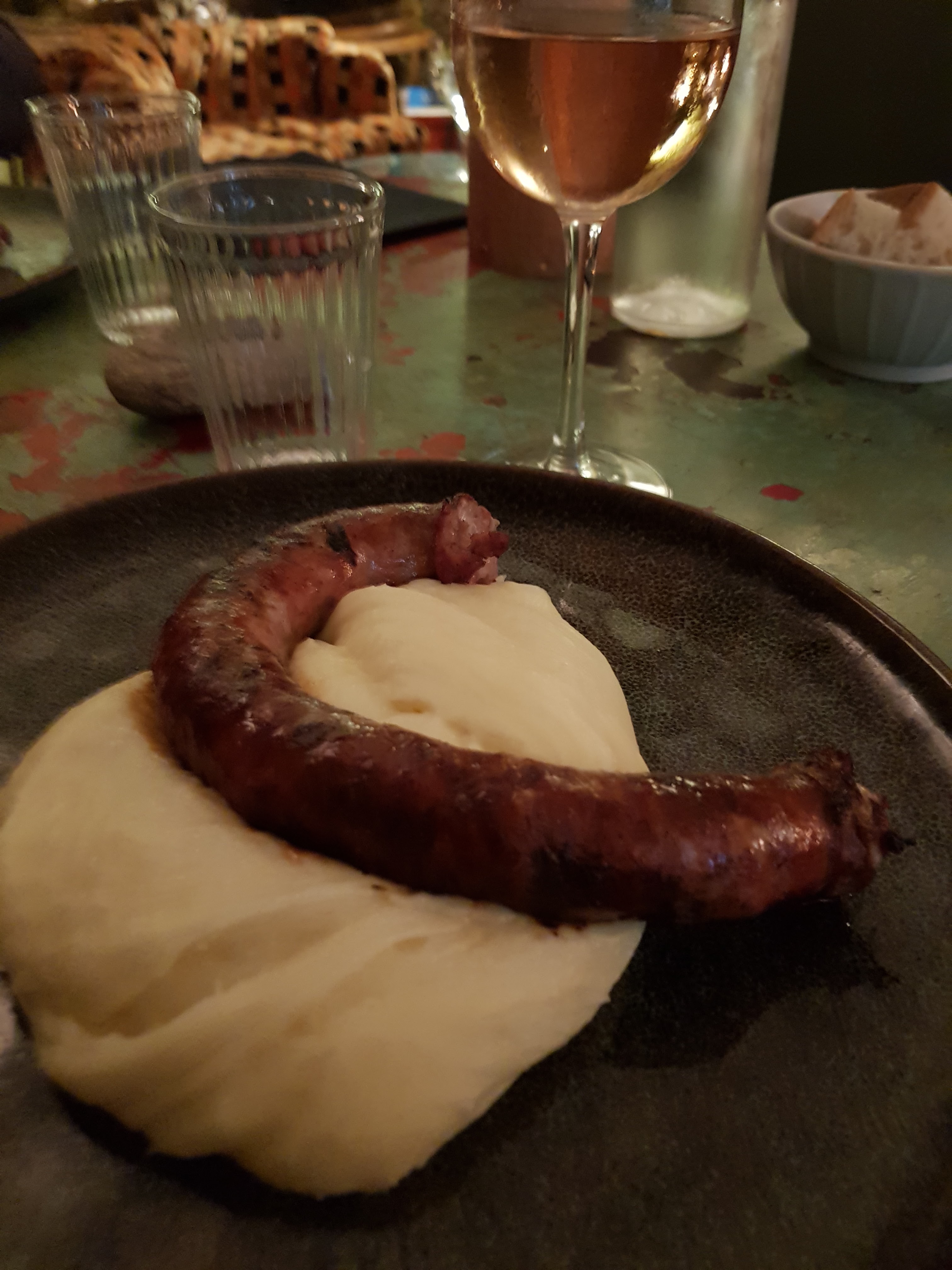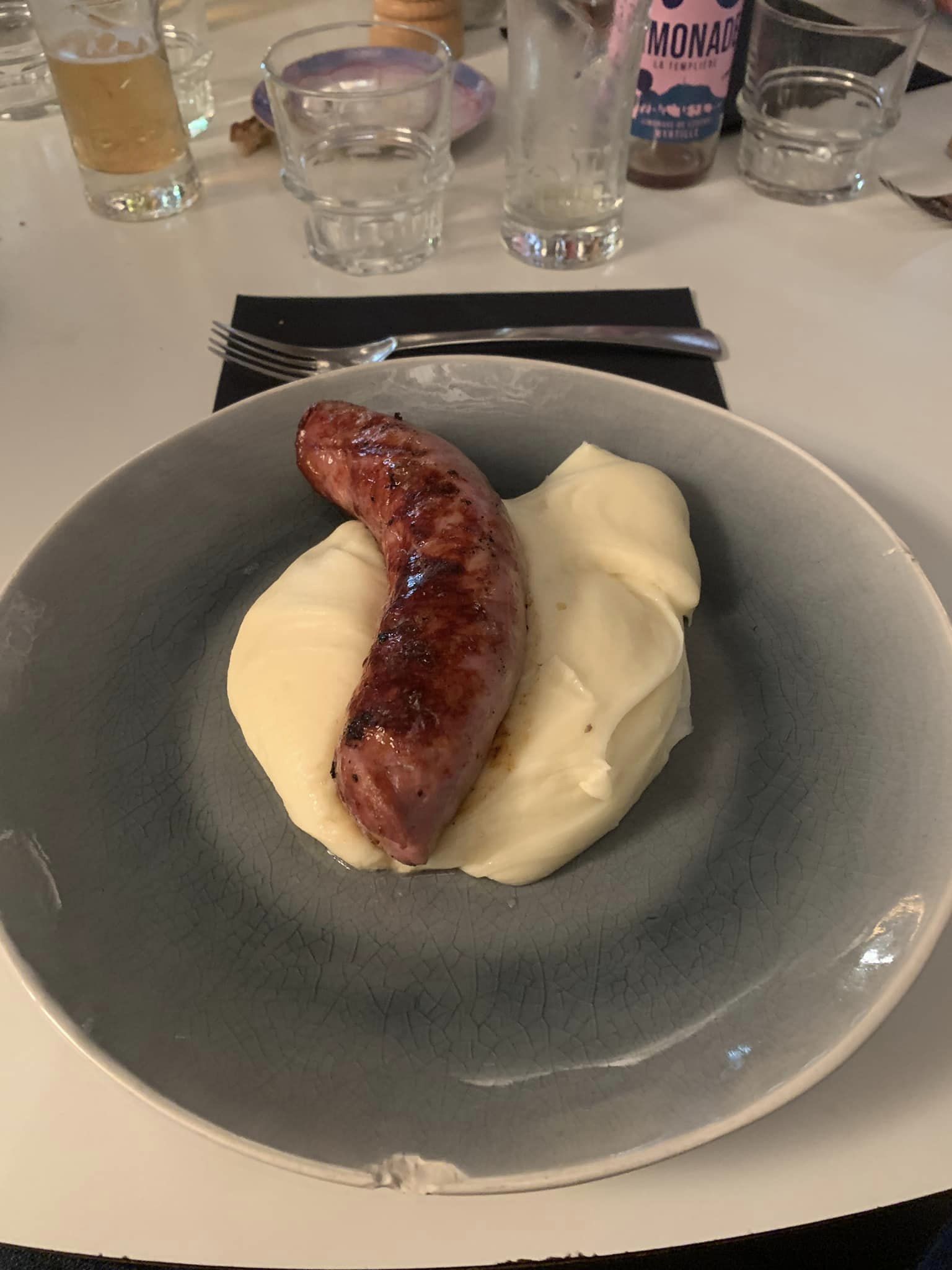 Ambiance très sympa ainsi que l’accueil. Côté cuisine, foie gras top et saucisse aveyronnaise et aligot top. Par contre svp un petit effort voir gros!!! sur le spritz vraiment pas top… Merci on reviendra avec plaisir
