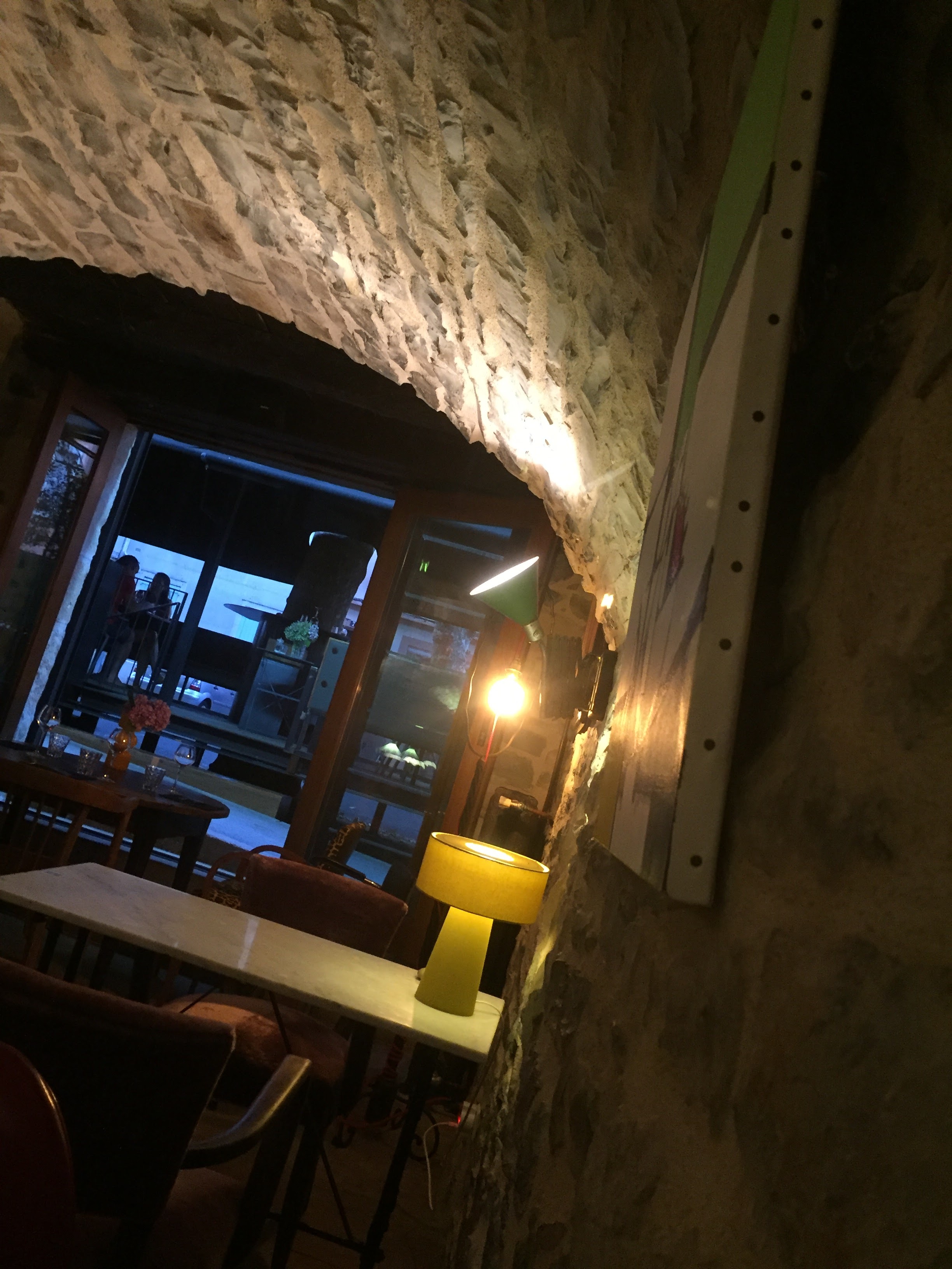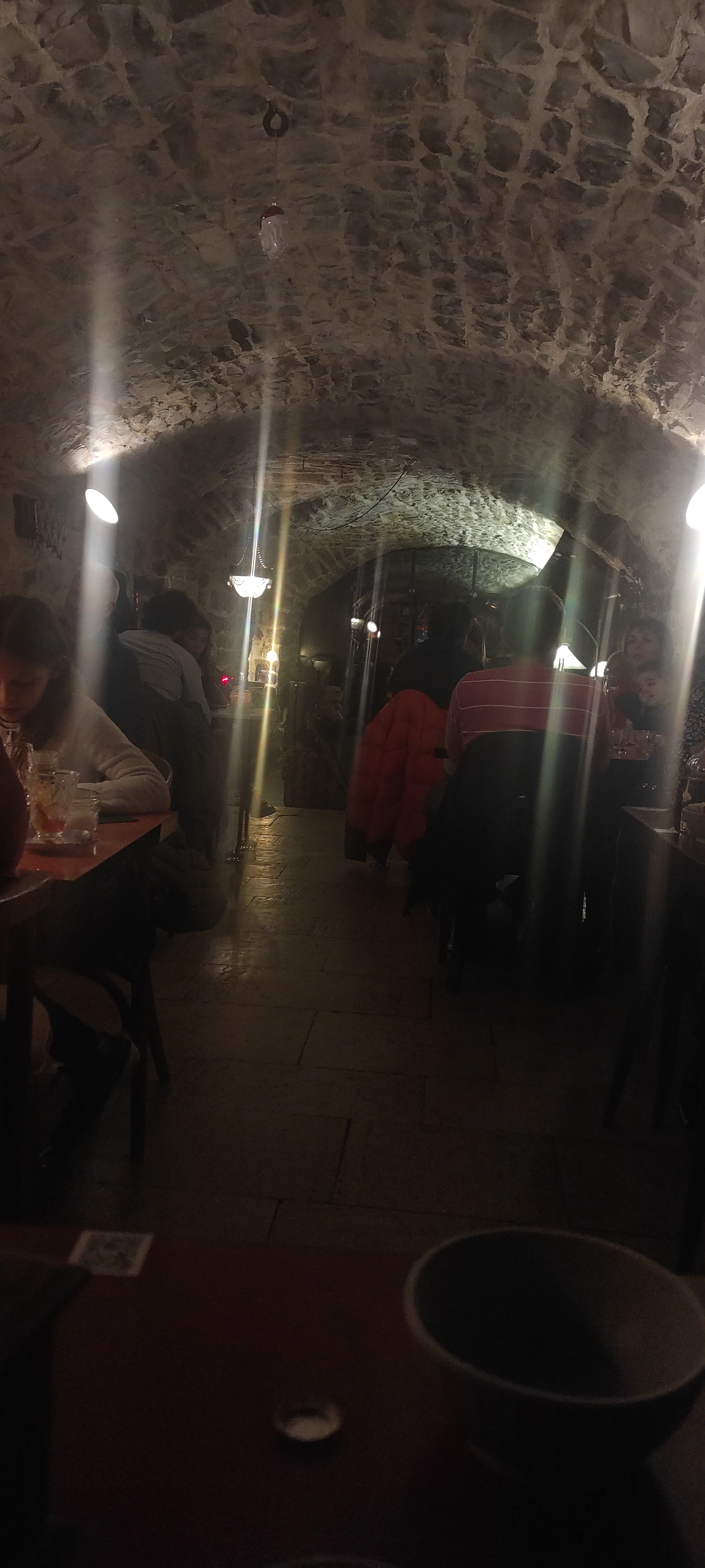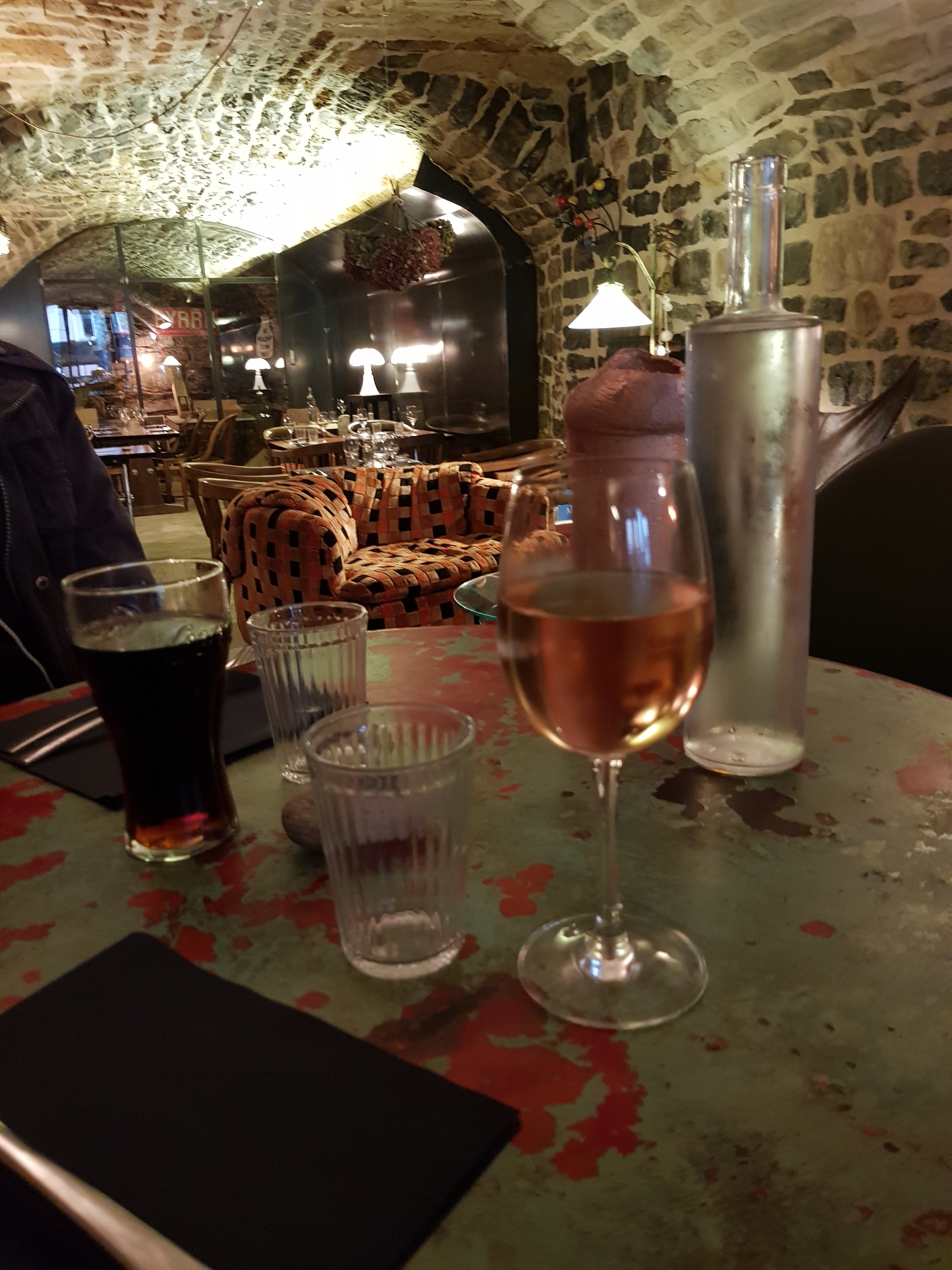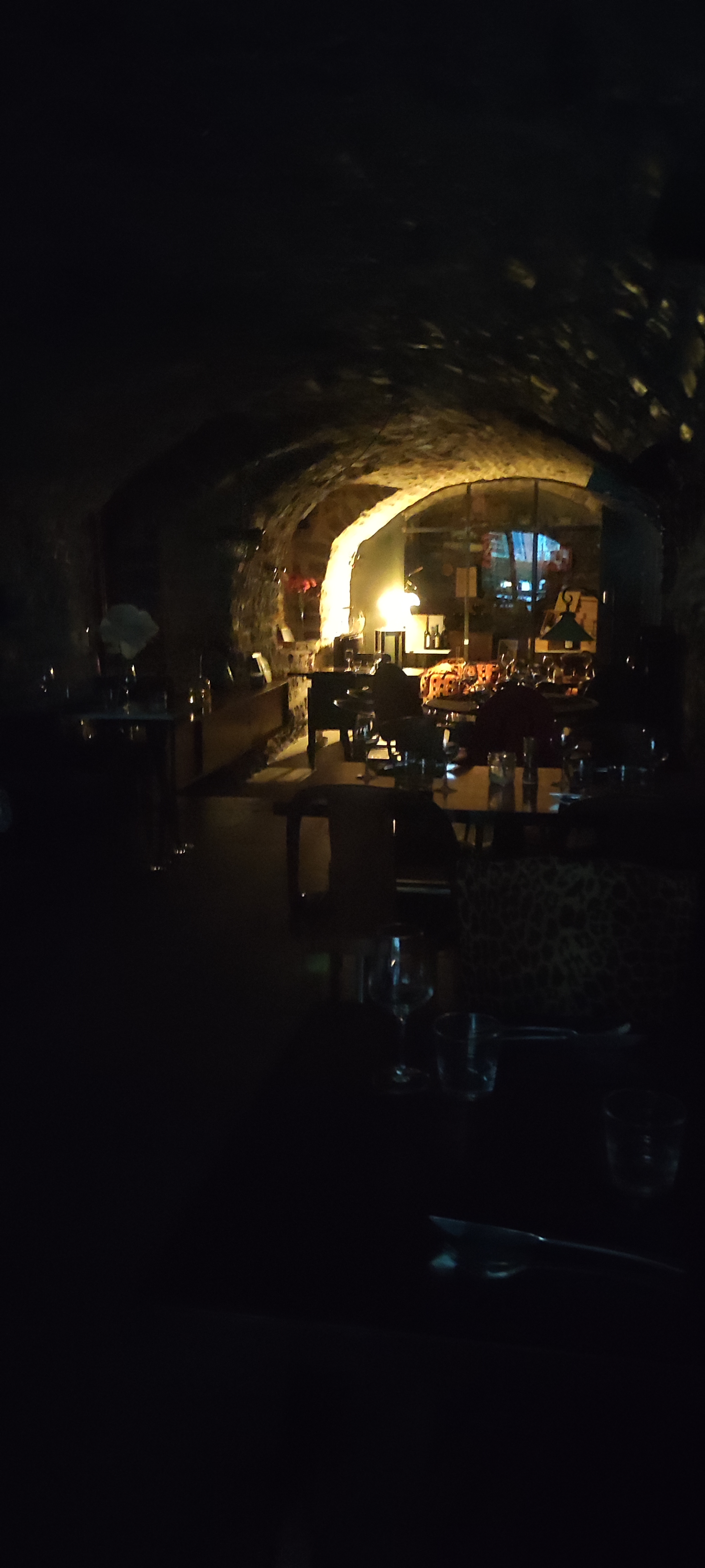Nous étions dans la salle en contrebas et le cadre y est très agréable avec les murs en pierre et le plafond voûté. Les plats servis étaientt tout à fait corrects sans être merveilleux. Le midi, comme on peut s'y attendre, les prix sont plus raisonnables. Les membres du personnel sont jeunes et sympathiques.