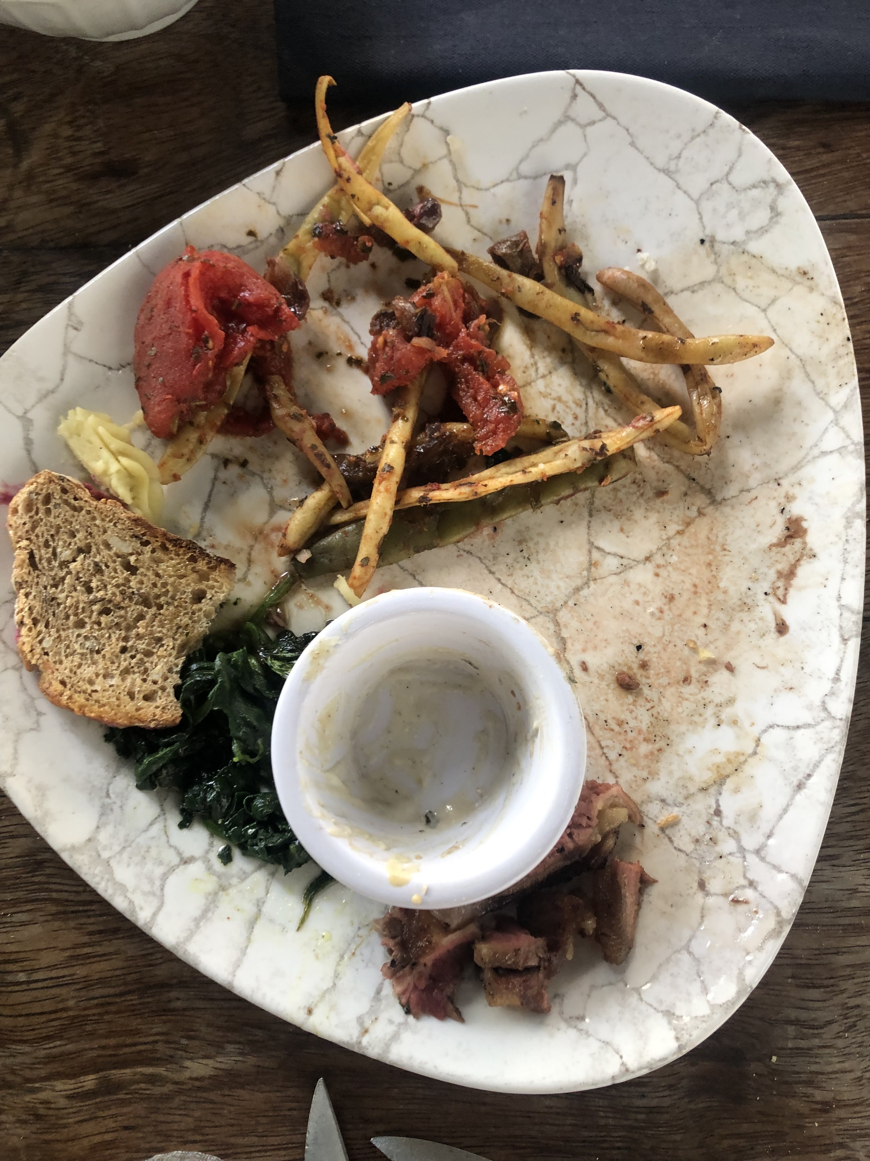 J'ai demandé la viande bien cuite , je la reçois saignante évidement. Je la renvoie. Je la reçoit cramée. Je sais que les chefs n'aimes pas la viande bien cuite mais se n'ai pas professionnel . Queue de courgette dans l'assiette avec les autres morceaux . Le dessert au chocolat, je n'ai pas pris de photos, mais comment peut on servir ça dans un restaurant. On aurais dit un bout de ganache mal réalisé qui se balade dans l'assiette . Désolée , peu être que d'autres aimes, mais j'ai veccu une mauvais experience .