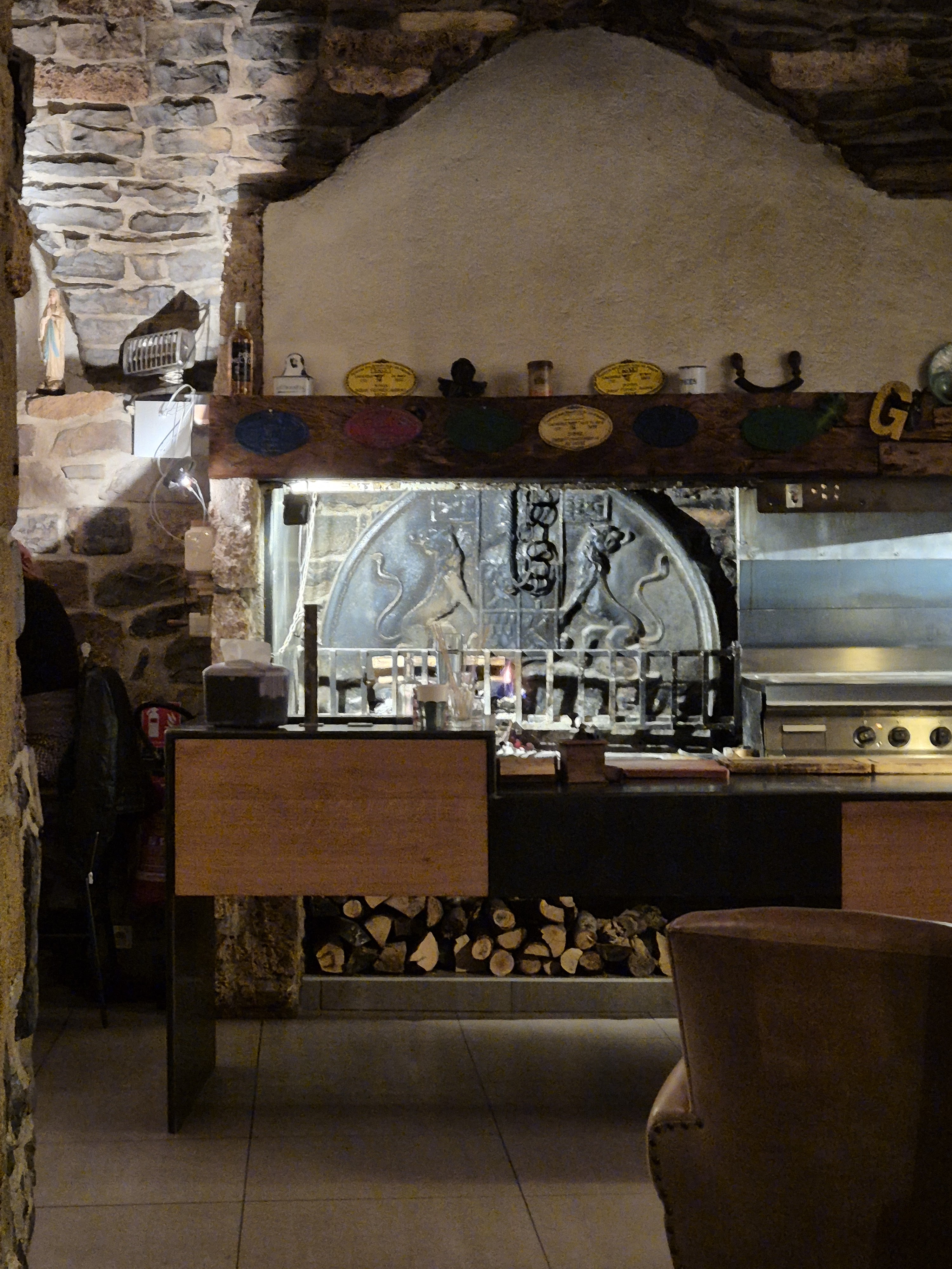 Belles salles voutées pittoresques, bonne cuisine raffinée, grillades en direct au feu de bois dans le restaurant trés chaleureuses, bonnes odeurs qui mettent en appetit, service assez rapide, menu un peu compliqué à lire avec QR code