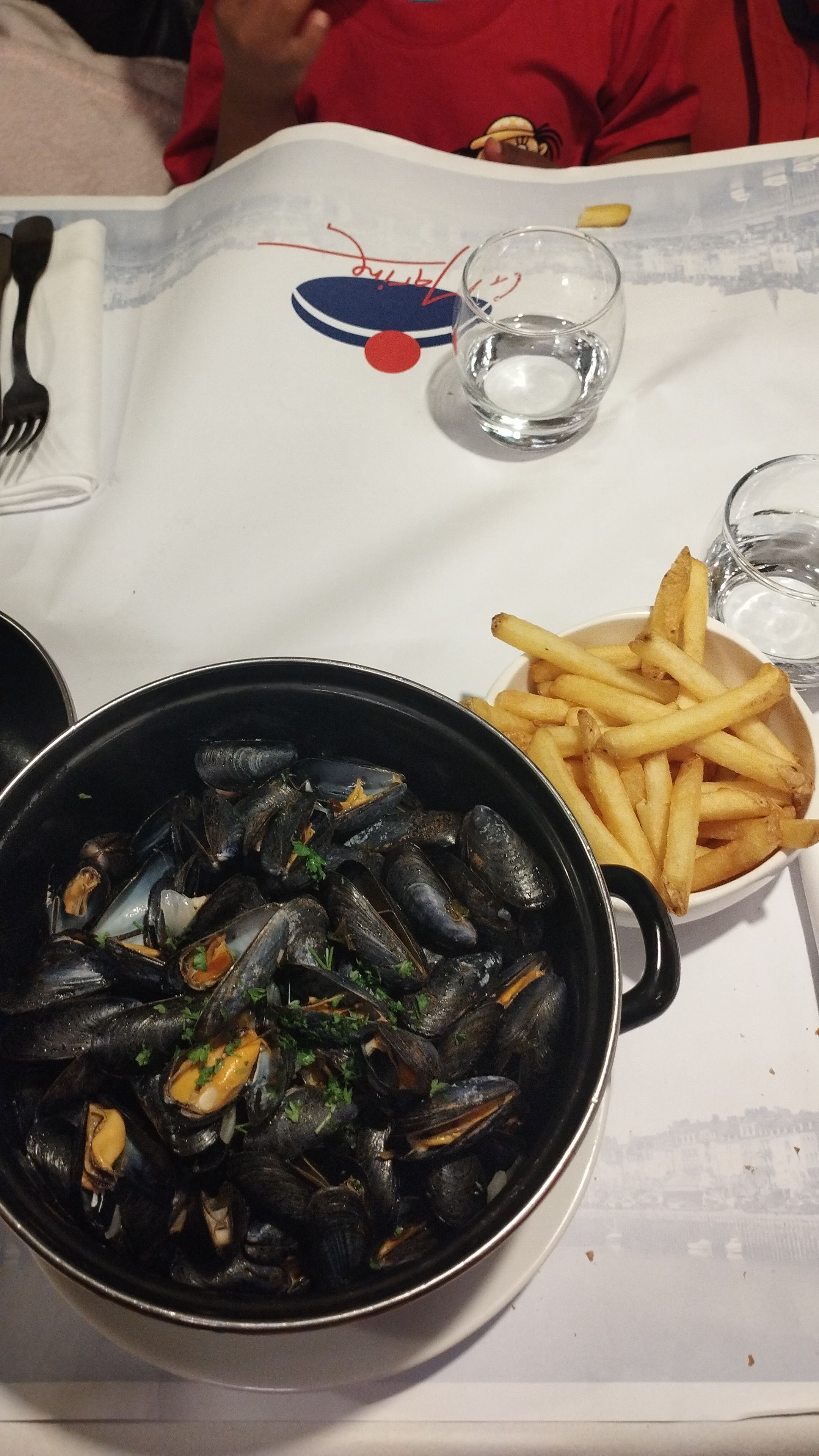 Moules marinières excellentes. Accueil chaleureux et bienveillant avec des enfants. Le reste du menu reste onéreux. Frites avec les moules en supplément payant, alors qu'elles ne sont pas terrible.