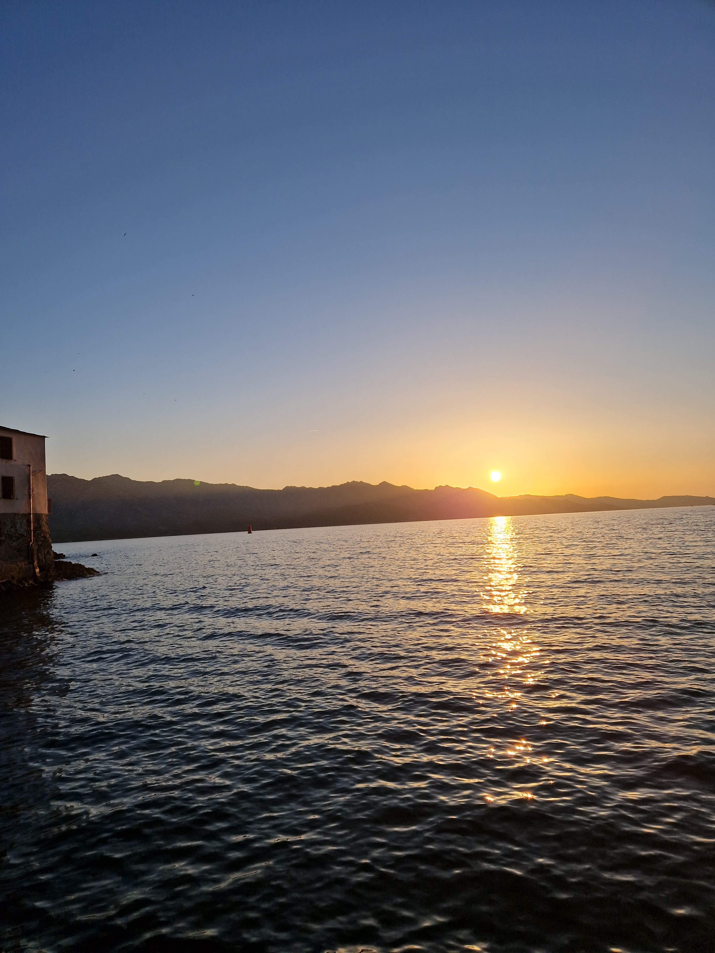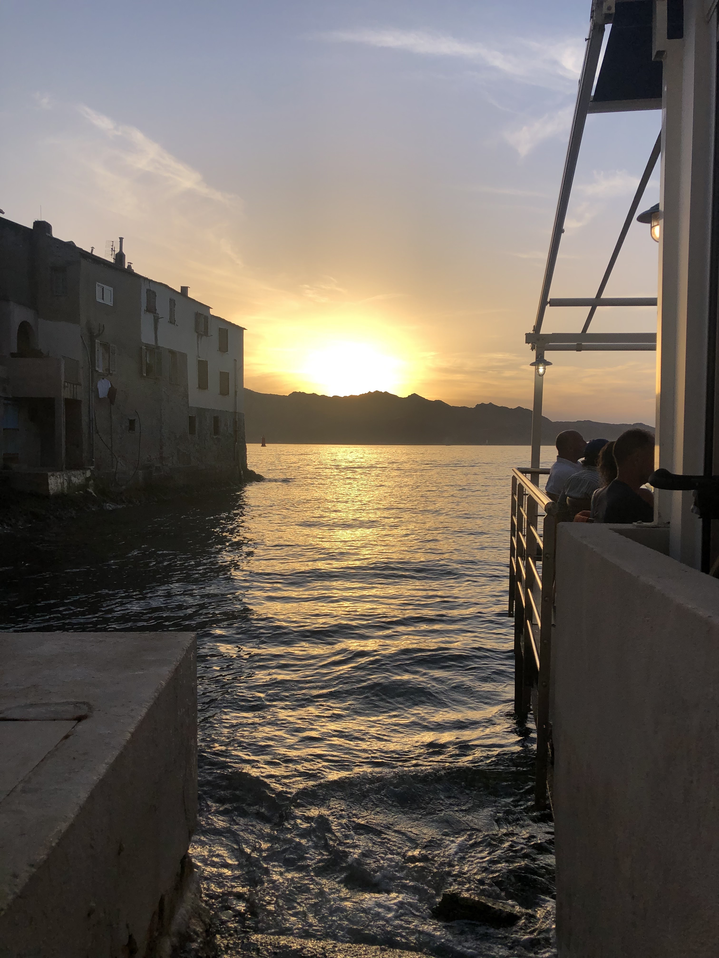 Très bon restaurant méditerranéen! €€€ La vue du couché de soleil de st florent à un prix. C'était magnifique et poisson délicieu.