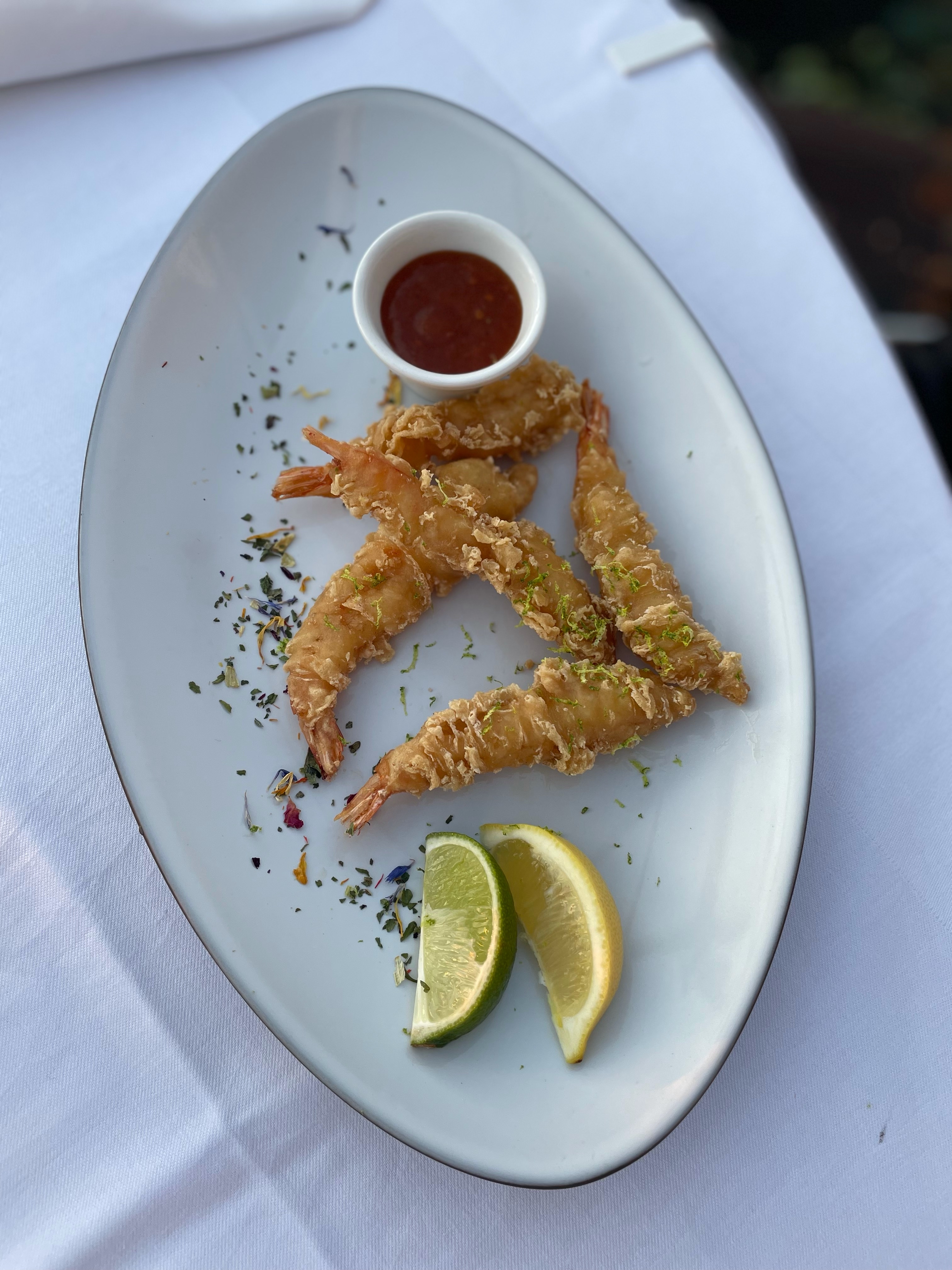 Un excellent dîner dans un cadre fabuleux. Des saveurs incroyables pour les légumes qui accompagnaient les Gambas géantes. Une tarte au citron légère et fondante, une tuerie. De très belles photos prises par la serveuse avec le coucher de soleil. Un moment de rêve.