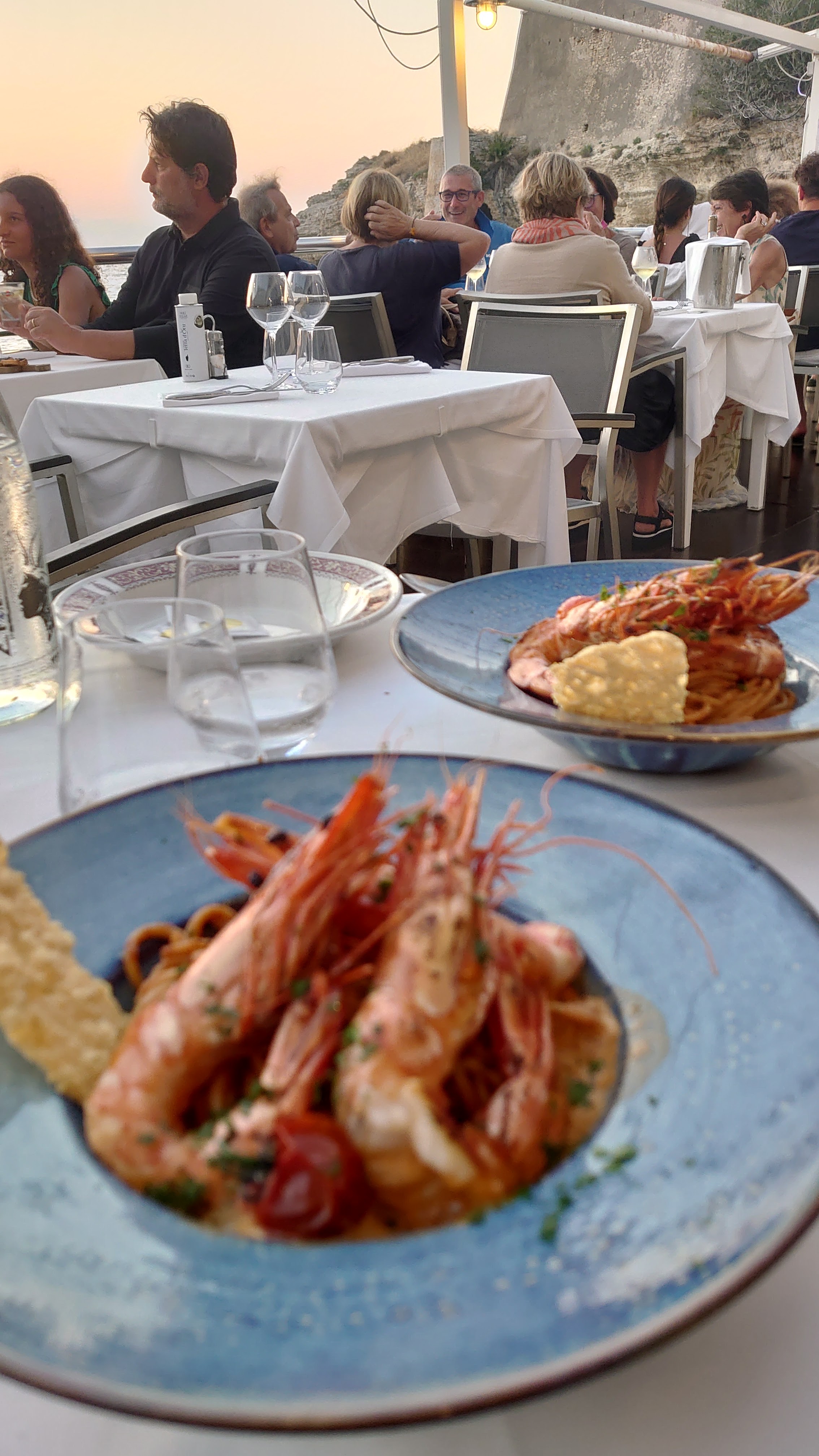 Très bonne table. Le service est très agréable et le lieu est magnifique (même si pour nous le soleil n'était pas là aujourd'hui). La langouste est un vrai régal, j'espère que cette photo vous donnera envie d'y aller !