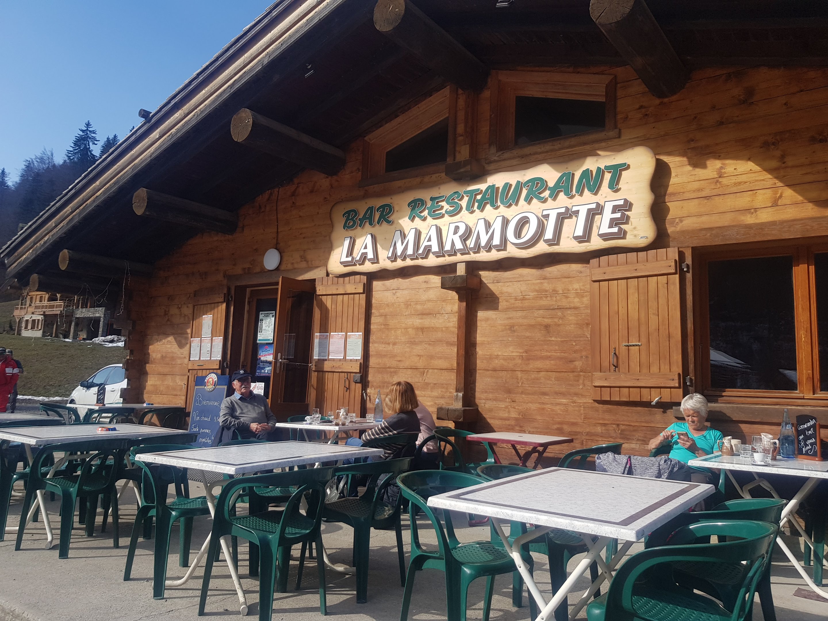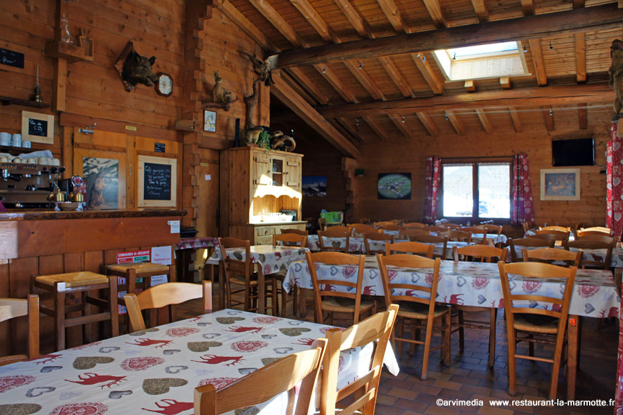 La marmotte et un restaurant familiale proposant un service au bar pour se réchauffer ainsi que des bon petit plats après une bonne séance de ski de fond, raquette. Il accepte les chiens😋 en plus des prix abordable