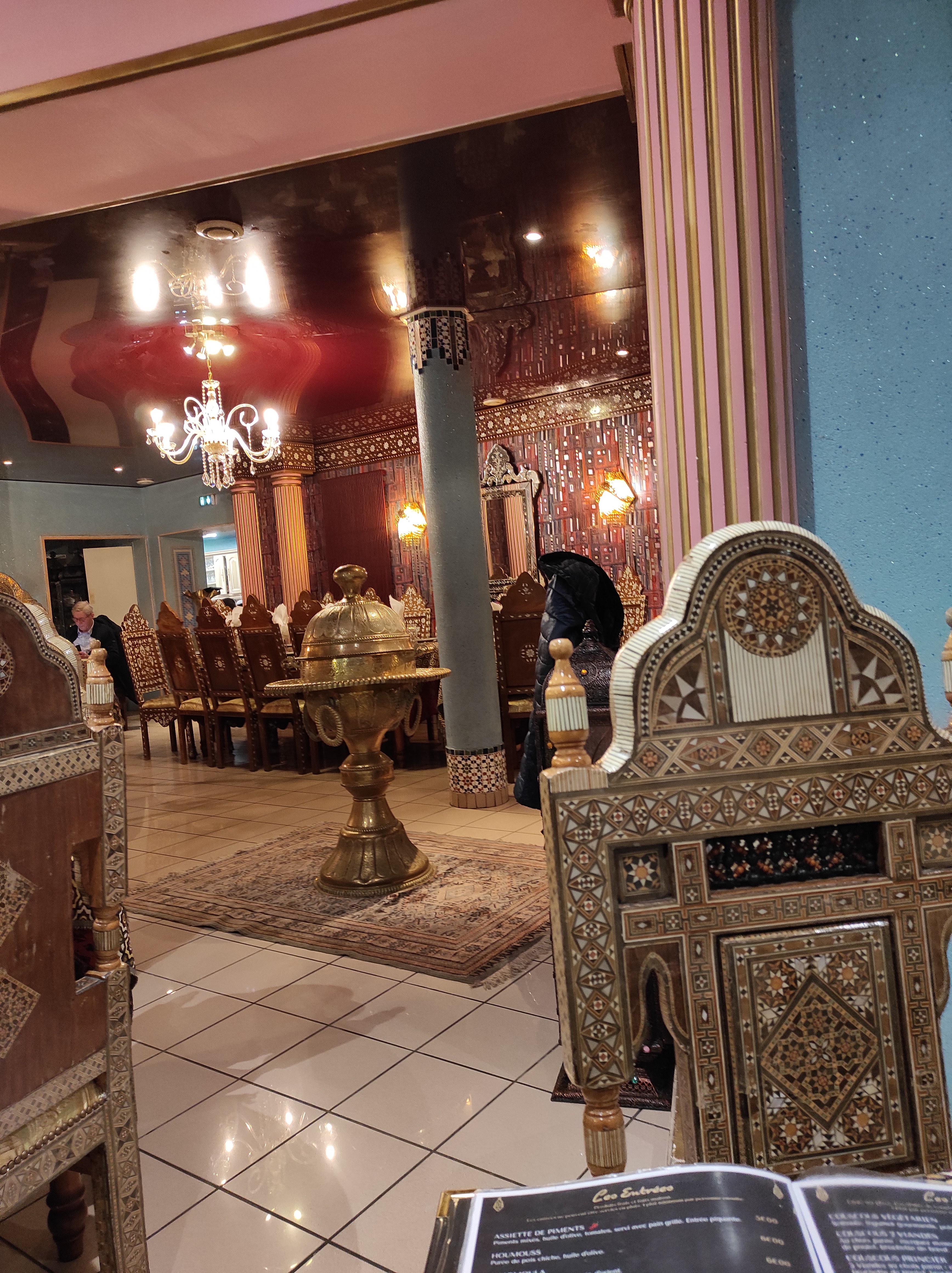 Le décor du restaurant nous transporte dans les pays du maghreb avec le dépaysement assuré Excellent couscous, le patron et les serveurs très serviables et sympathiques. Après le repas nous avons profité de la belle salle du restaurant pour discuter un bon moment.