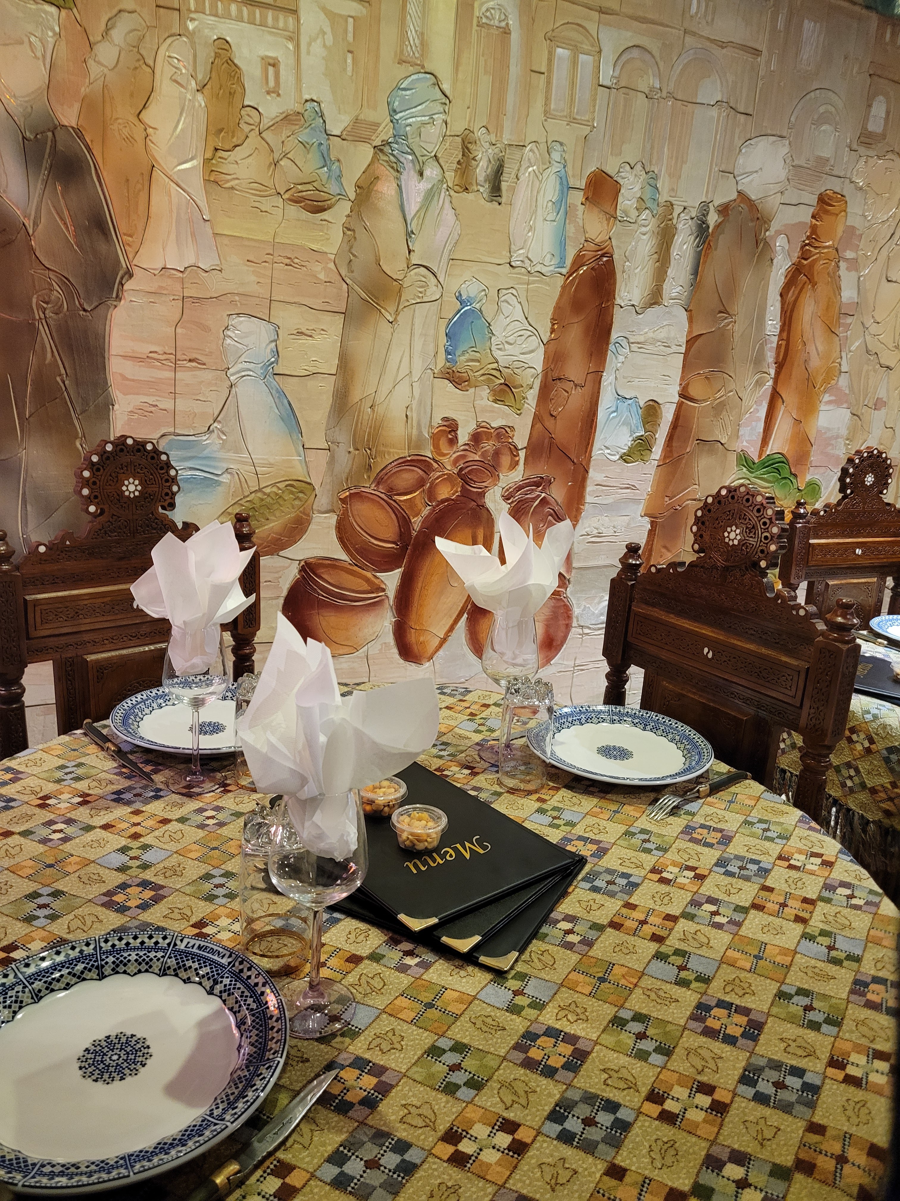 Décor mille et une nuits.... on est dépaysé. Bel accueil, service chaleureux. Le patron et le serveur ont le souci de satisfaire les clients! Nous avons mangé un couscous: délicieux et copieux. On s'est régalé ! Plaisir des yeux, plaisir du palais tout ça dans une ambiance chaleureuse. Que demander de plus ? On reviendra !
