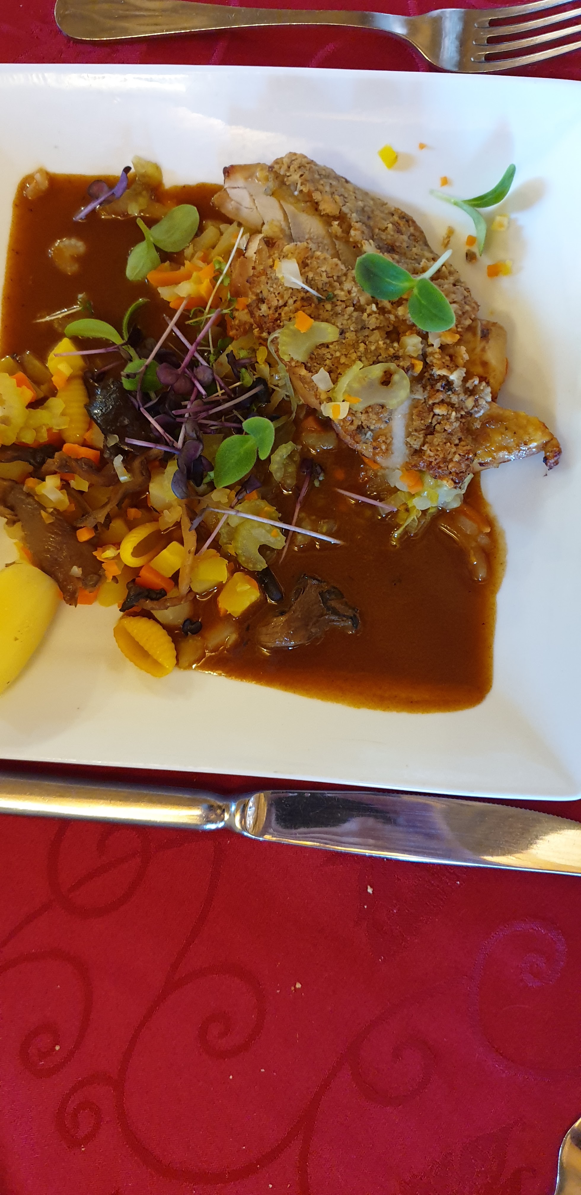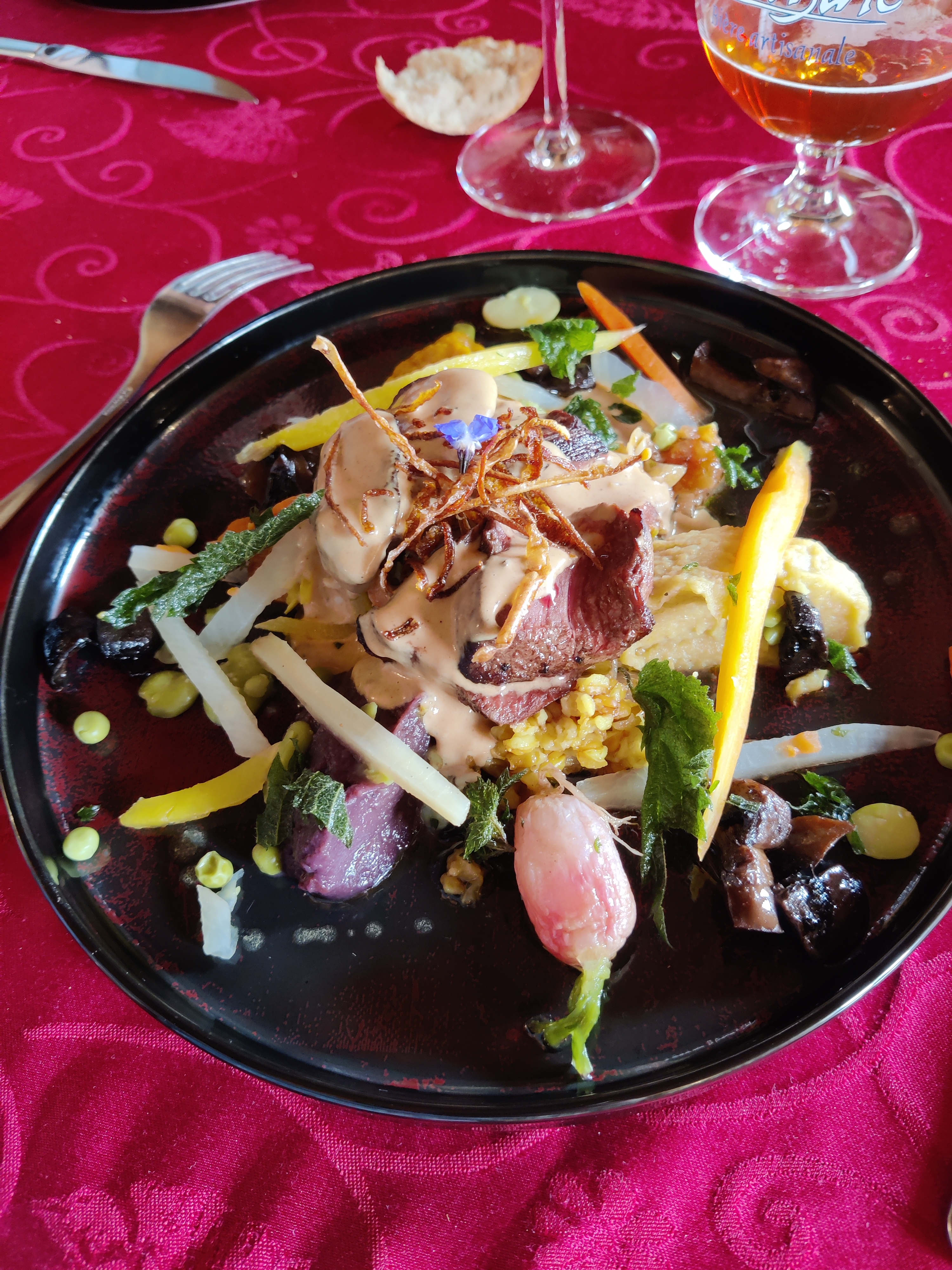 Très très bon repas avec des ingrédients locaux Les assiettes sont très bien présentées Nous avons super bien mangé Je recommande