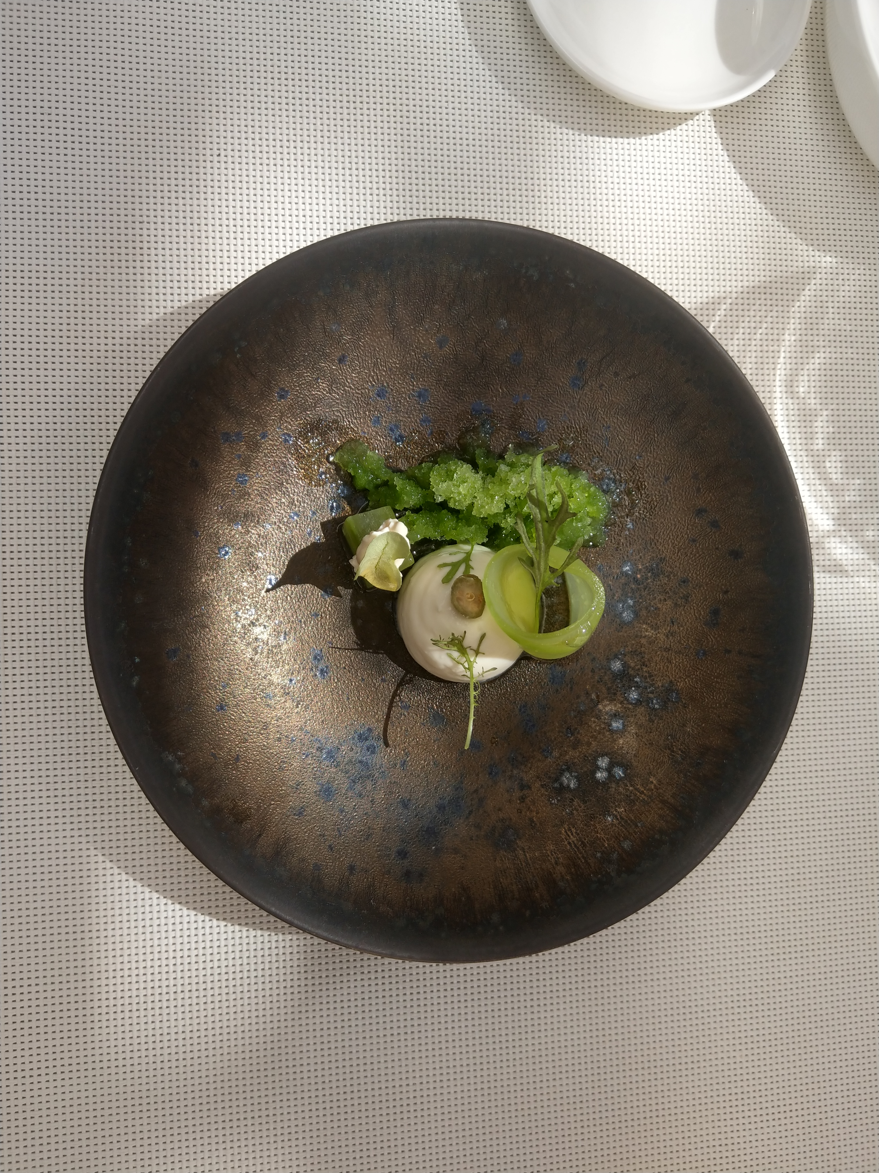 Nous y avons dîner pour la première fois, et le sentiment est très mitigé. Le service est impeccable et très professionnel; tout y est fait pour vous mettre à l'aise. Le repas était surprenant, beaucoup d'audace...ce qui est évidemment attendu pour un restaurant étoilé. Cependant, trop d'audace en devient prétentieux. Le dessert a été une énorme déception, car certes surprenant mais d'un déséquilibre décevant. Tout le repas a été confectionné avec des produits simples mais élaborés de façon surprenante avec des touches inattendues...mais le dessert n'était pas dans la continuité. Le sorbet garrigue était l'élément à sublimer avec quelque chose de rassurant et sucré. Cette soupe de concombre à tout gâché...trop prétentieux. Pour le reste rien à dire.