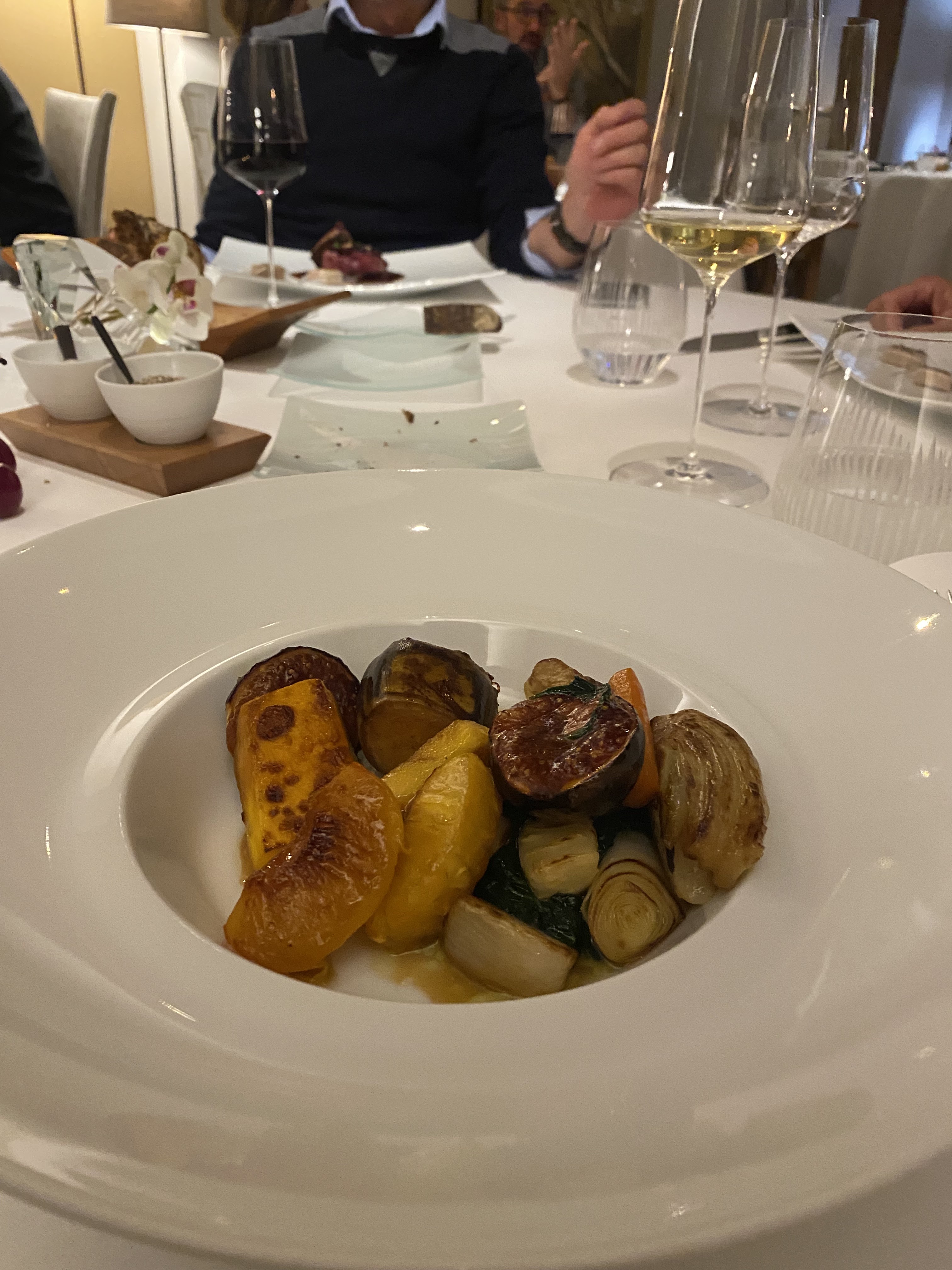 *Végétarien* (ni viande ni poisson) un bon repas, mais une salade en entrée, et des fruits et légumes rôties en plat, c’est un peu juste pour 123 euros. Par contre, les amuses bouches, et le dessert une très belle découverte, avec un cadre très chaleureux, et un bel accueil. Dommage d’avoir un repas aussi basique pour un deux étoiles. Je reviendrais avec joie pour passer un bon moment. Le service était impeccable.