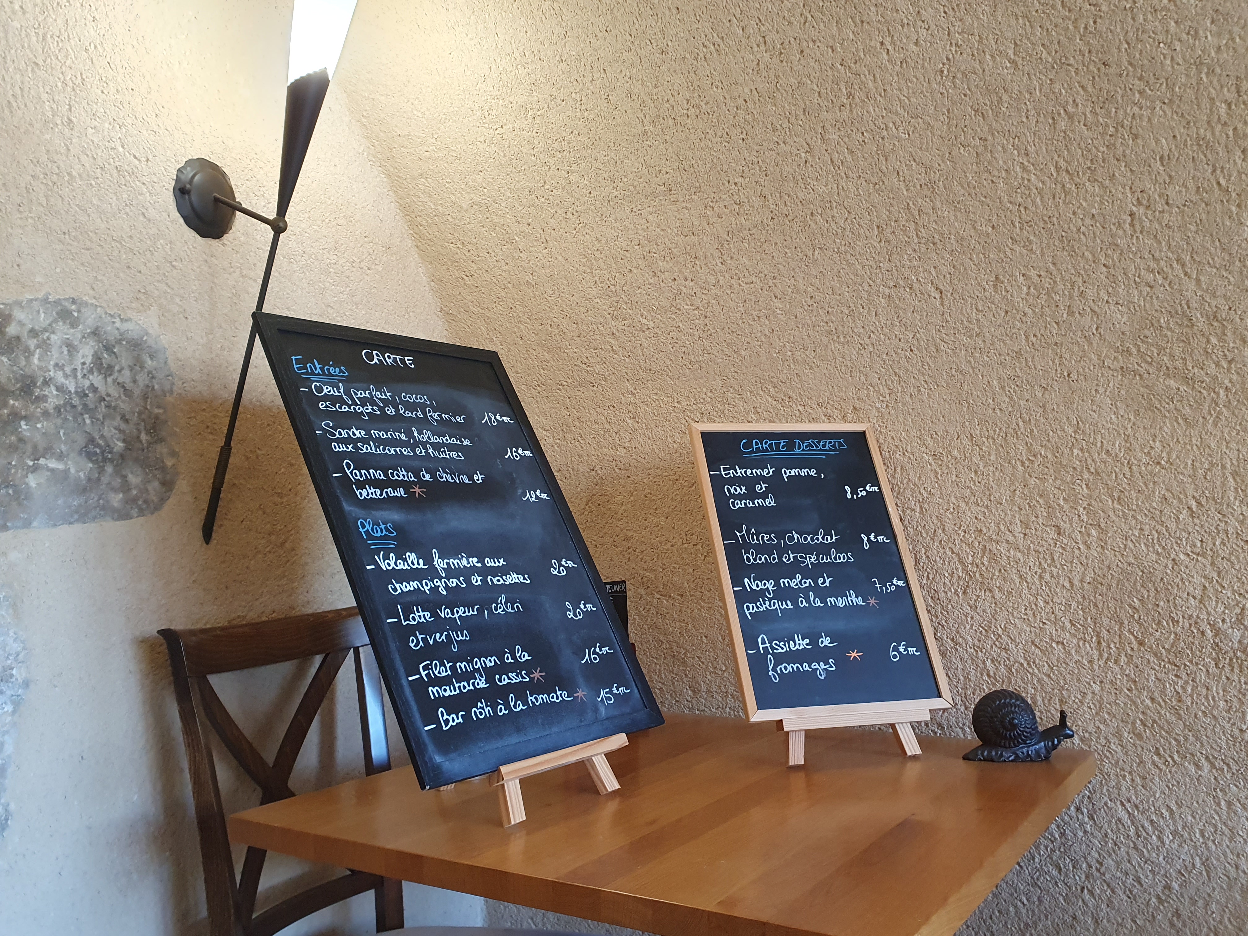 La façade est un peu passée, le cadre intérieur est sympa, la cuisine est raffinée avec des produits de très bonne qualité. L’accueil est très agréable, merci à vous et bonne continuation. N’hésitez pas à vous arrêter.