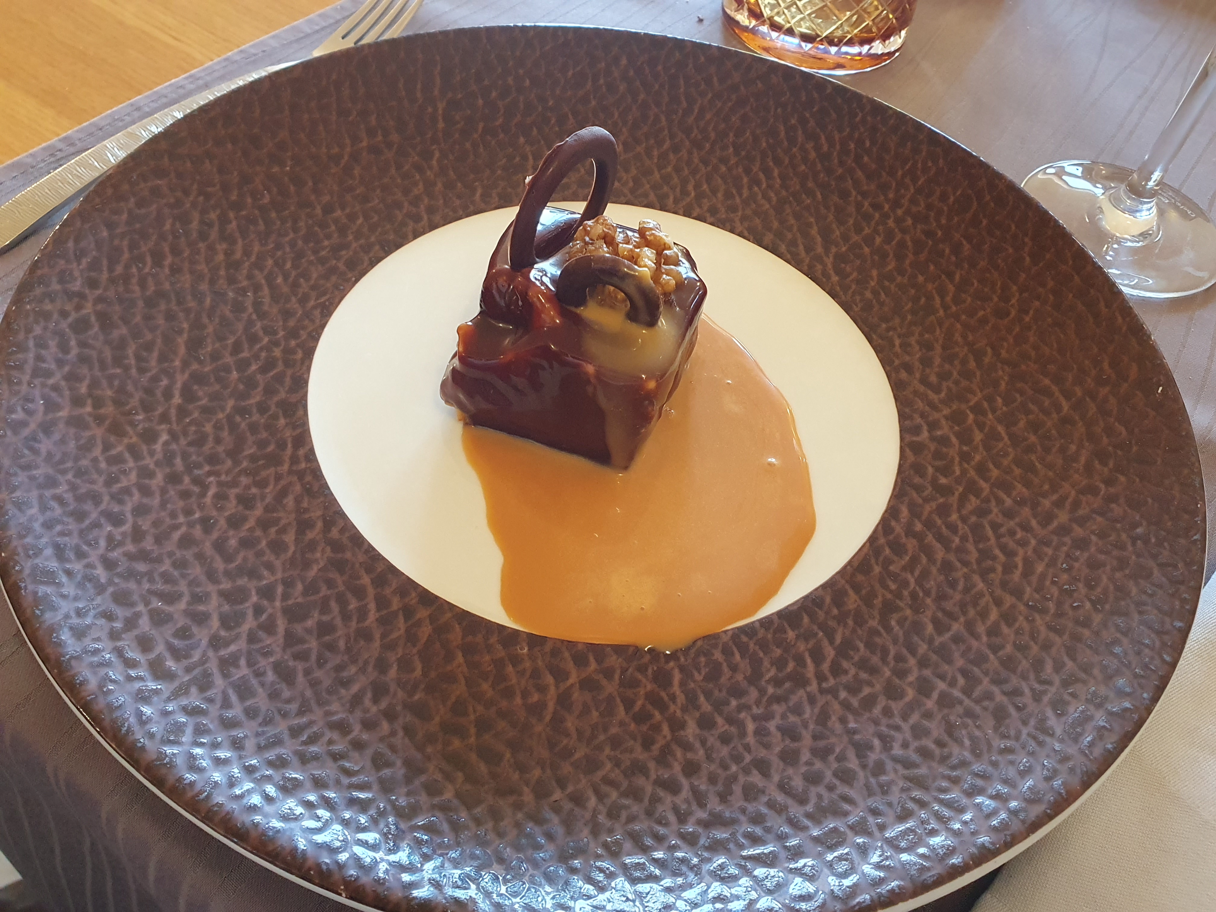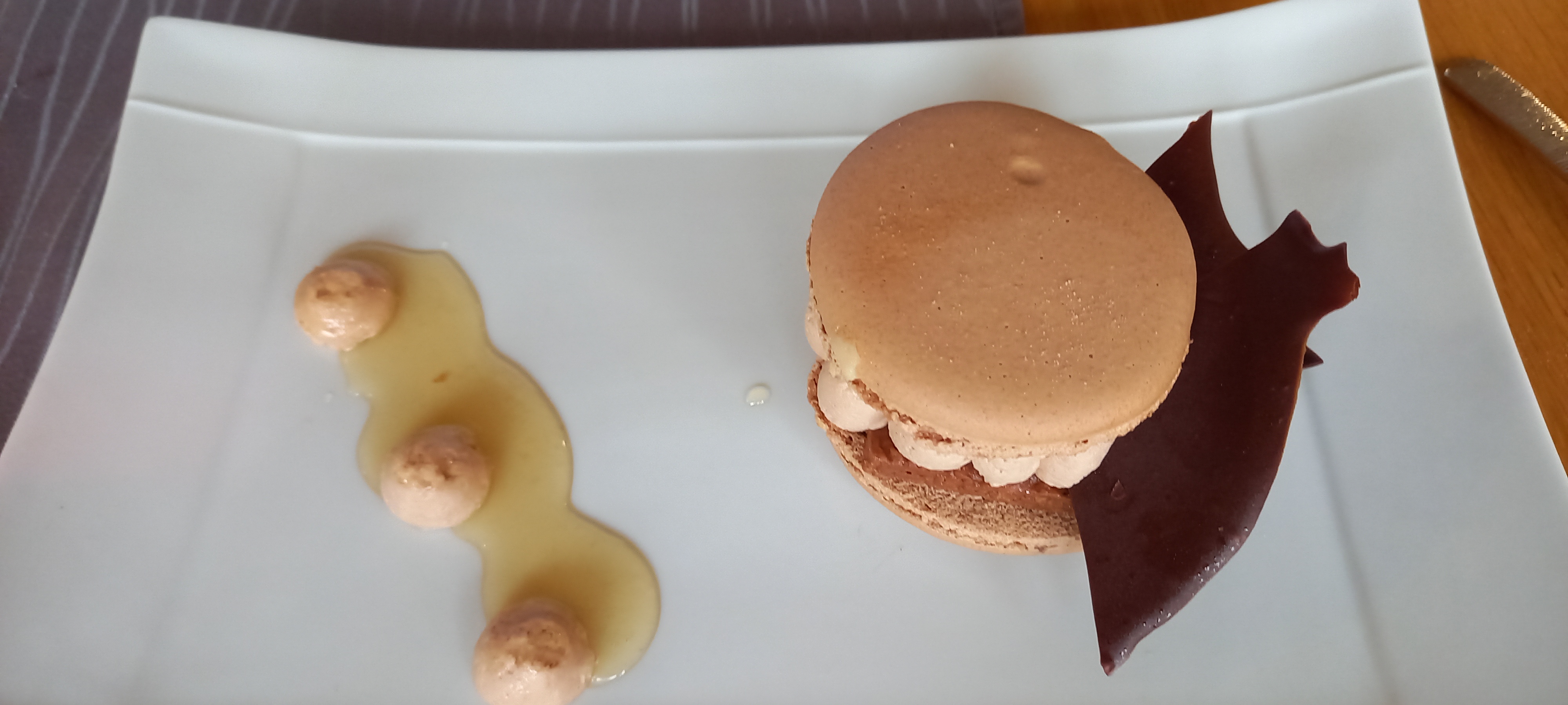 Nous avons pris le menu avec vin et café. La présentation de chaque assiette etait raffinee.. Les plats salés etaient tres bons : cabillaud et risotto au chorizo. Les desserts; chocolat cacahouette et carambar etait bienn. Le millefeuille n a pas soulevé d enthousiasme..: Le croustillant un peu trop dur et la crème un peu lourde.. Le vin quand a lui a été apprécié. Joli cadre, et service agreable..