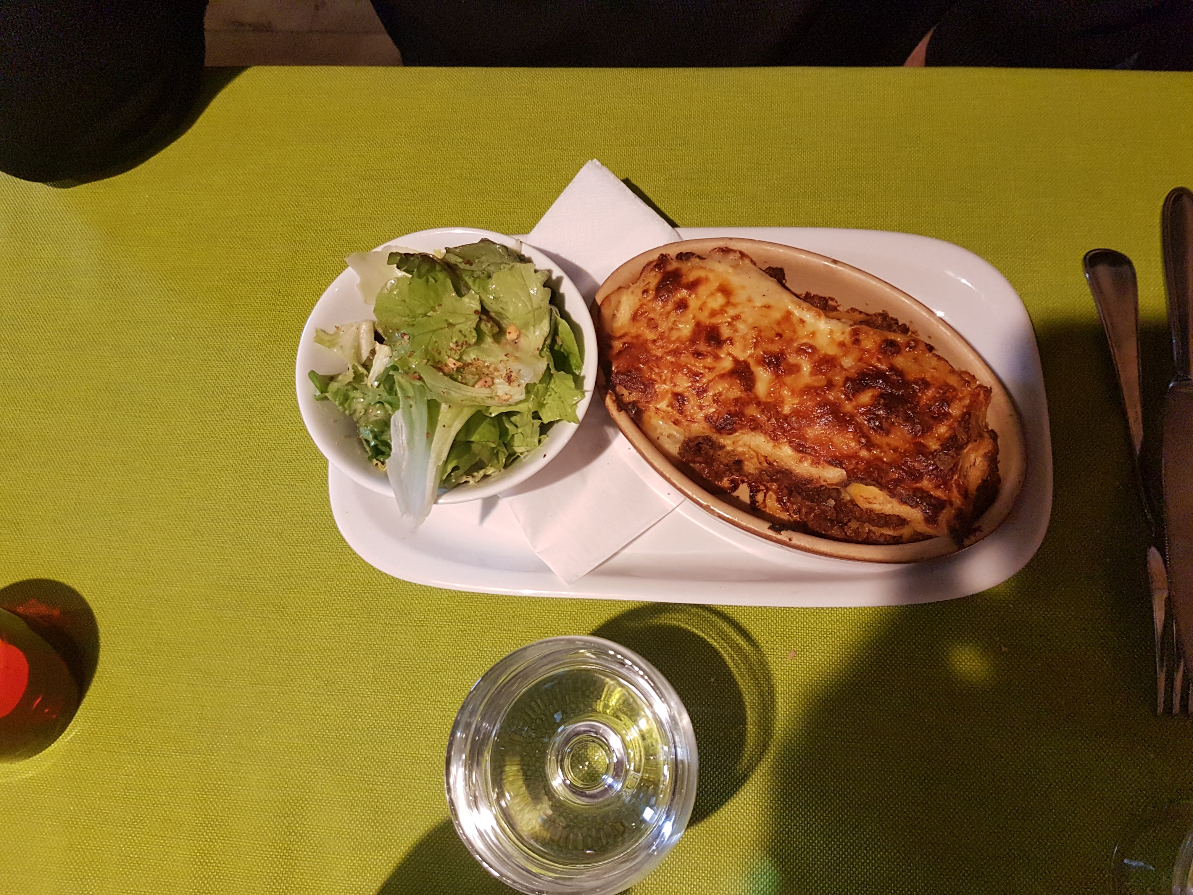 Lasagnes (épinards ou bolognaises) très bonnes. Soupe pas mauvaises mais sans plus. Desserts très vin Accueil très sympathique. Prix raisonnables (pour Chamonix) : 19€ entrée + plats + desserts